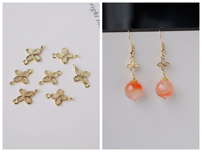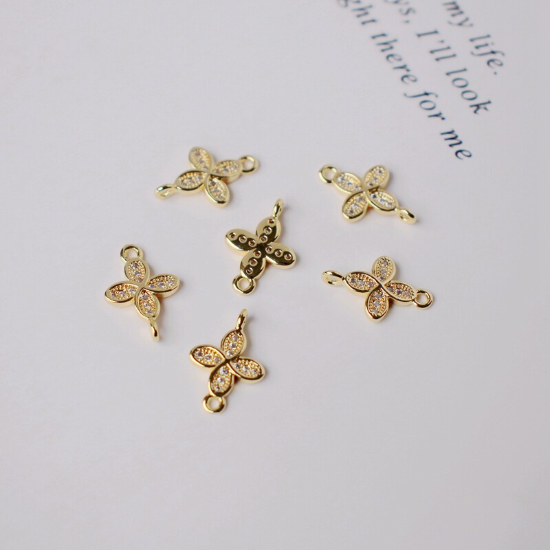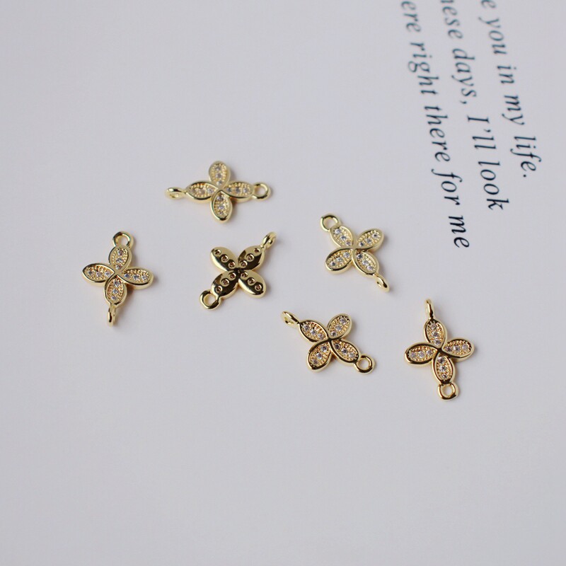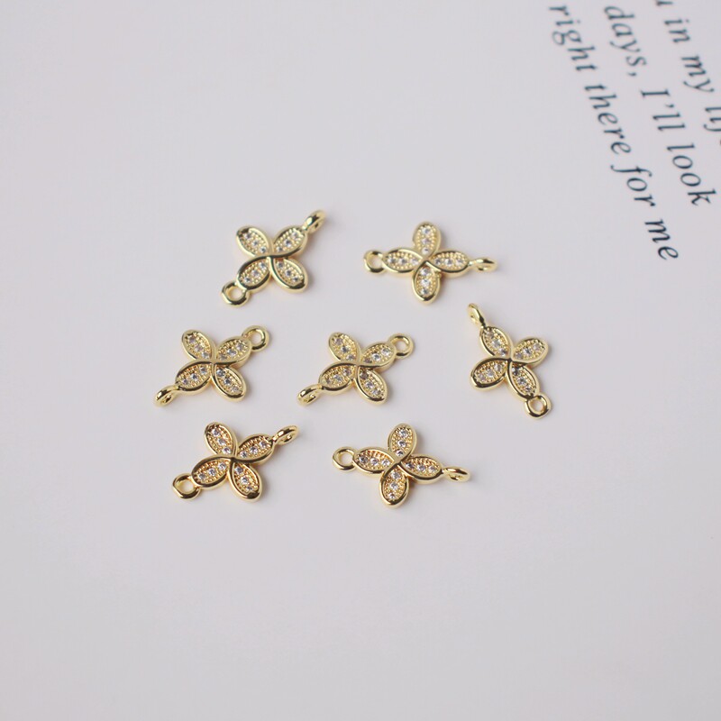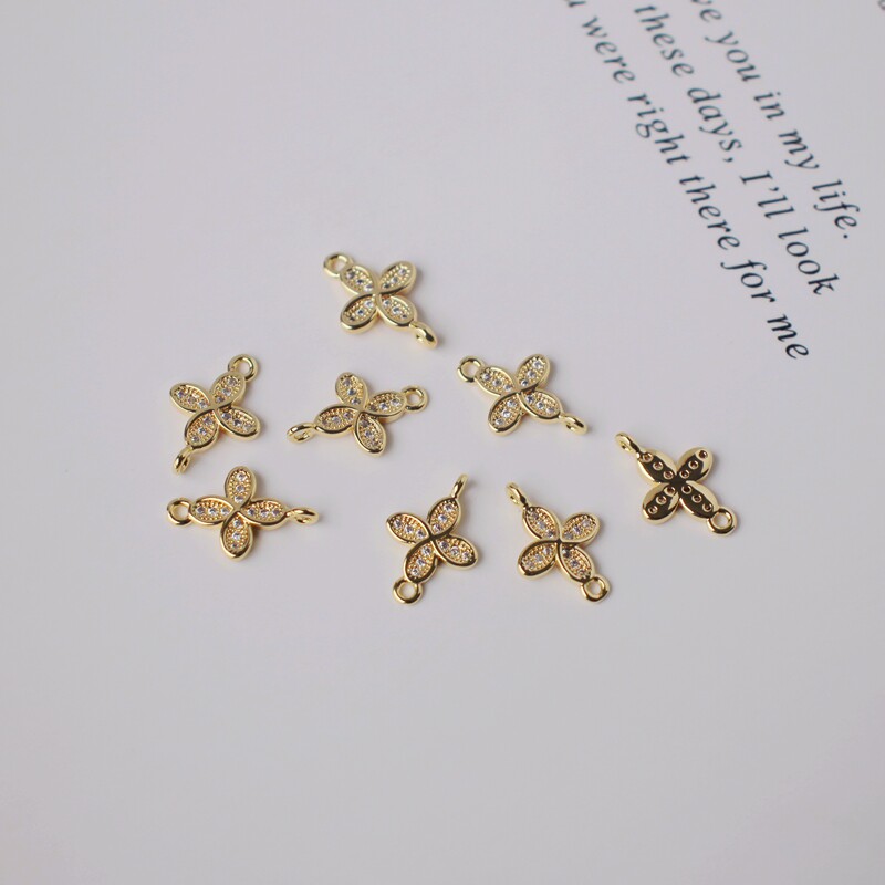 Инкрустация камня с цирконом, аксессуары, серьги, браслет, 14 карат, золотой цвет, четырехлистный клевер, DIY