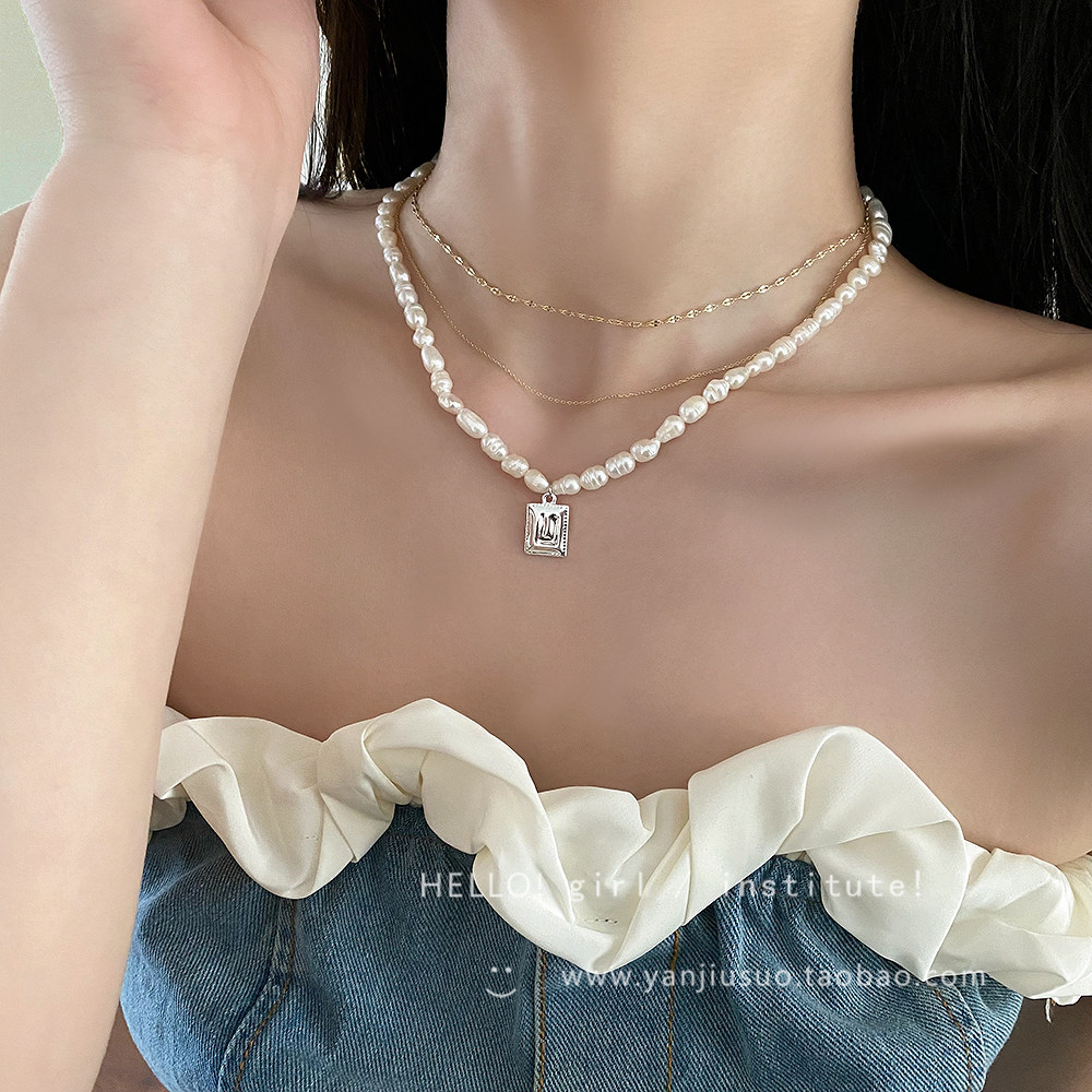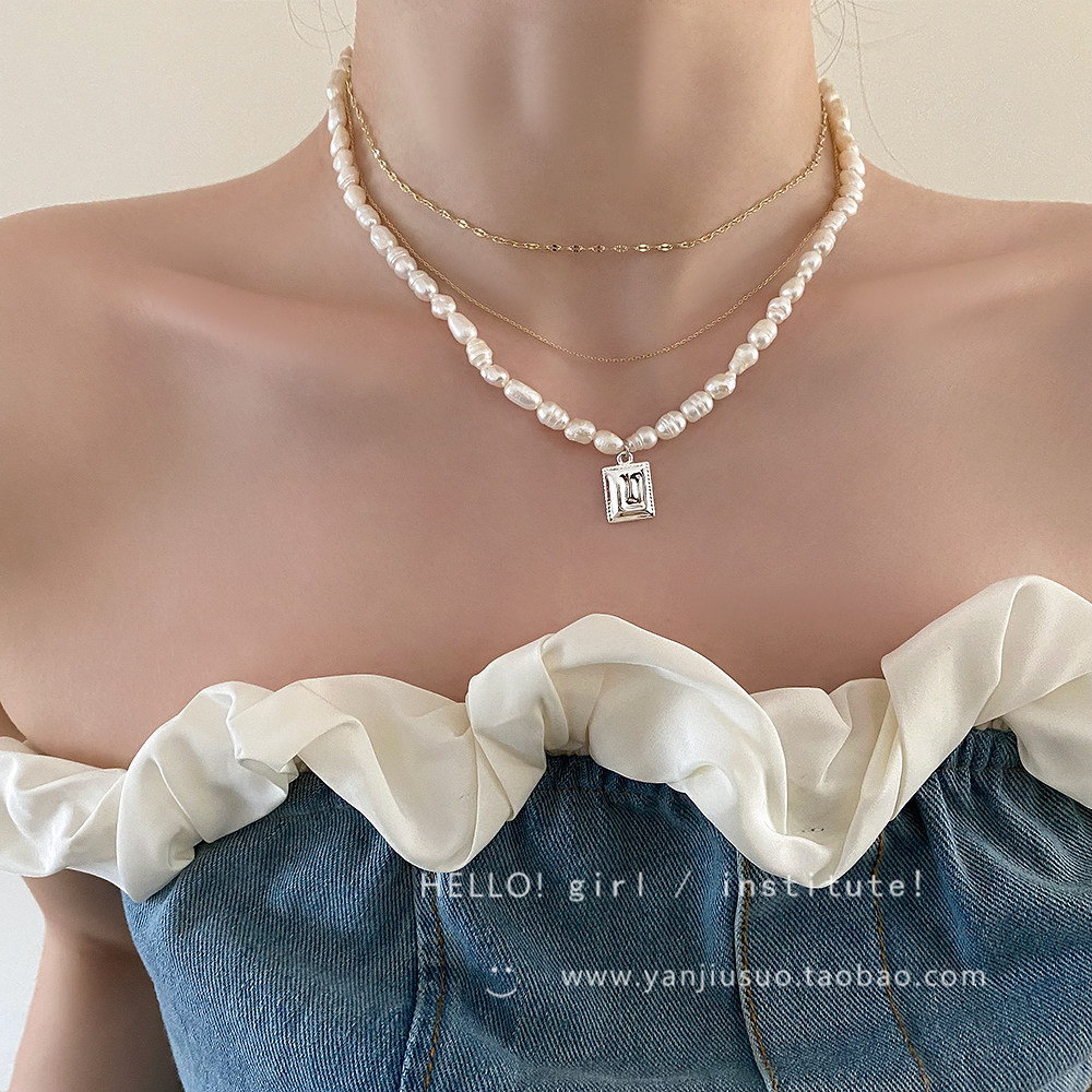 Ретро небольшое ожерелье из жемчуга, дизайнерская цепочка до ключиц, французский стиль, легкий роскошный стиль, тренд сезона, яркий броский стиль, изысканный стиль