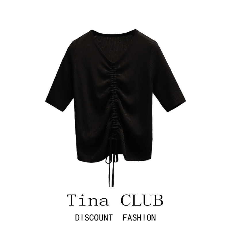 Tina Club большой размер женская одежда 2022 Летняя новая толстая девчонка ниша ниша шнурки шелк вязаный топ