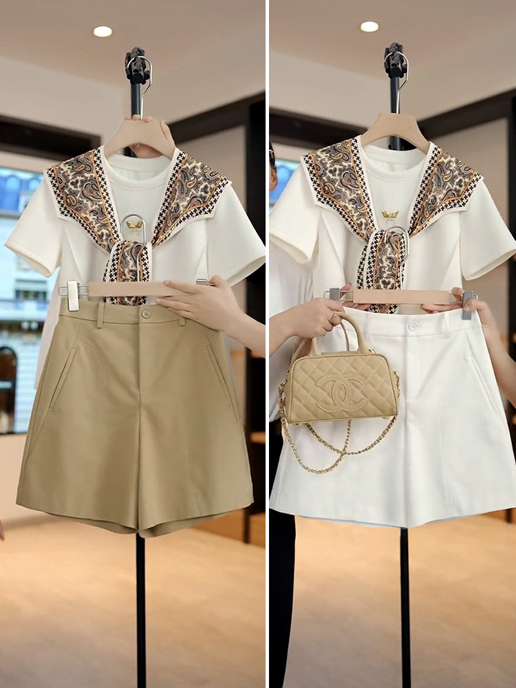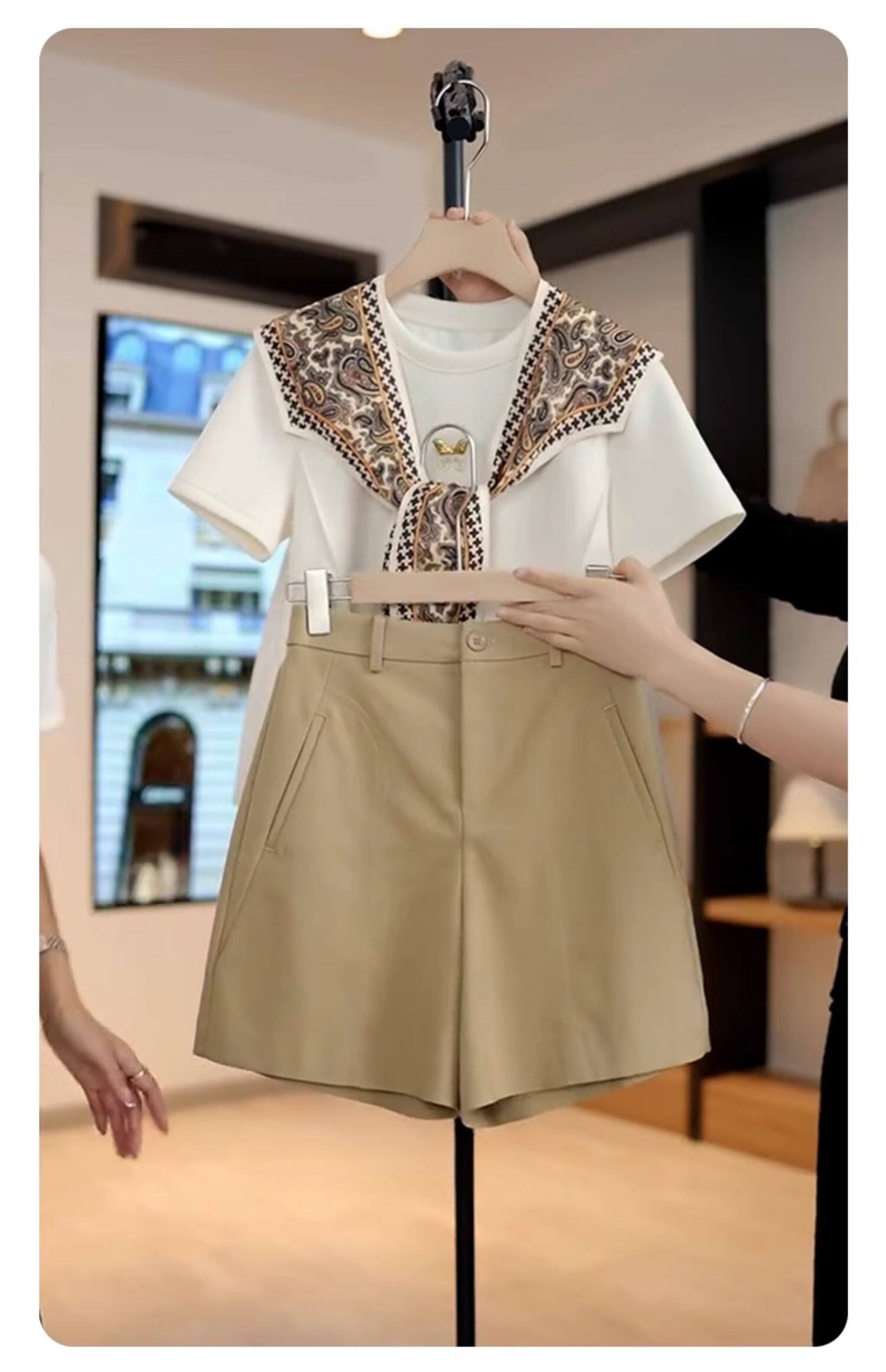 Костюм, шорты, летние тонкие штаны для отдыха, высокая талия, свободный крой, А-силуэт, подходит для подростков