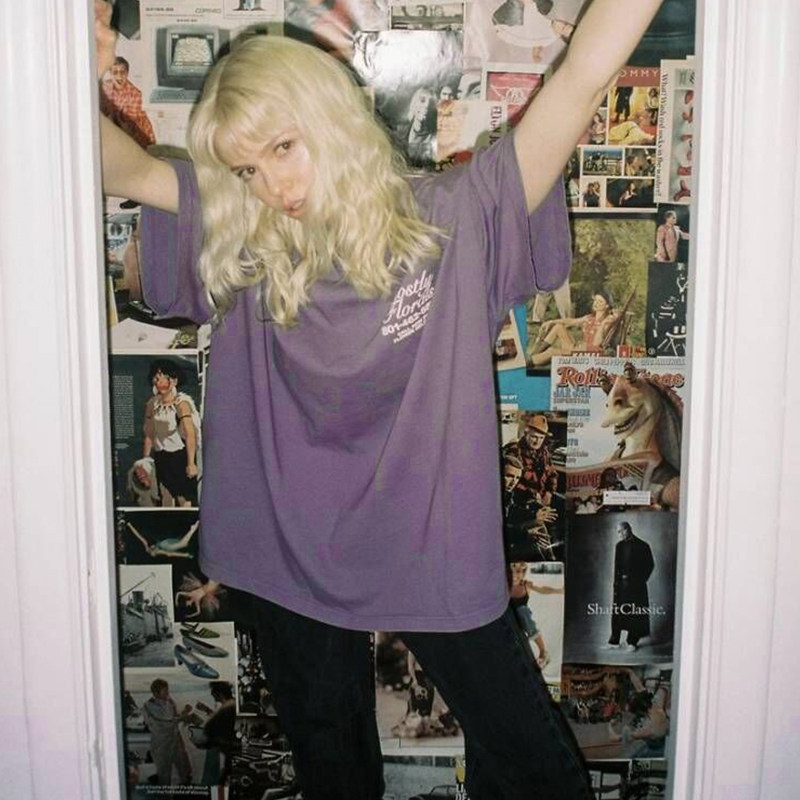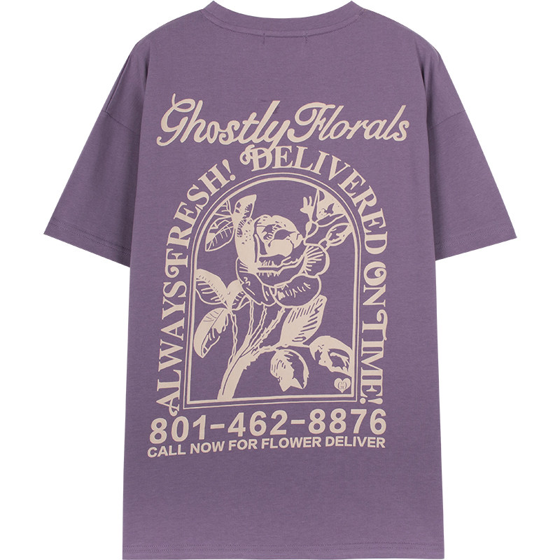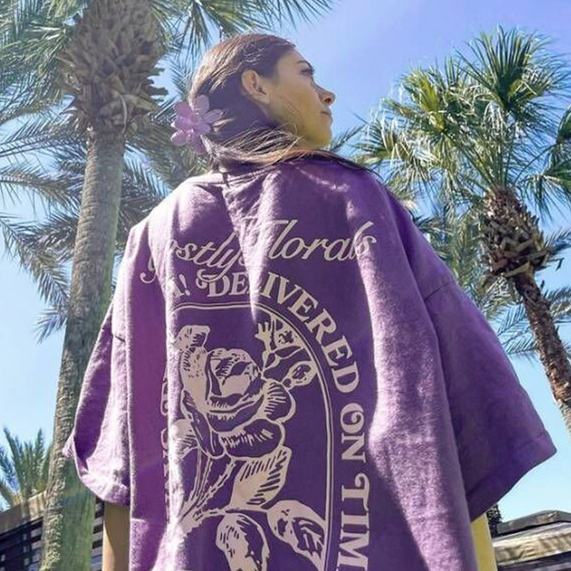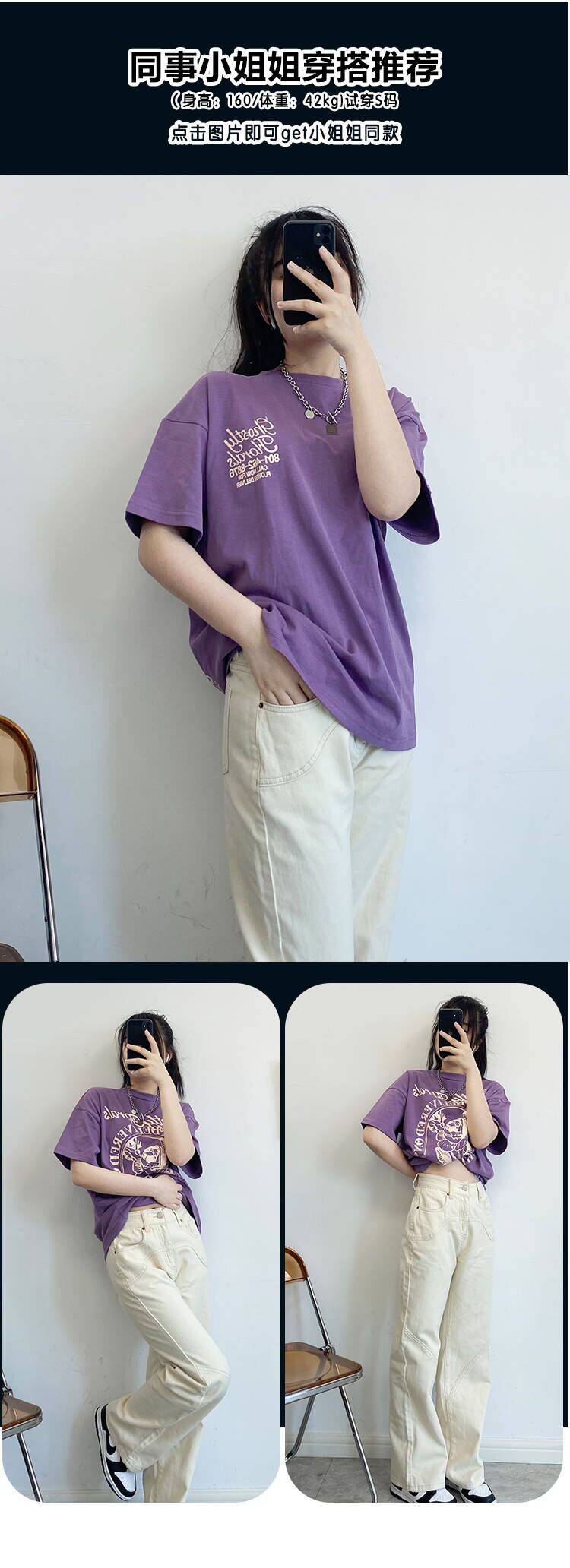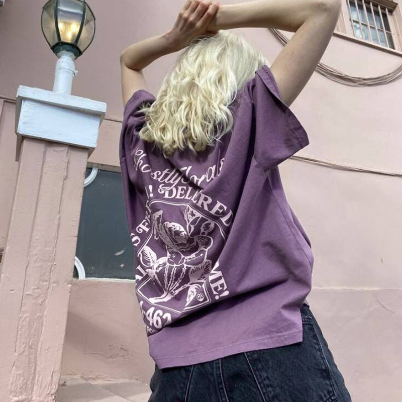 Tide, ретро сиреневая летняя футболка с коротким рукавом для отдыха, в американском стиле, короткий рукав