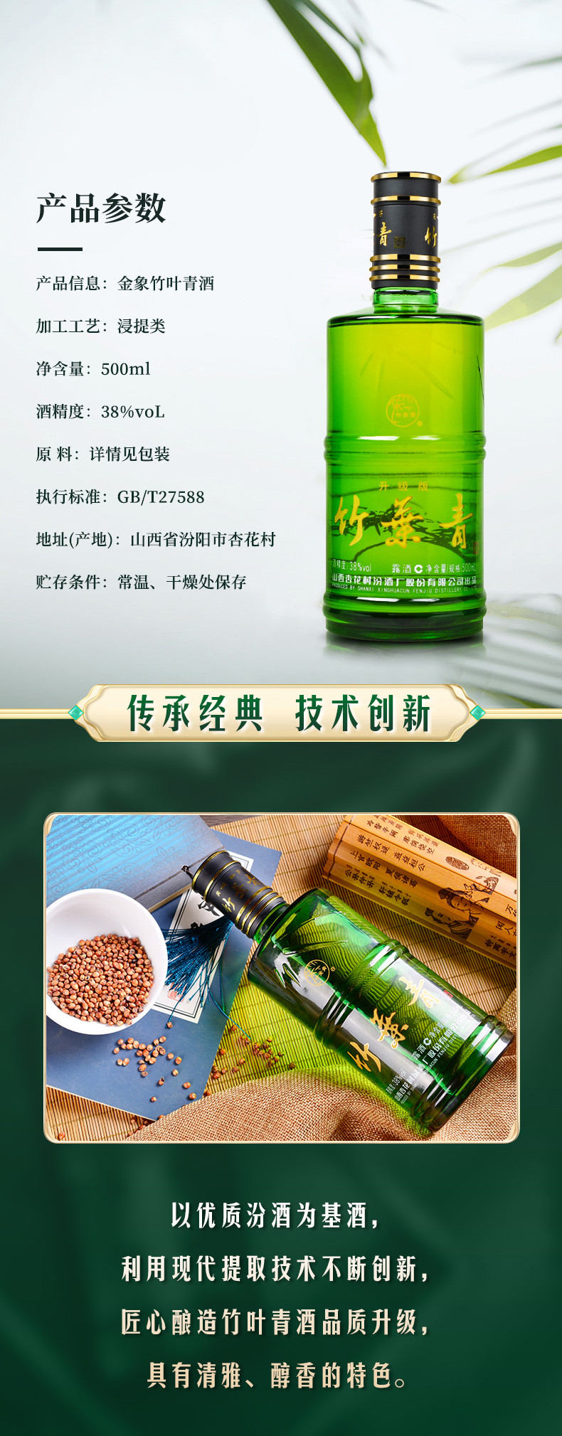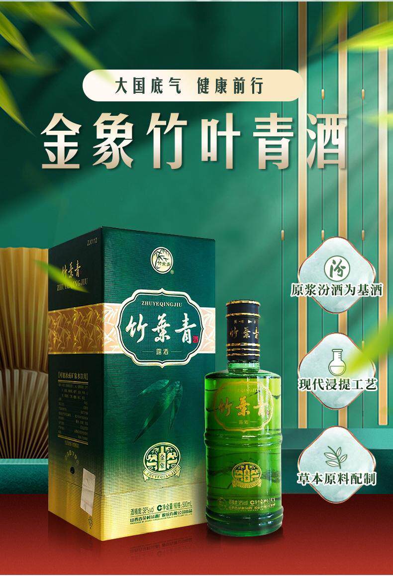 Бамбуковое листье зеленое вино Шаньси Синхуа деревня Фендзиу Золотой слон Бамбук 38 градусов 500 мл*3 бутылочные коробки Установленная роса Свежий аромат