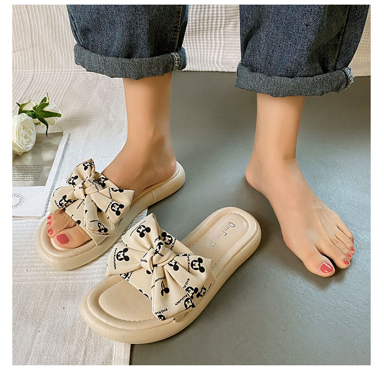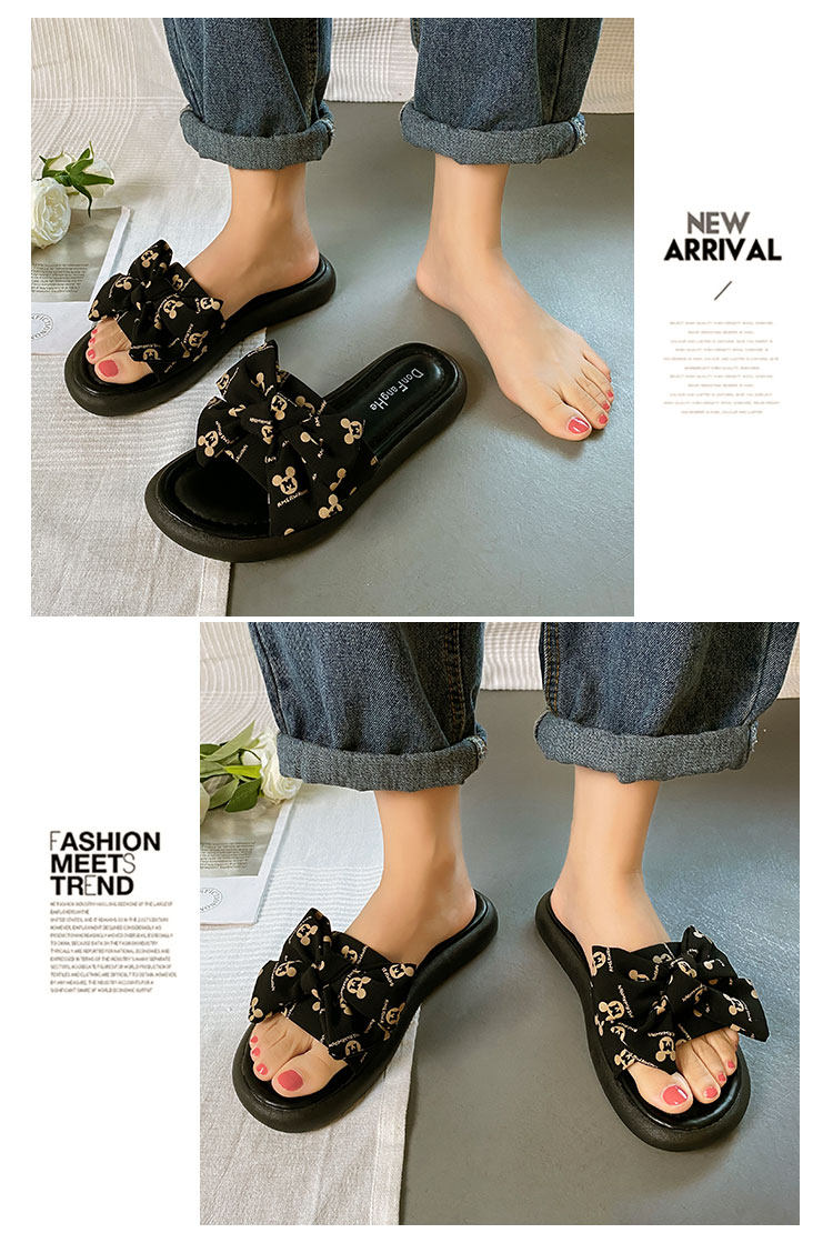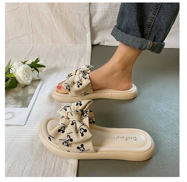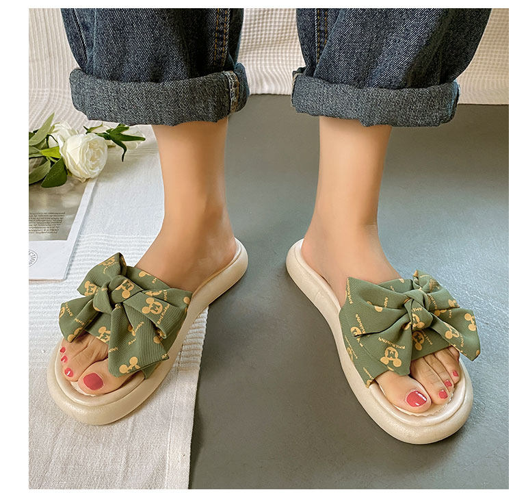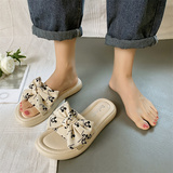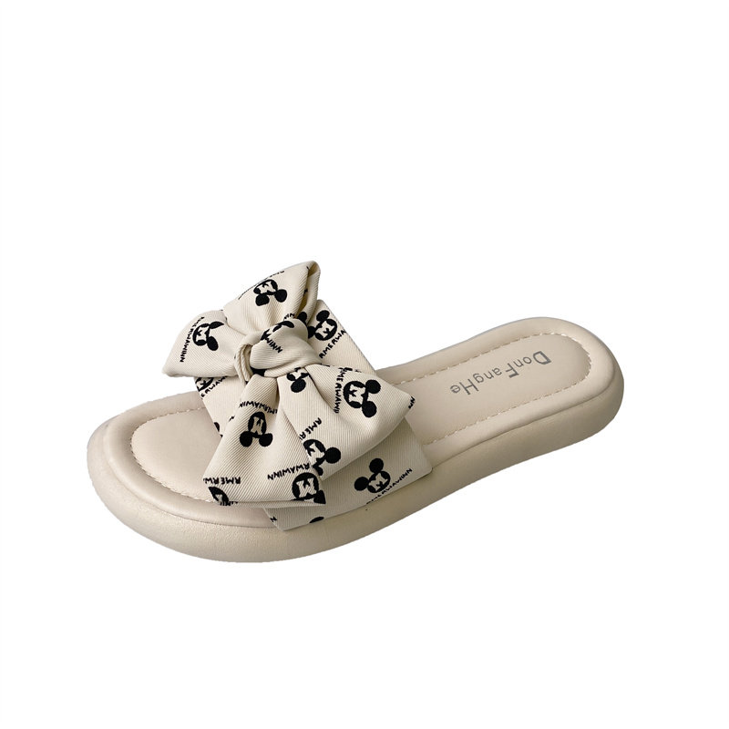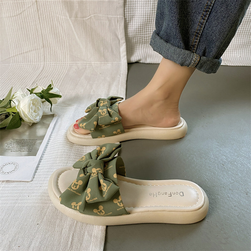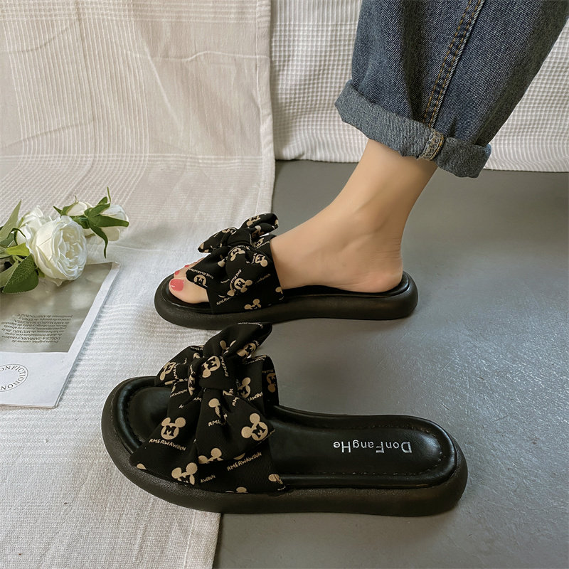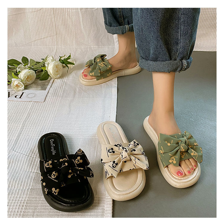 Тапочки, весенняя обувь, модные универсальные слайдеры на платформе с бантиком