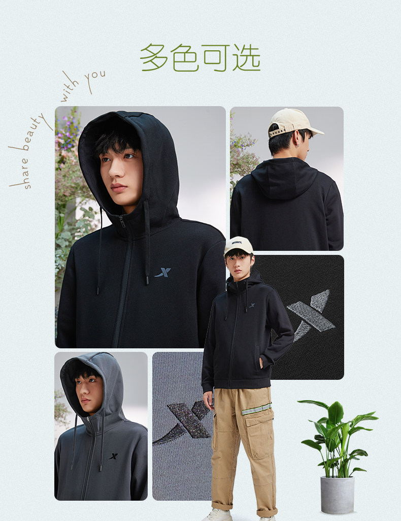 Xtep, мужская весенняя куртка, спортивный трикотажный свитер с капюшоном, лонгслив для отдыха, толстовка, оверсайз