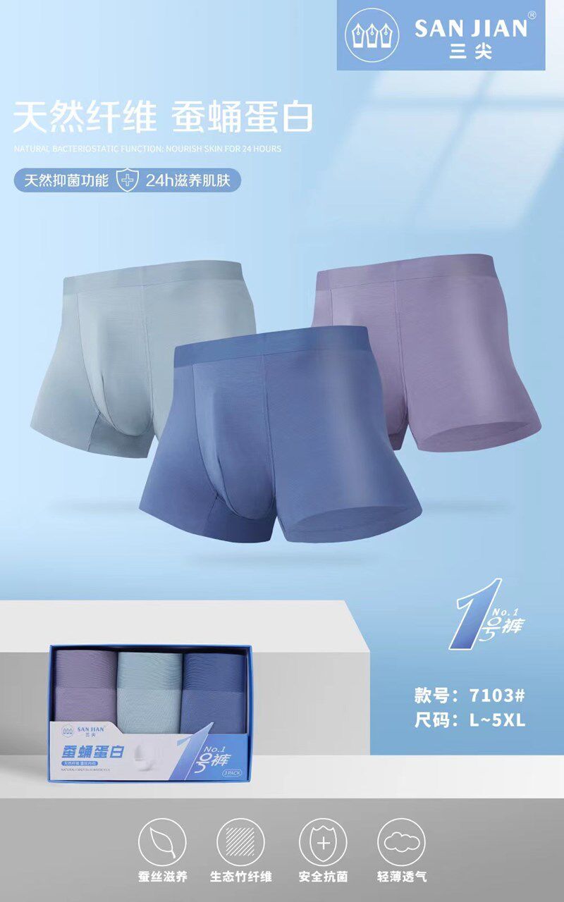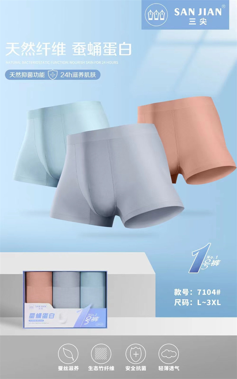 3 Трехточечное антибактериальное нижнее белье для молодых мужчин Плоские рога без трассировки шелковичного белка куколки мужские орхидеи Модальные большой размер 7098