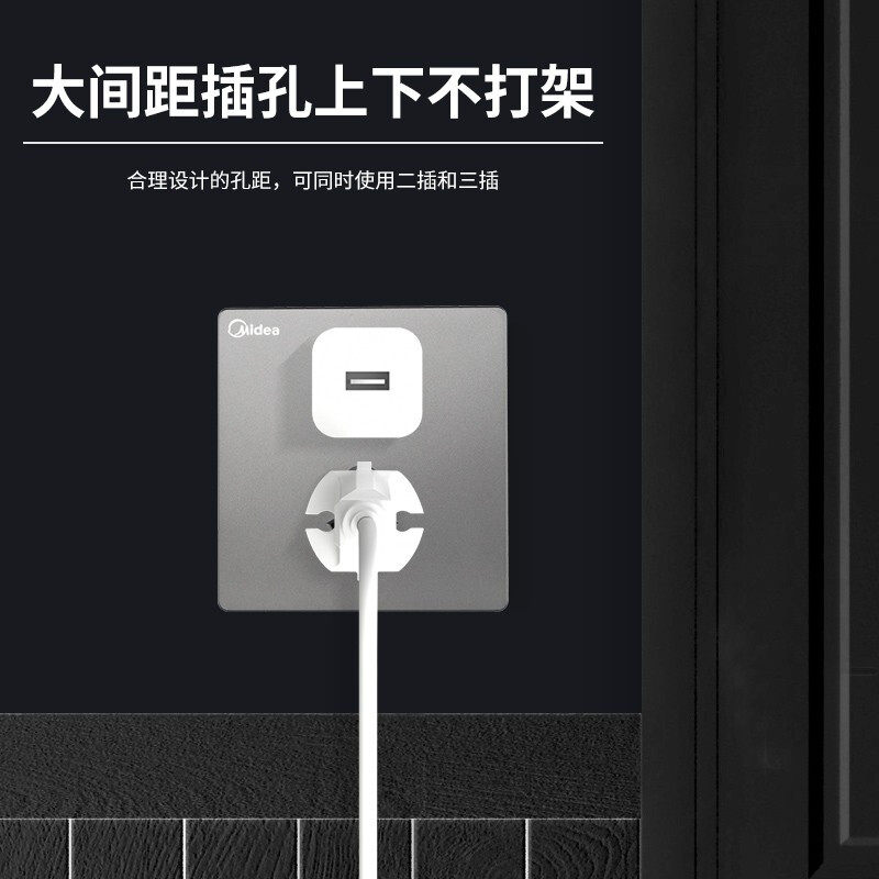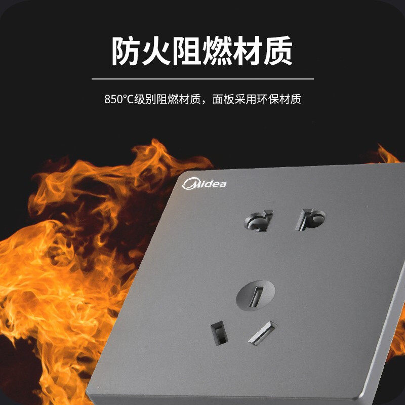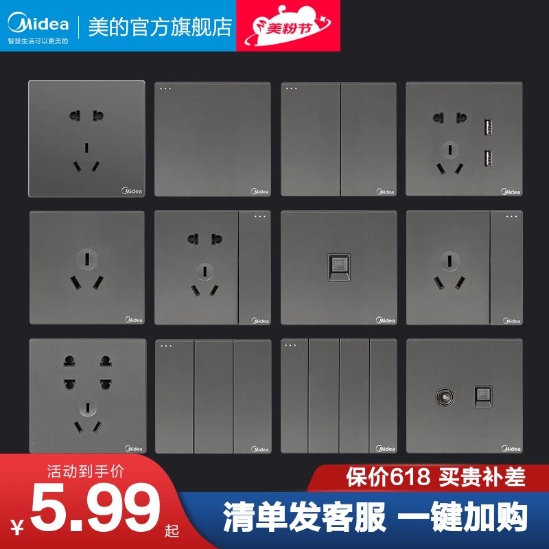 Гребца переключателя Midea E01 Серый диод пять -отверстие типа 86 настенный переключатель электрический работник темная рамка панель