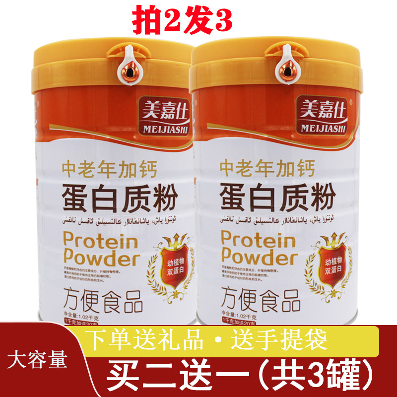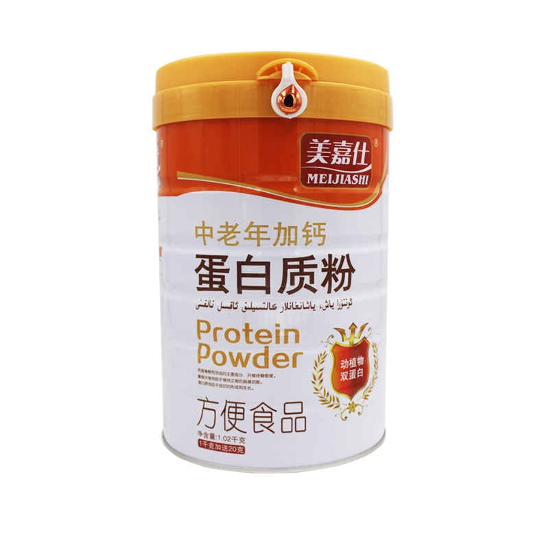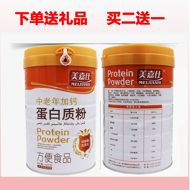 2 выстрела 3] Средний и пожилой люди с порошком кальциевого белка, смешанный с питательным питанием белка, высокий кальций.