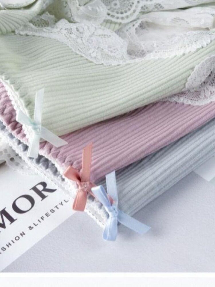 Нижнее белье, кружевные сексуальные японские летние штаны с бантиком, в корейском стиле