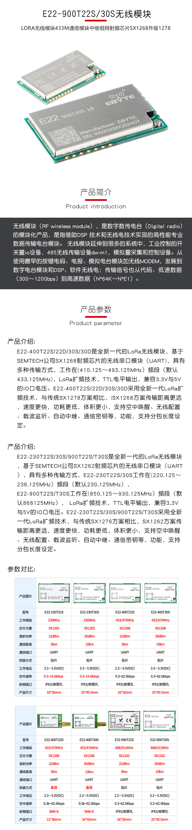 E22-900T22/30S беспроводной приемопередатчик Lora с расширенным спектром UART, модуль последовательного порта 868/915 МГц SX1262
