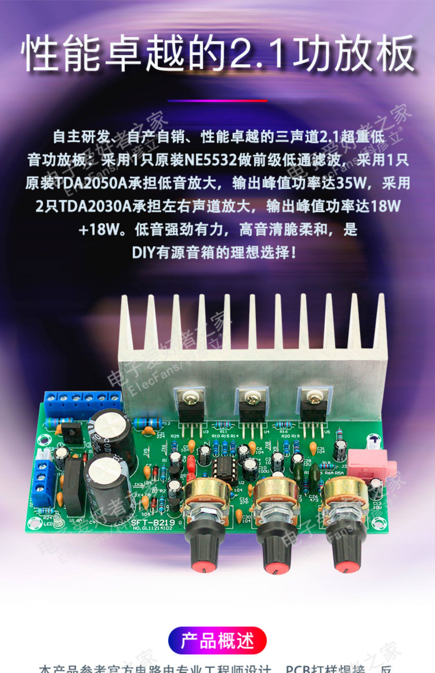 2.1 Portal Plate TDA2050+TDA2030A с низкой шумовой высокой степенью высокого уровня и сабвуфера