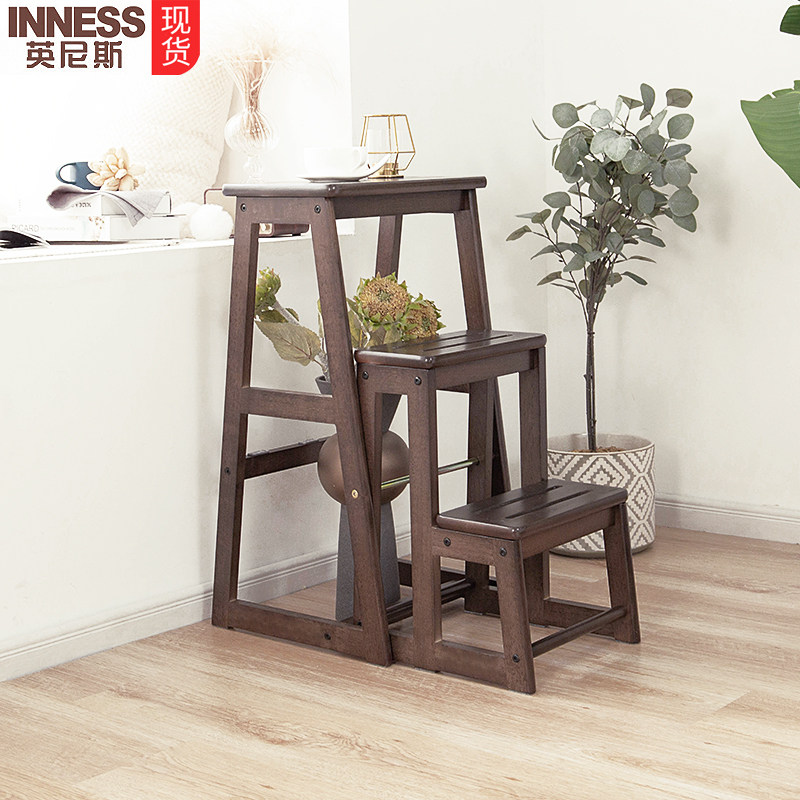 Складная лестница с твердым деревом складываемой высокий стул с двойным использованием трехэтажной лестницы высокой скамейки много -функциональный стул переоборудован для обувного табурета