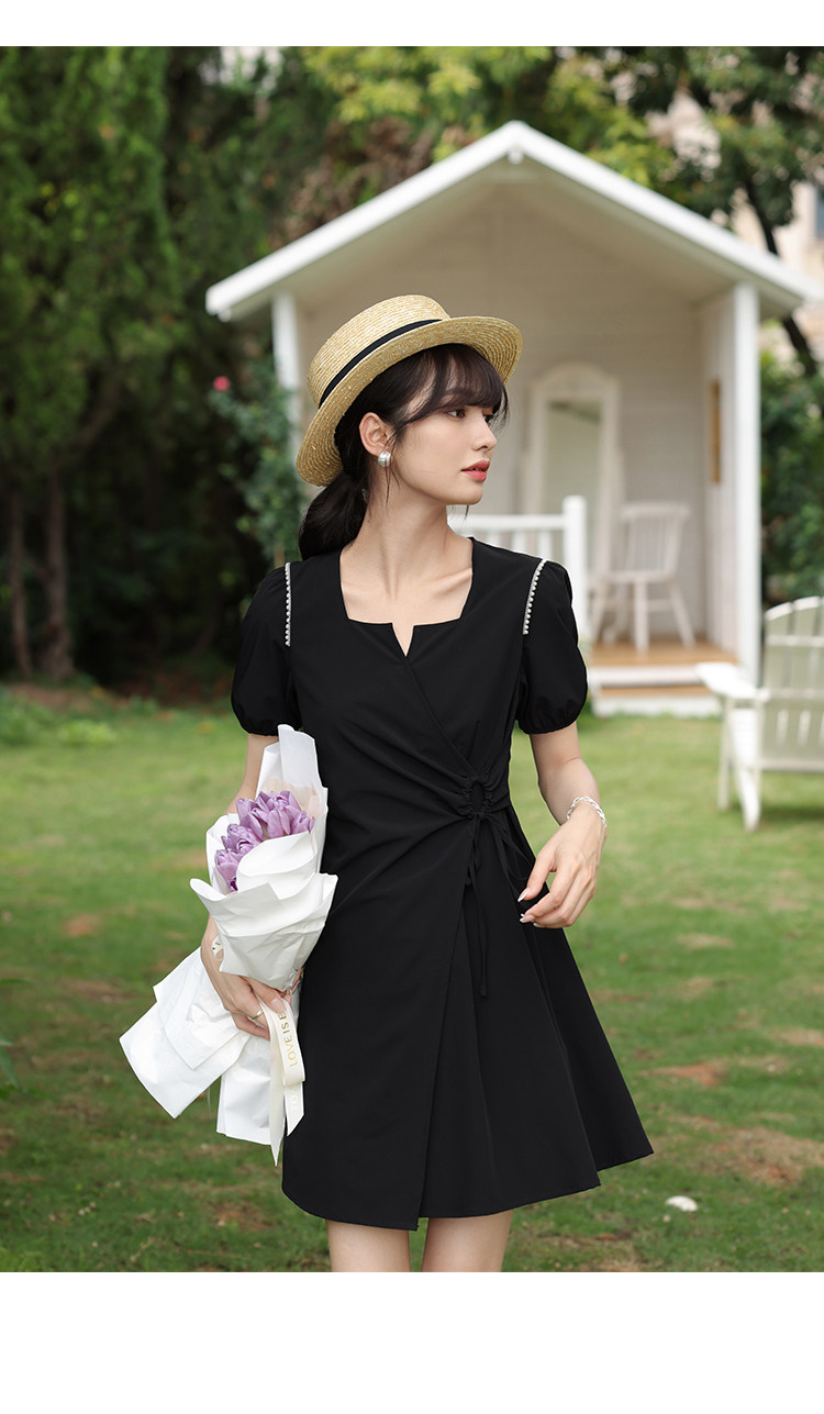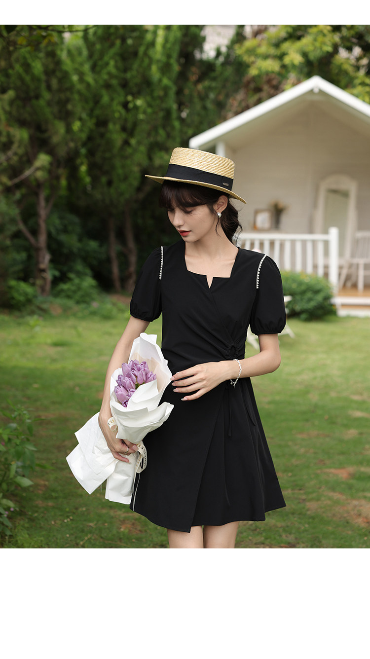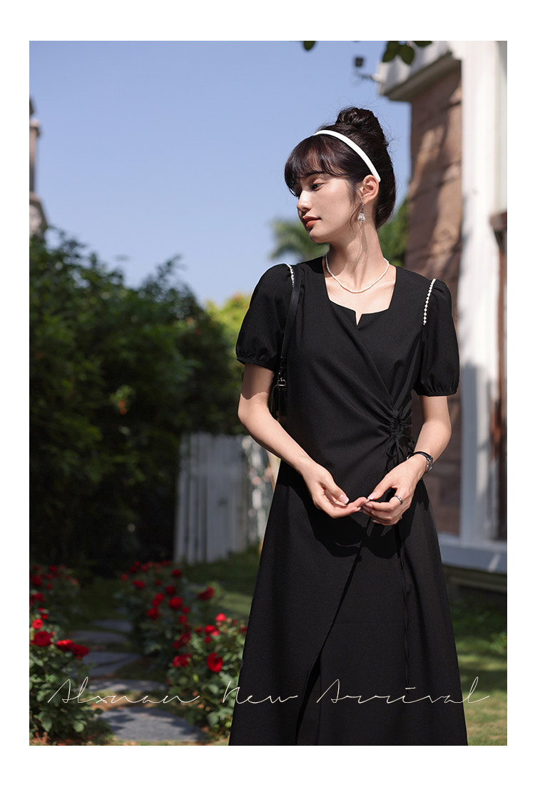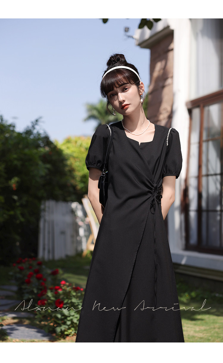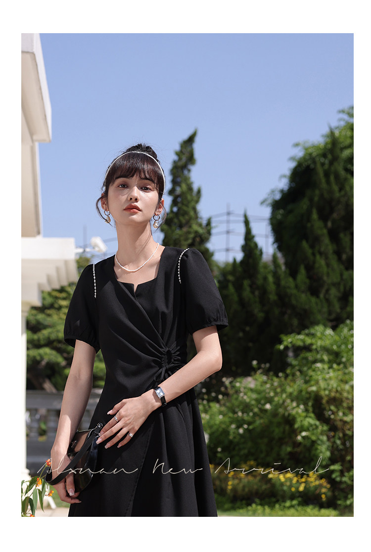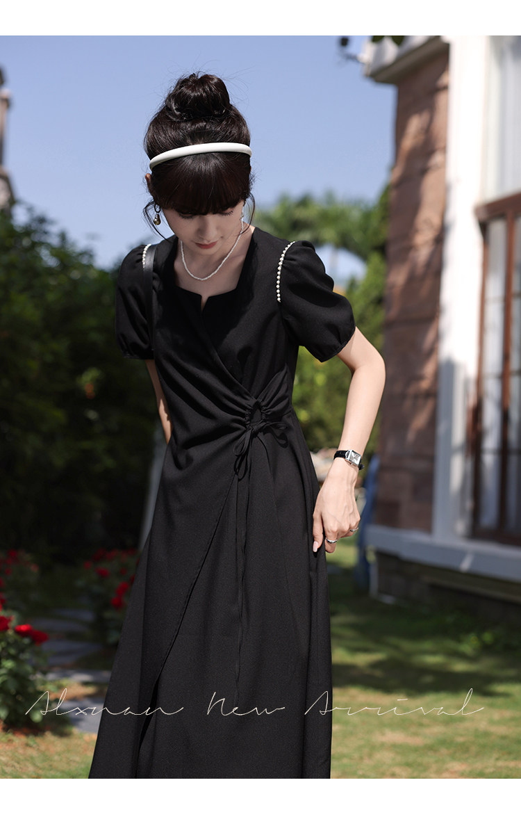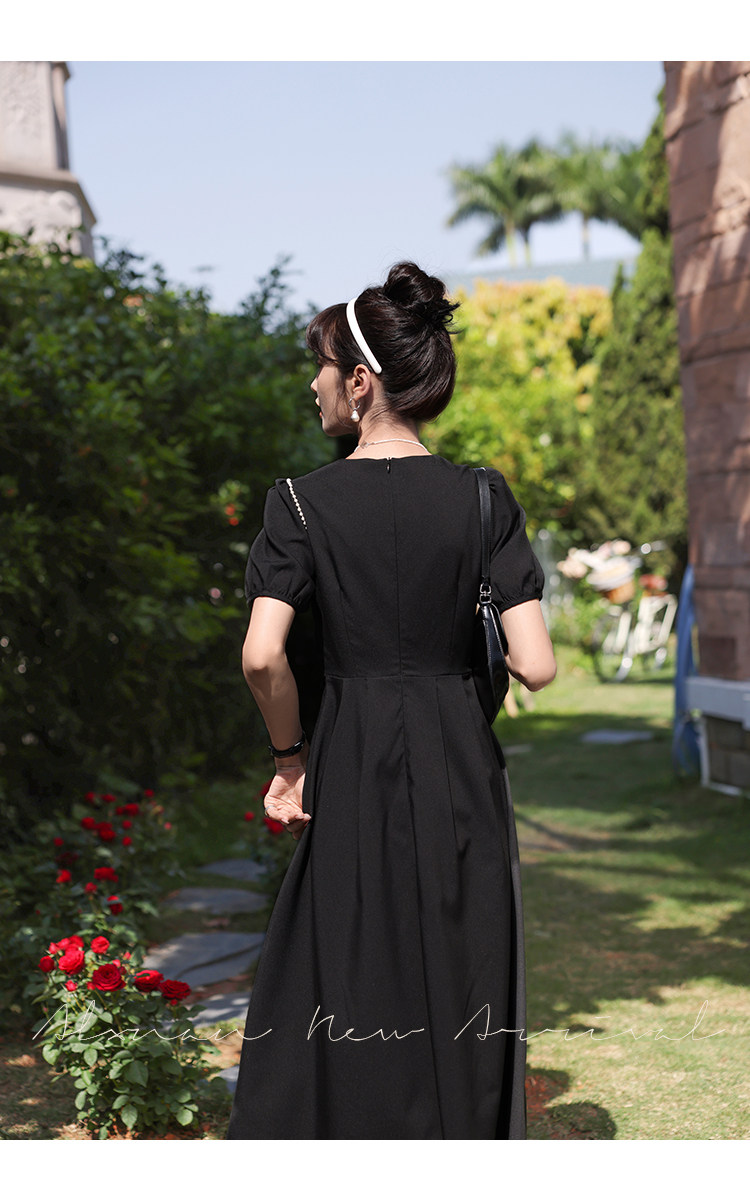 鹿向南 Женское платье "Temperament Guide" в стиле Хепберн с короткими рукавами, маленькая черная юбка с пышными рукавами, лето 2025