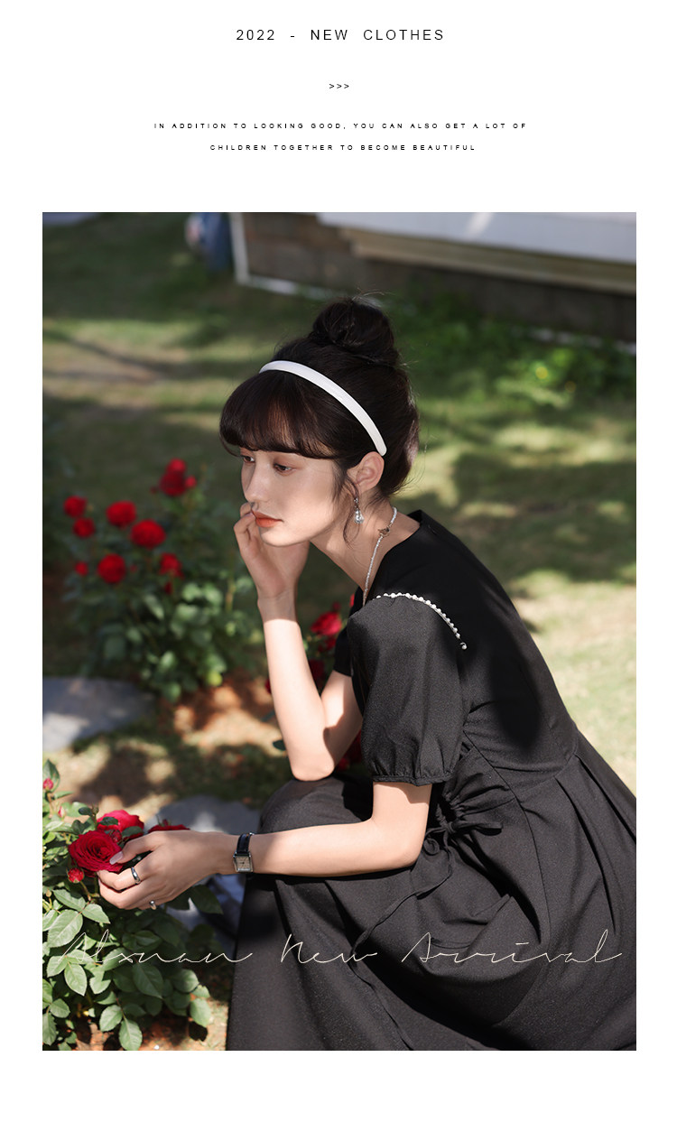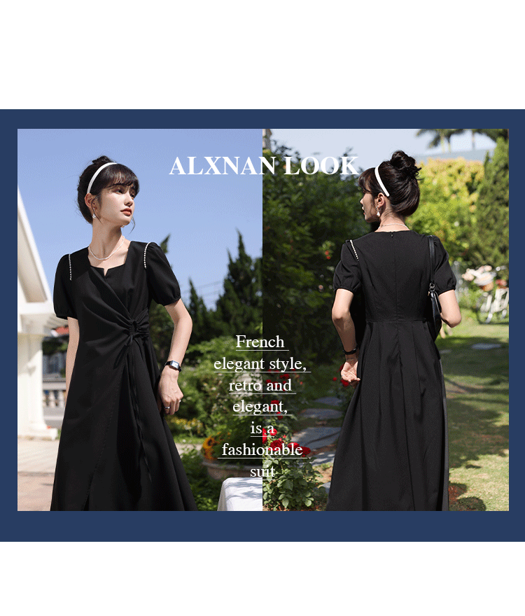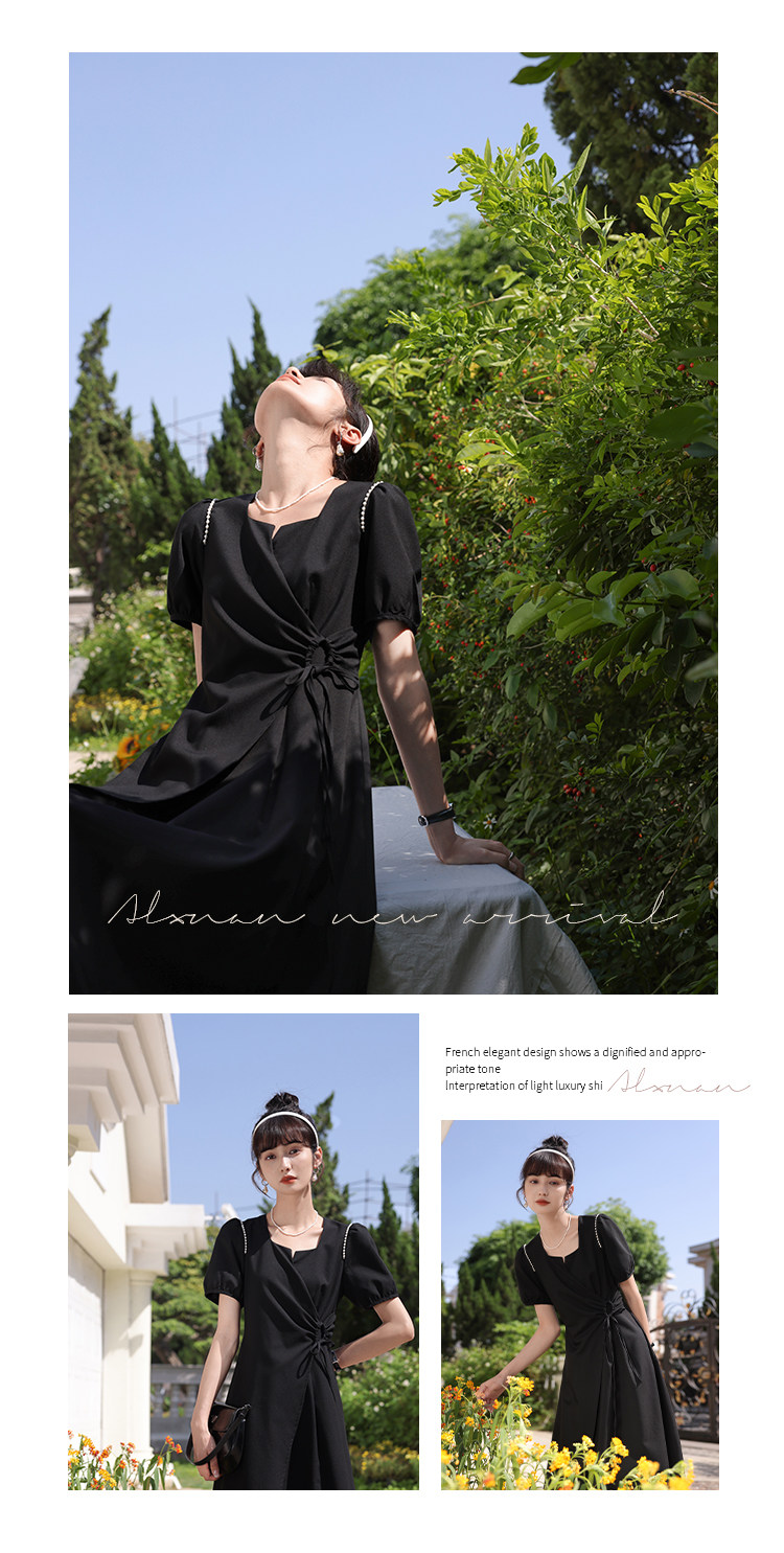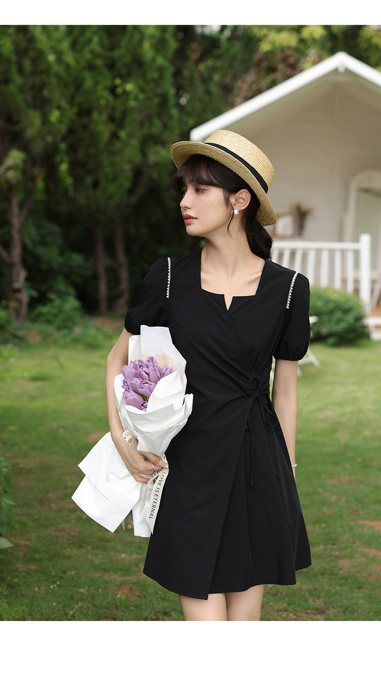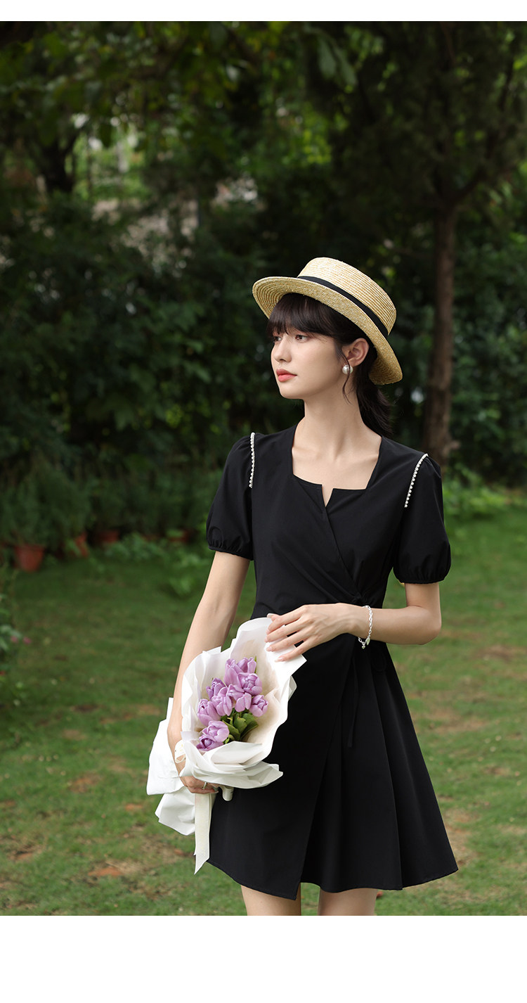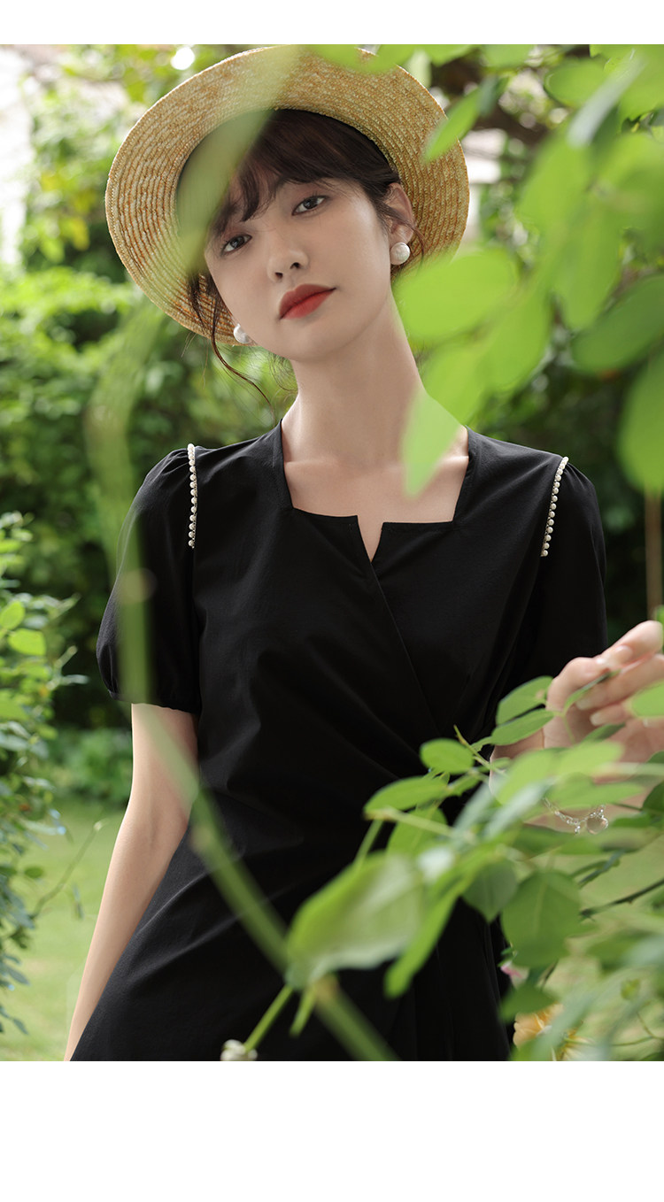 鹿向南 Женское платье "Temperament Guide" в стиле Хепберн с короткими рукавами, маленькая черная юбка с пышными рукавами, лето 2025