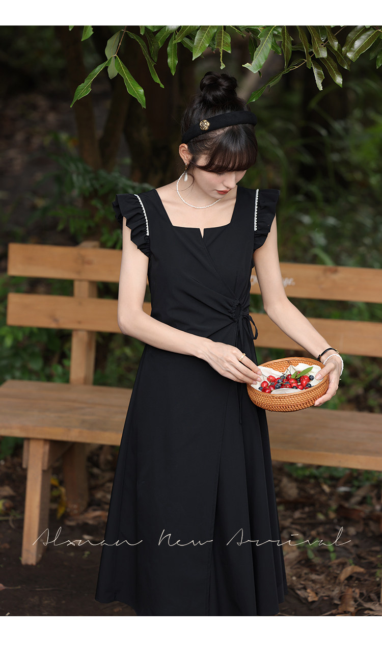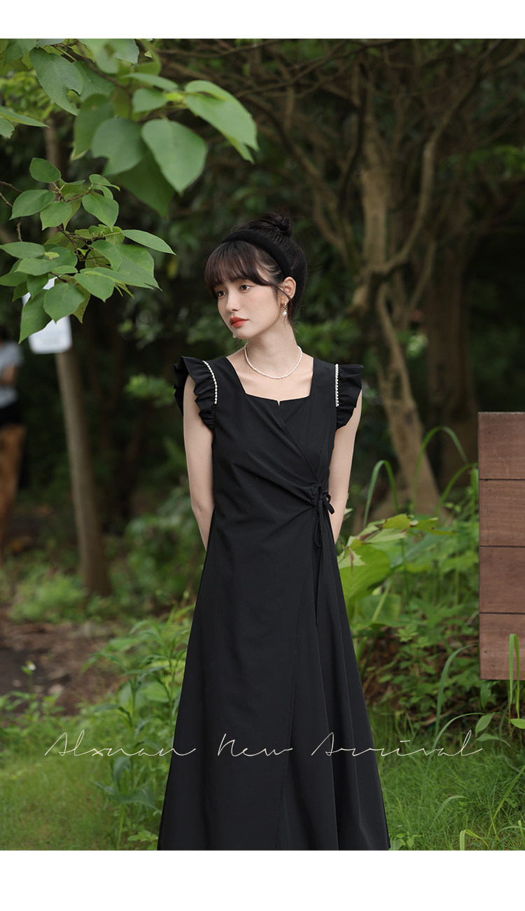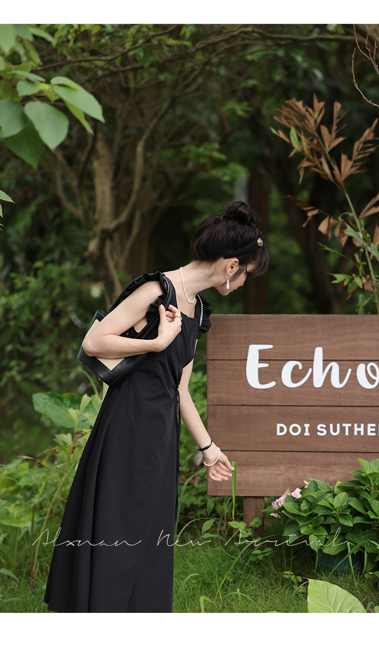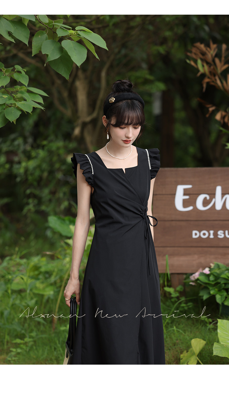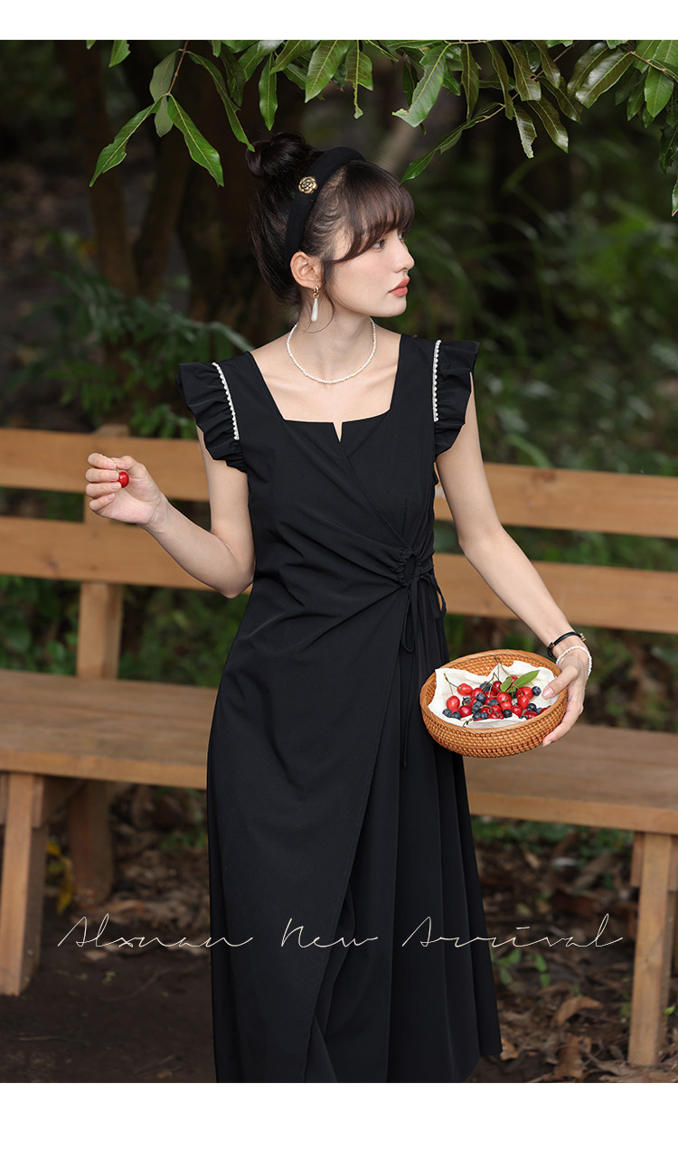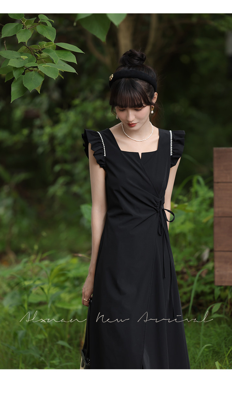 鹿向南 Женское платье "Temperament Guide" в стиле Хепберн с короткими рукавами, маленькая черная юбка с пышными рукавами, лето 2025