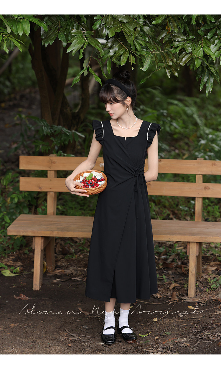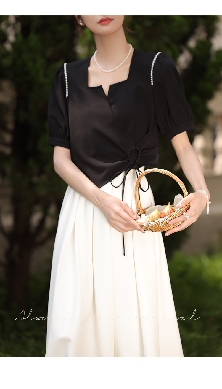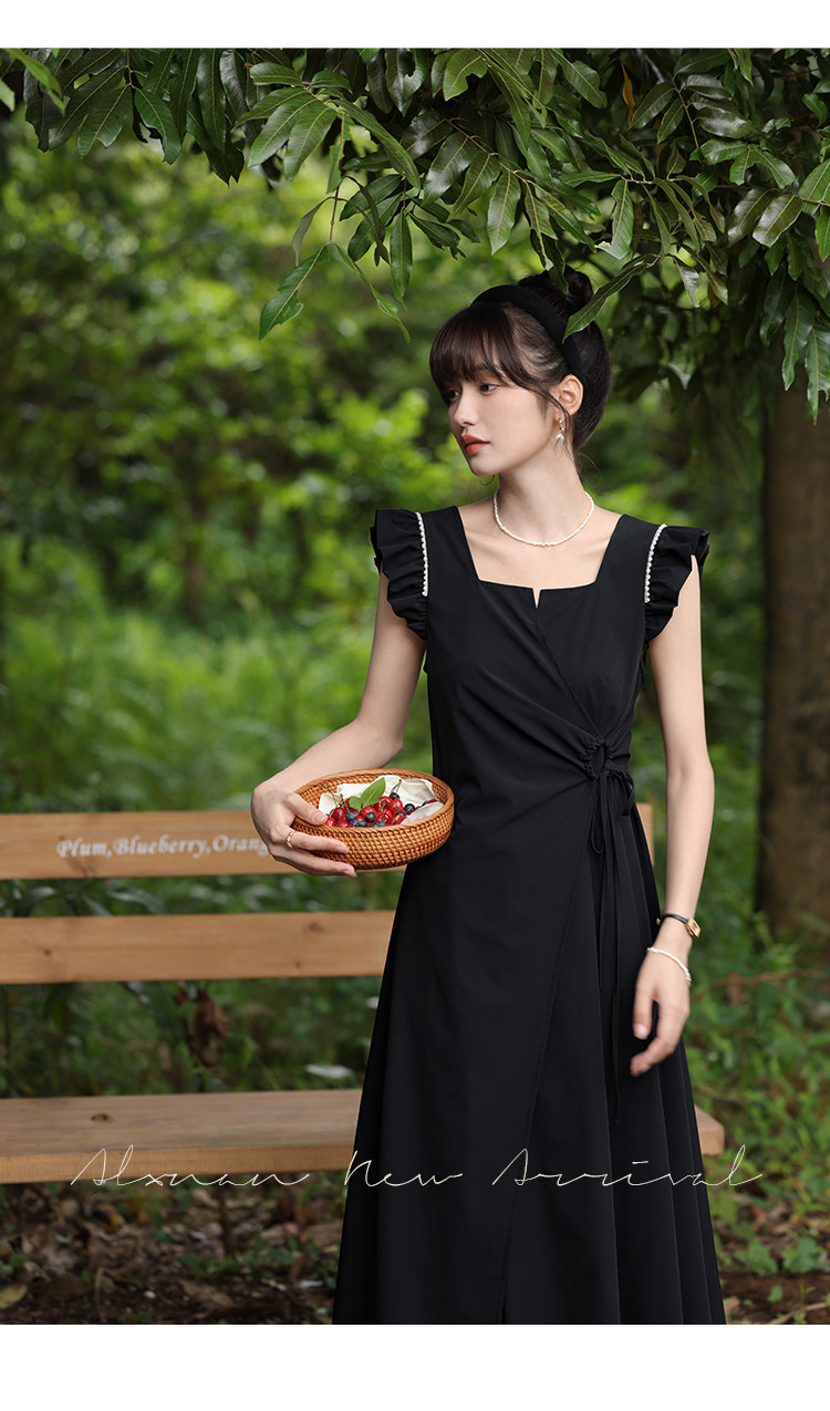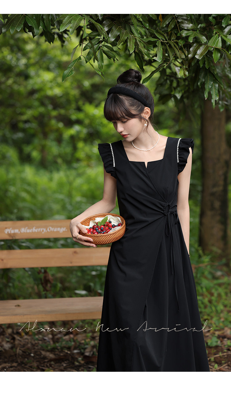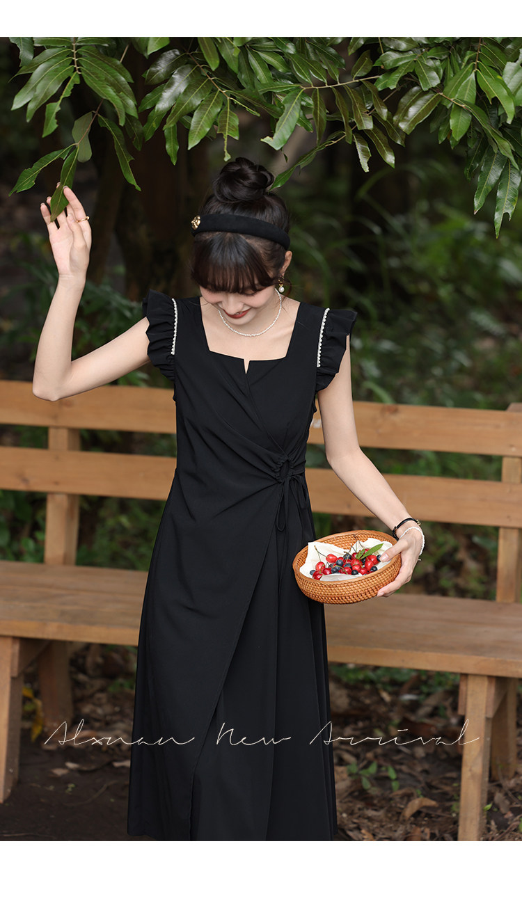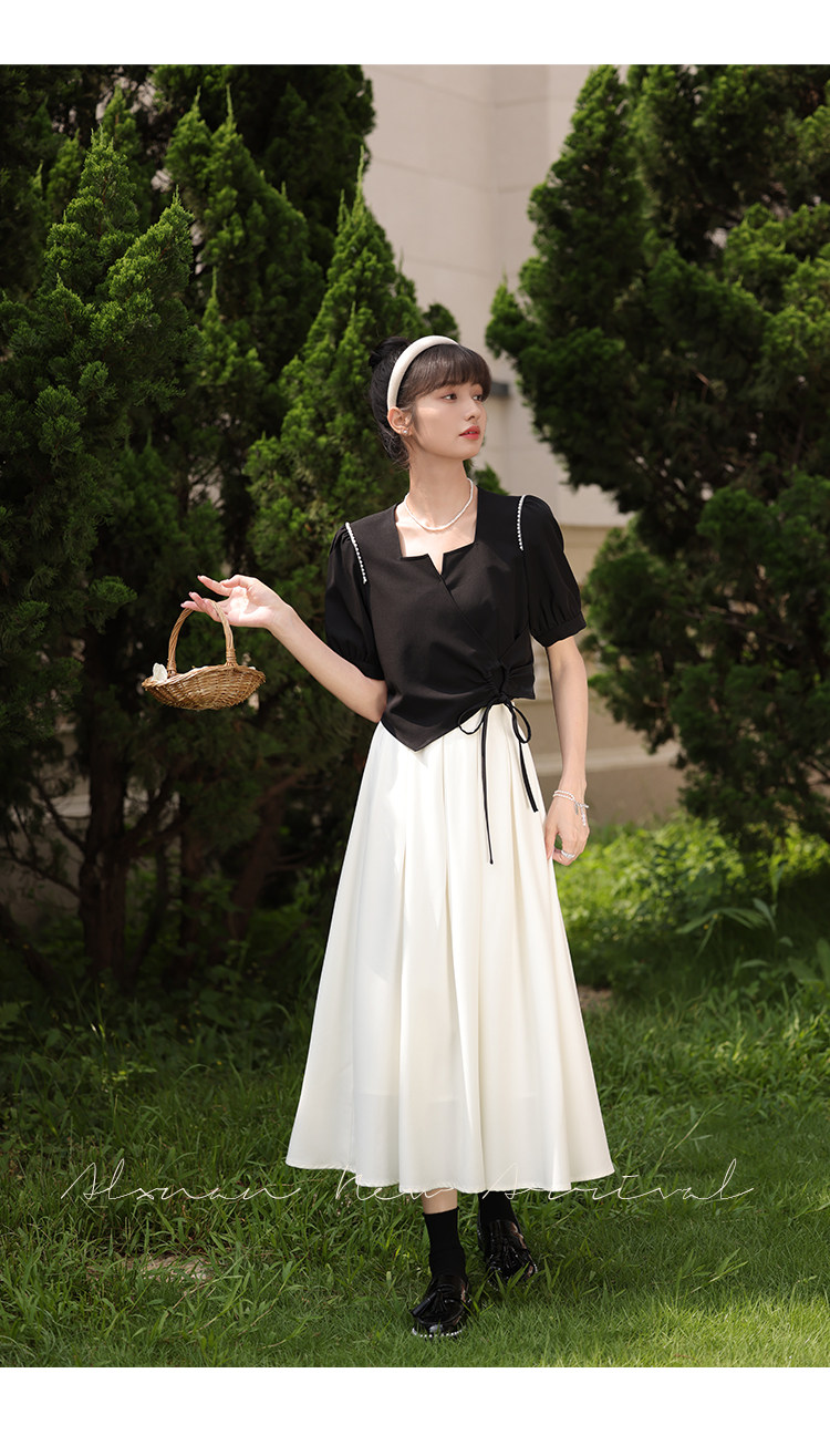 鹿向南 Женское платье "Temperament Guide" в стиле Хепберн с короткими рукавами, маленькая черная юбка с пышными рукавами, лето 2025