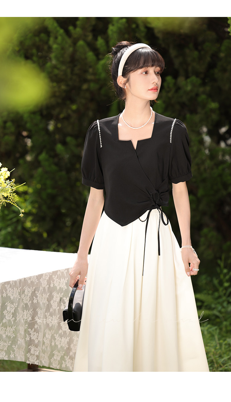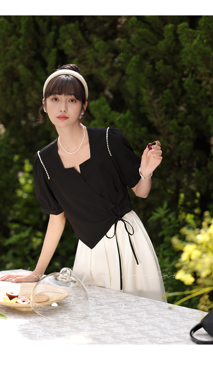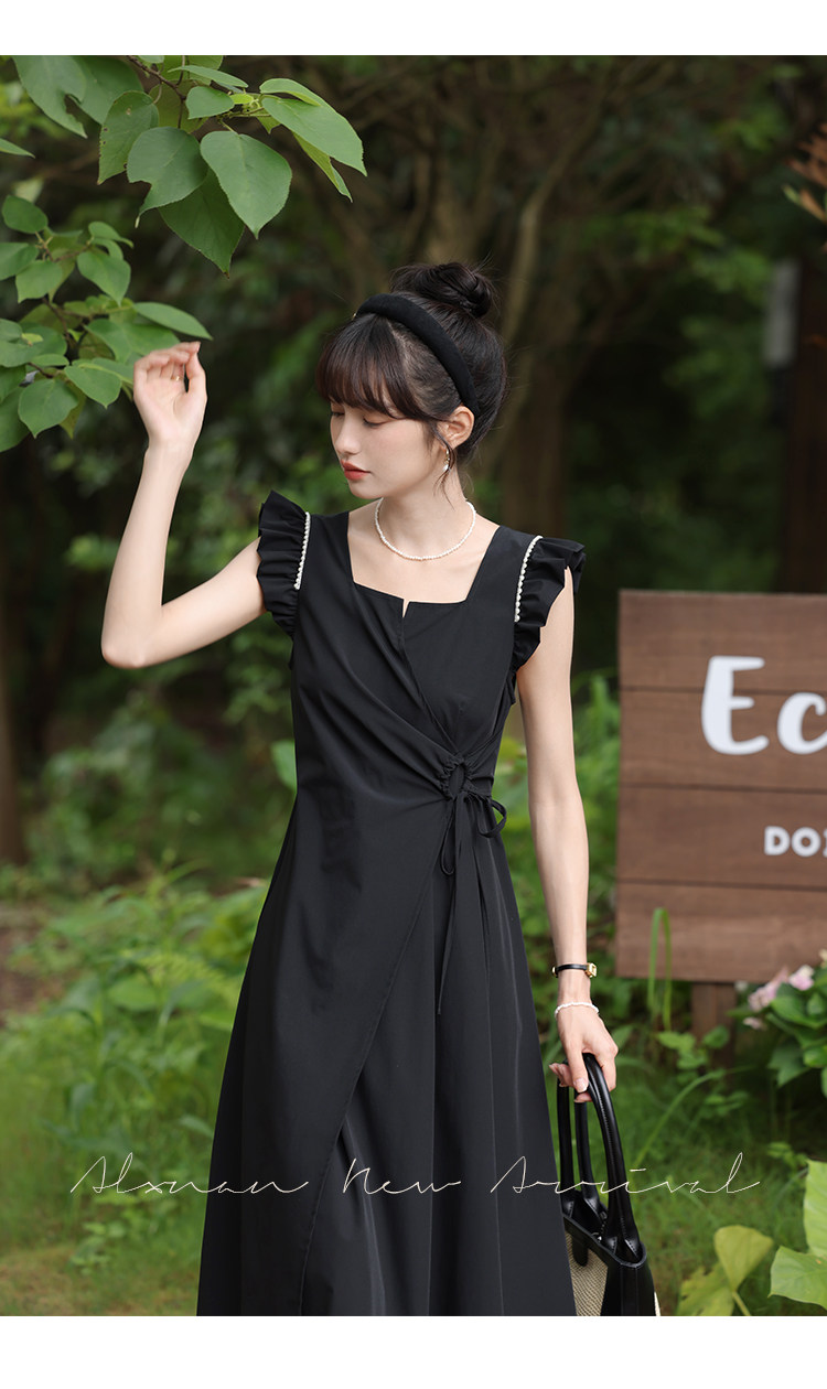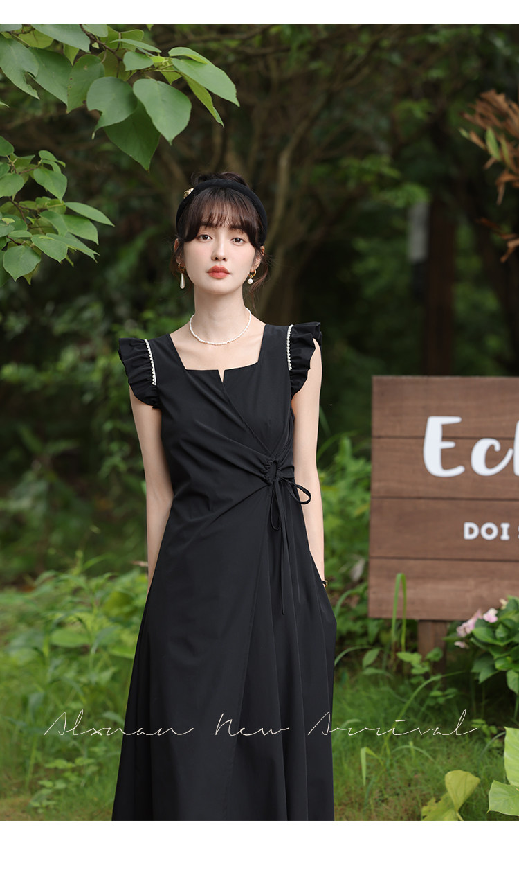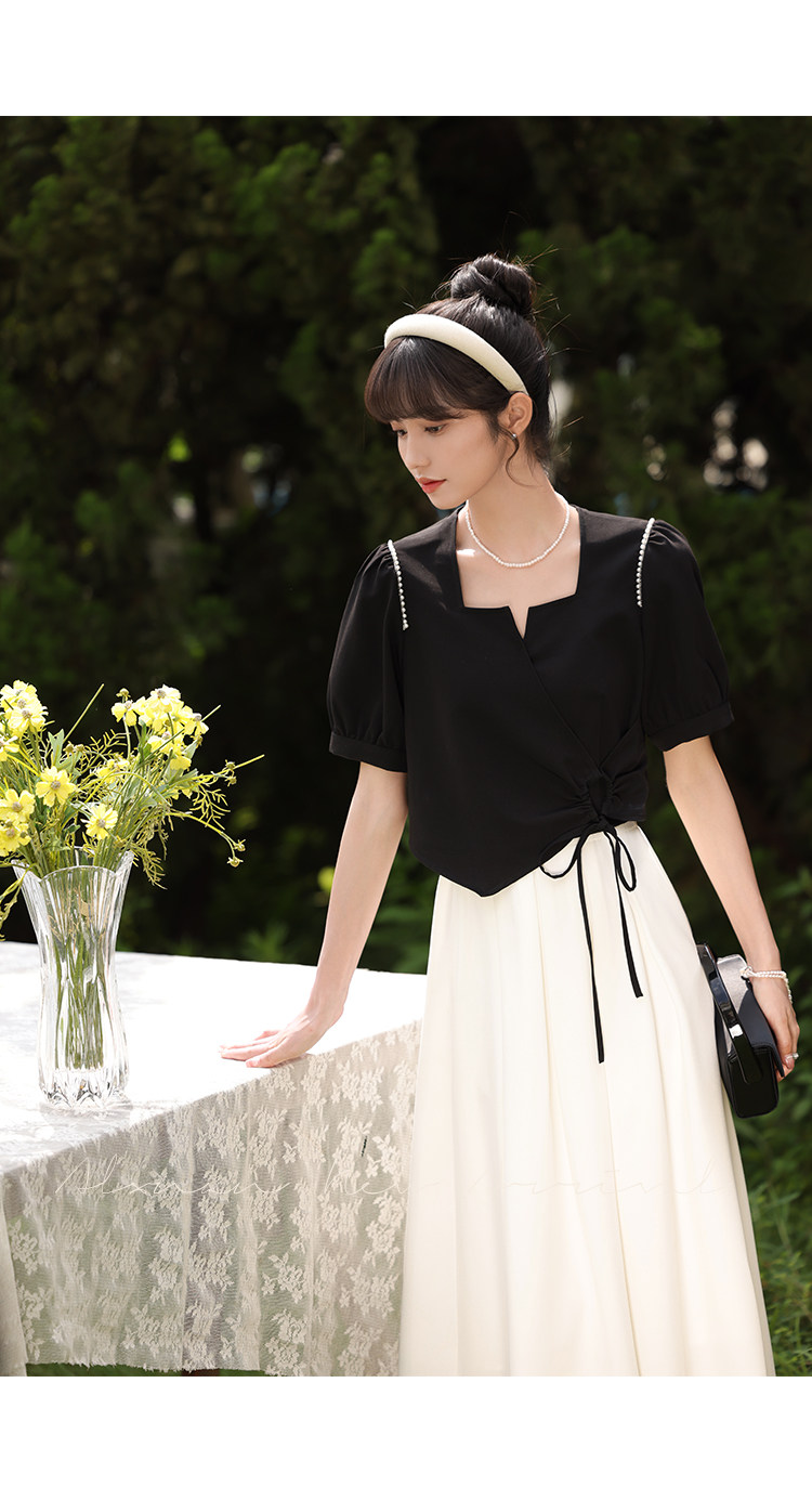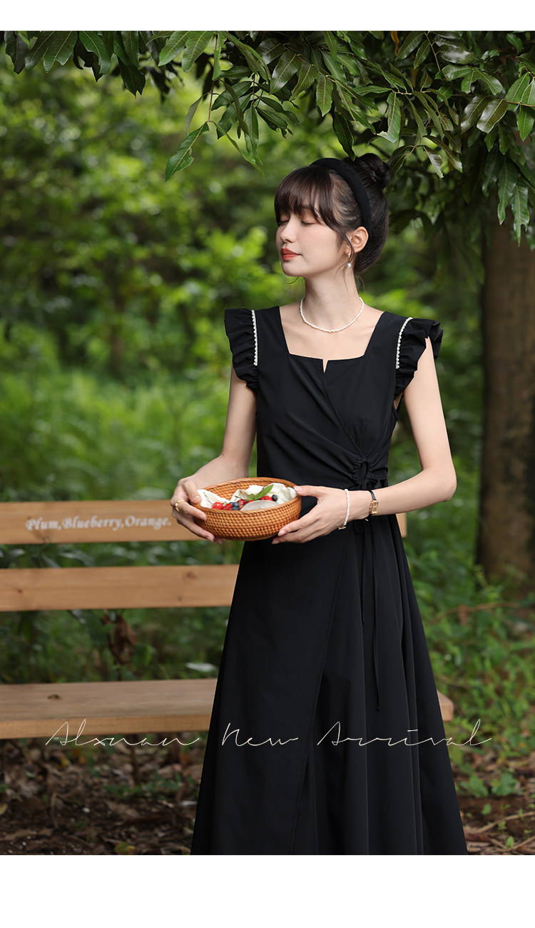 鹿向南 Женское платье "Temperament Guide" в стиле Хепберн с короткими рукавами, маленькая черная юбка с пышными рукавами, лето 2025