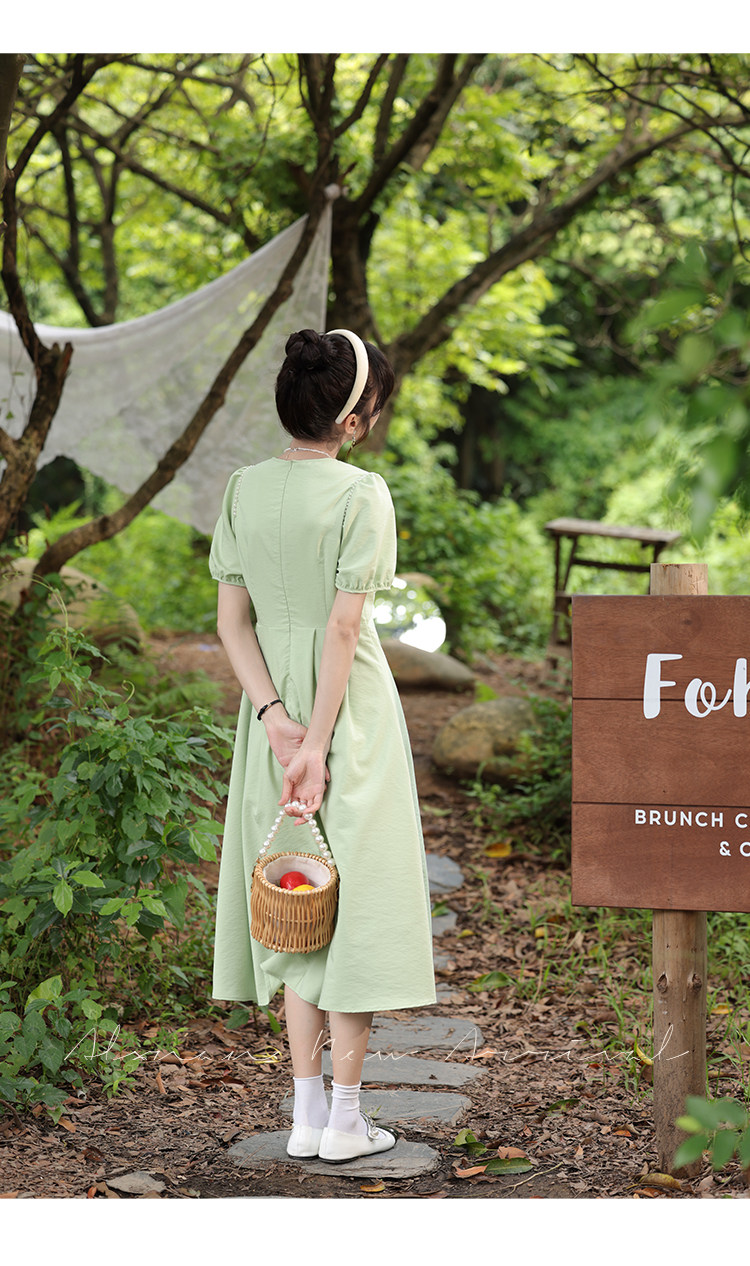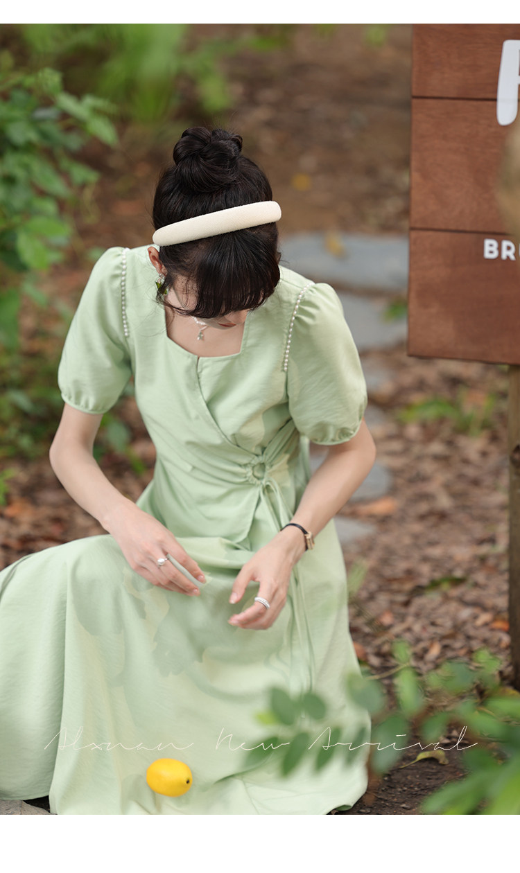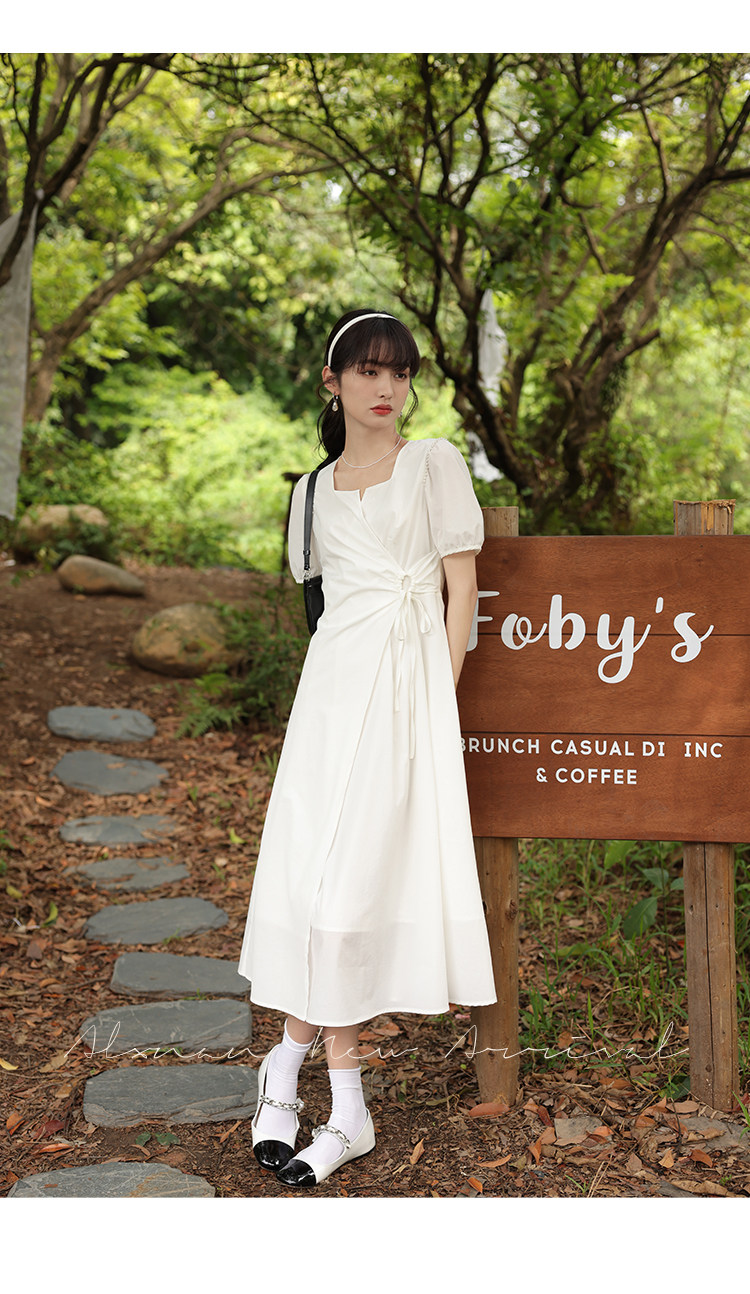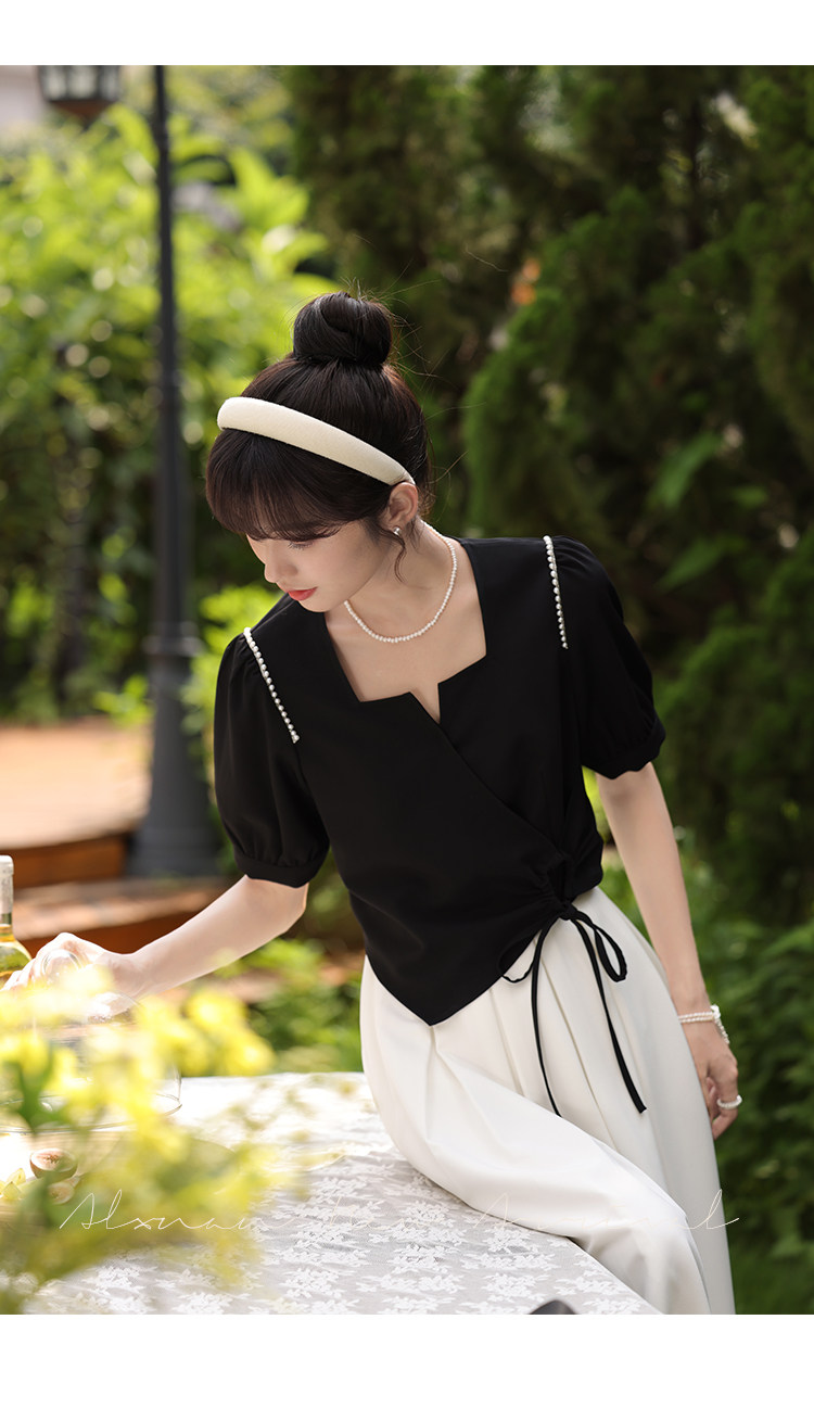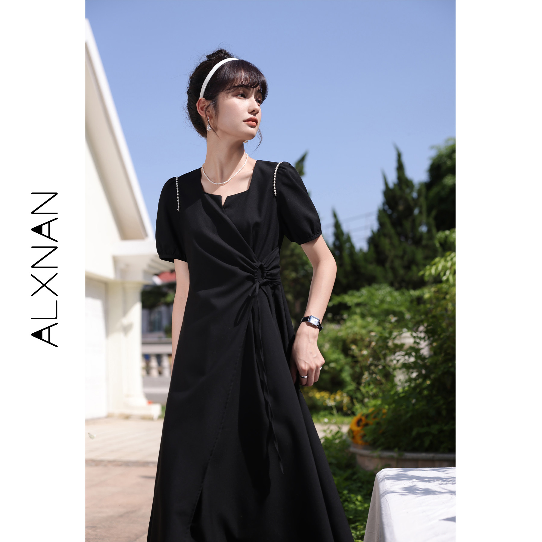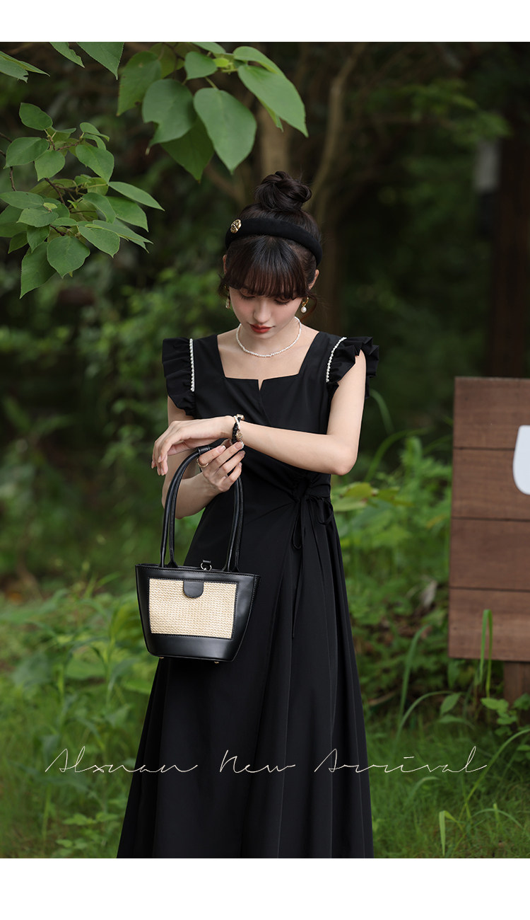 鹿向南 Женское платье "Temperament Guide" в стиле Хепберн с короткими рукавами, маленькая черная юбка с пышными рукавами, лето 2025