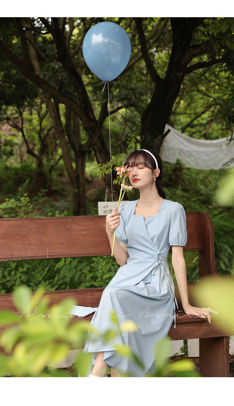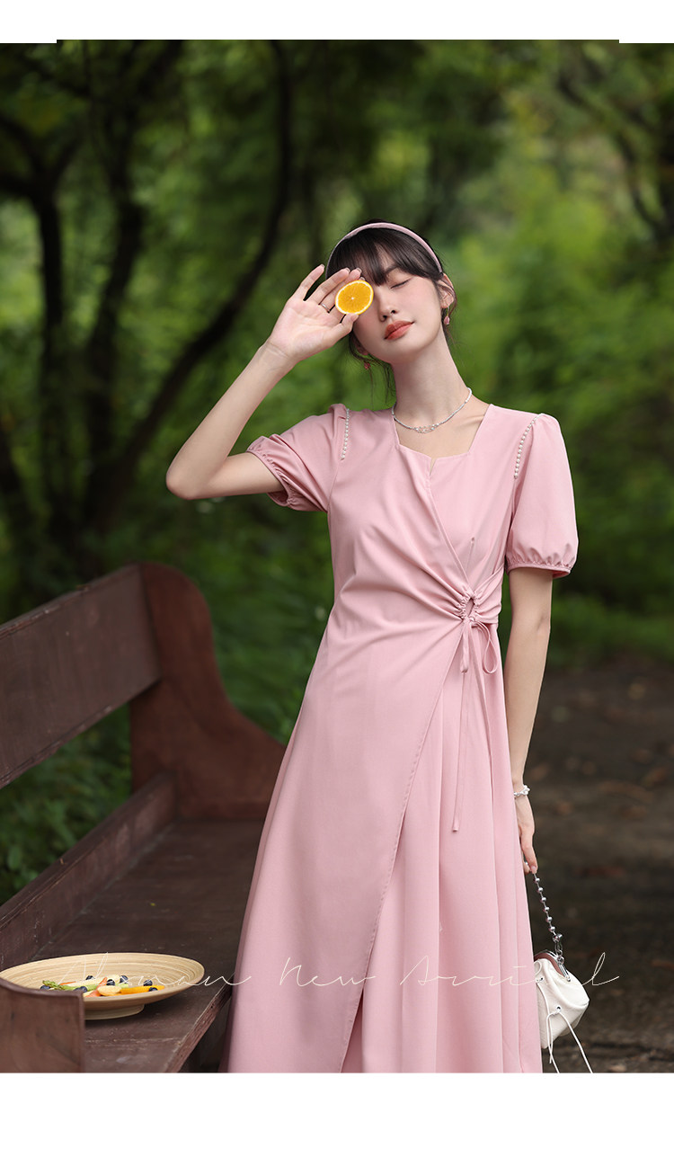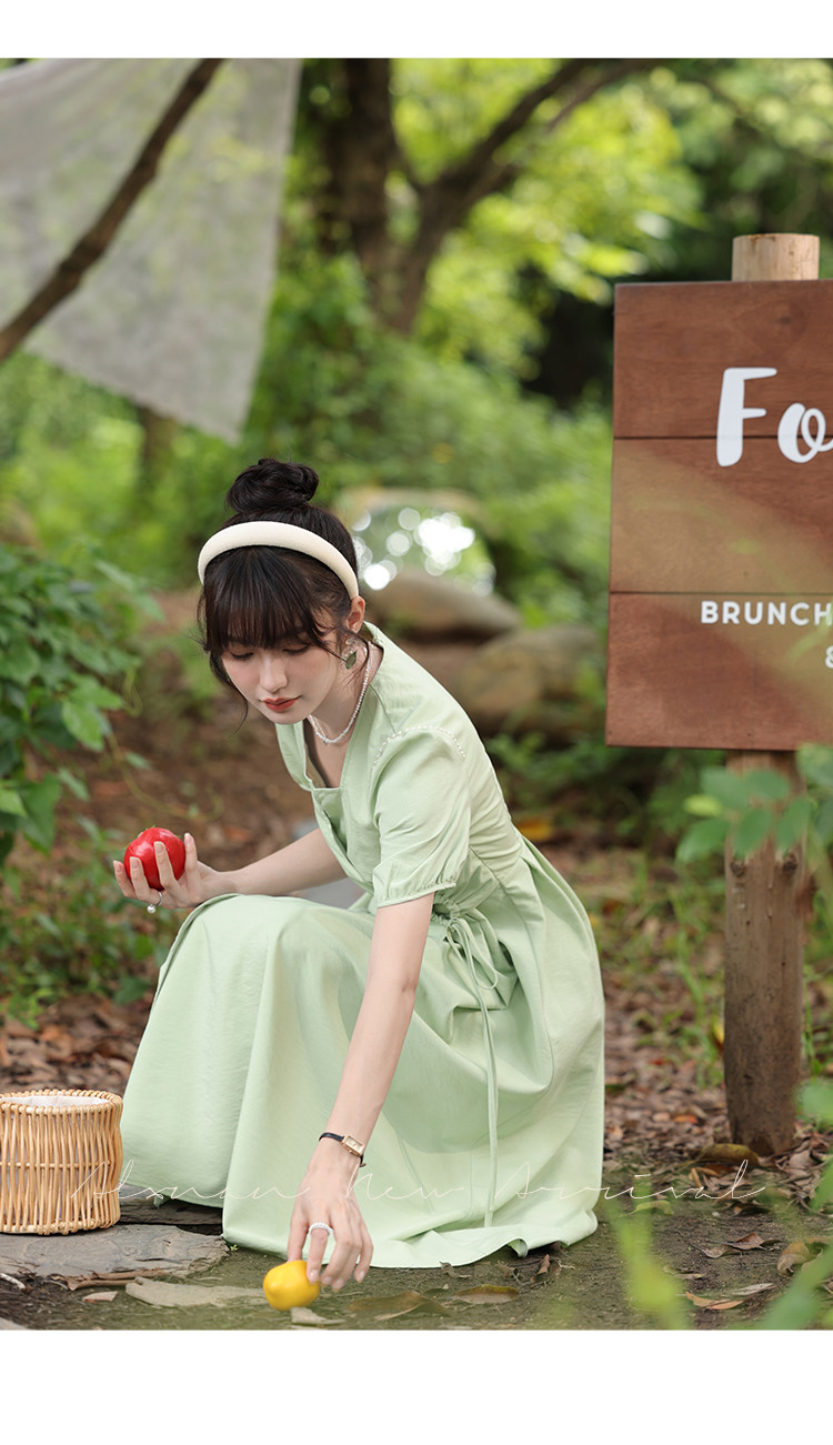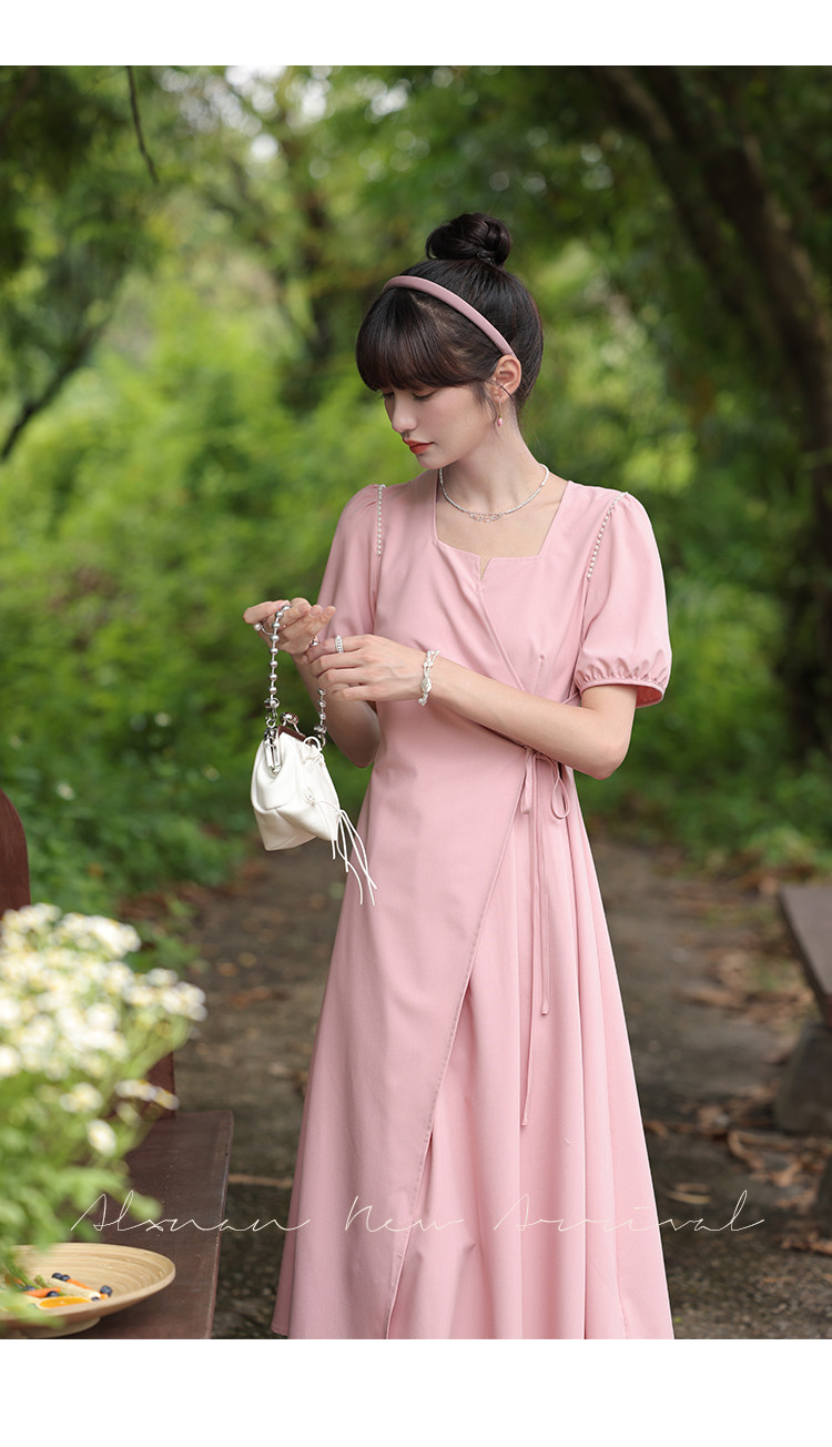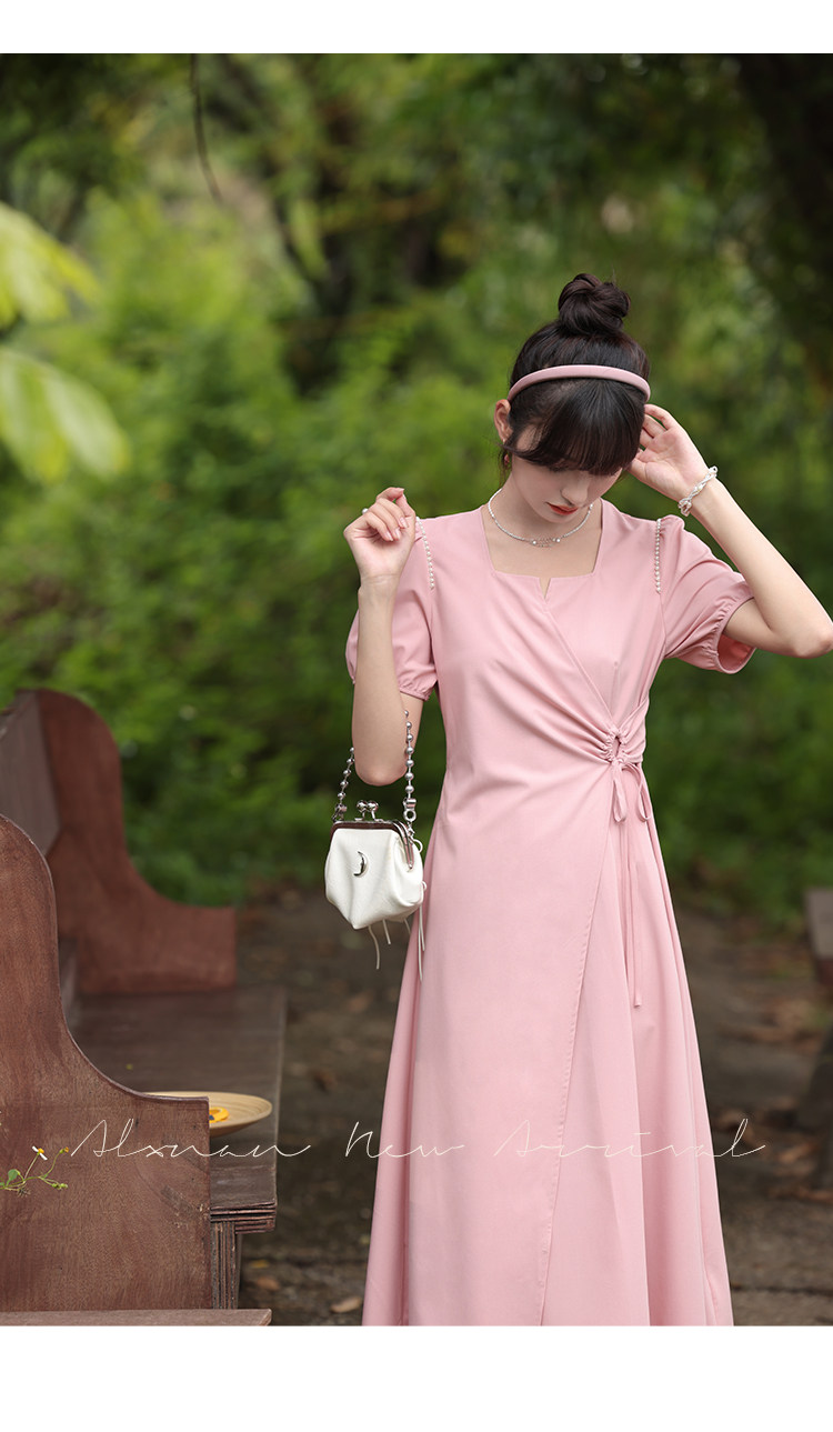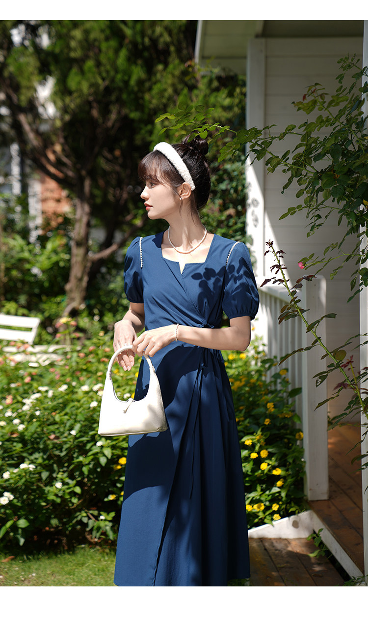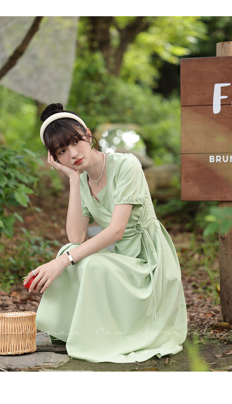 鹿向南 Женское платье "Temperament Guide" в стиле Хепберн с короткими рукавами, маленькая черная юбка с пышными рукавами, лето 2025