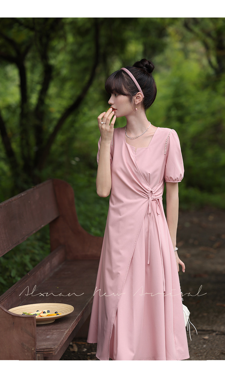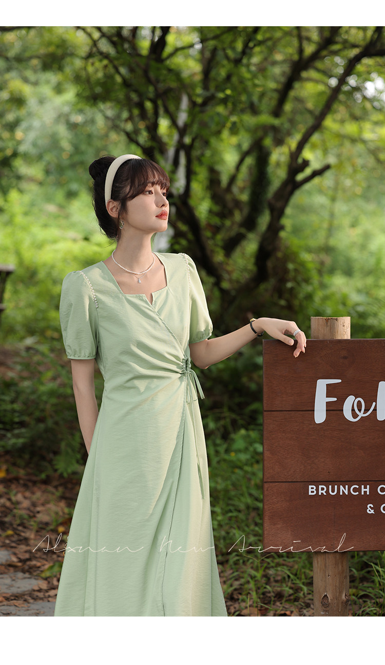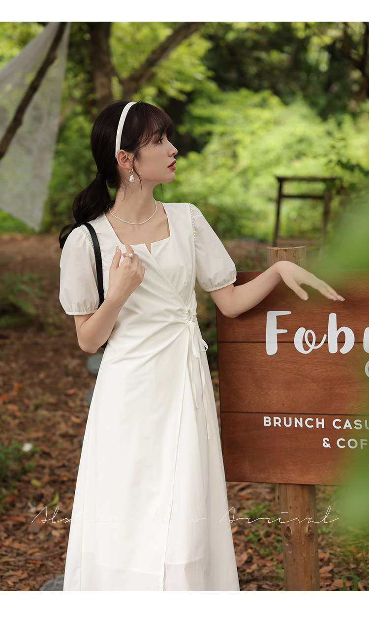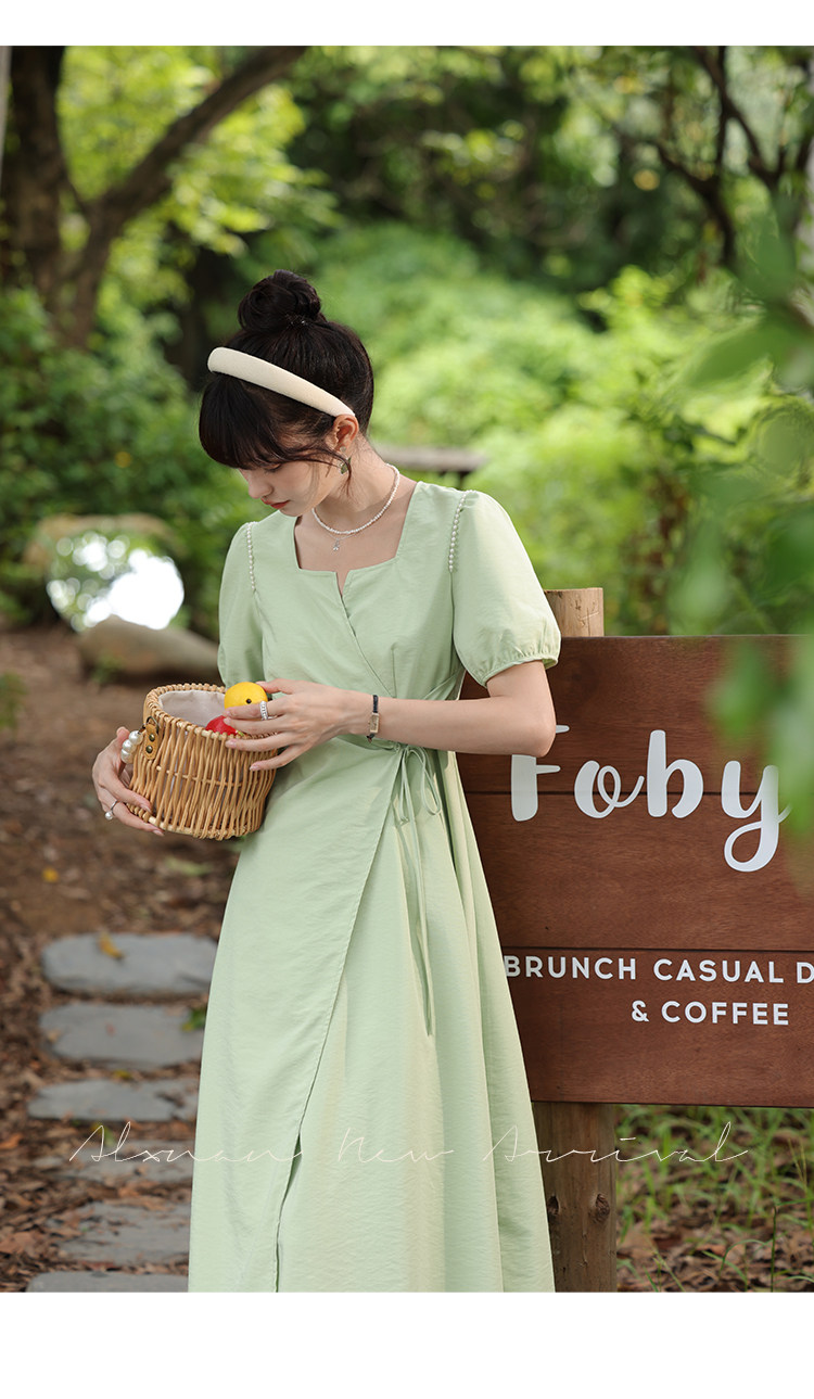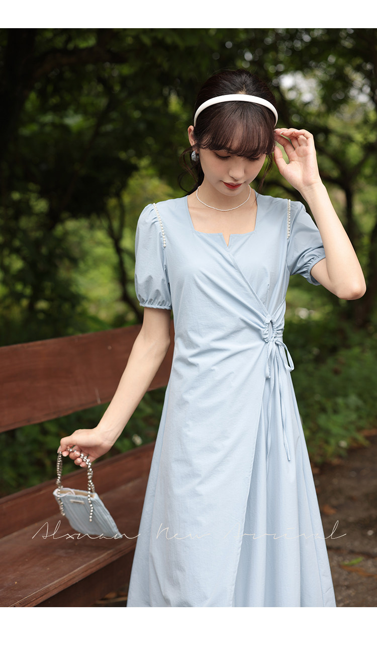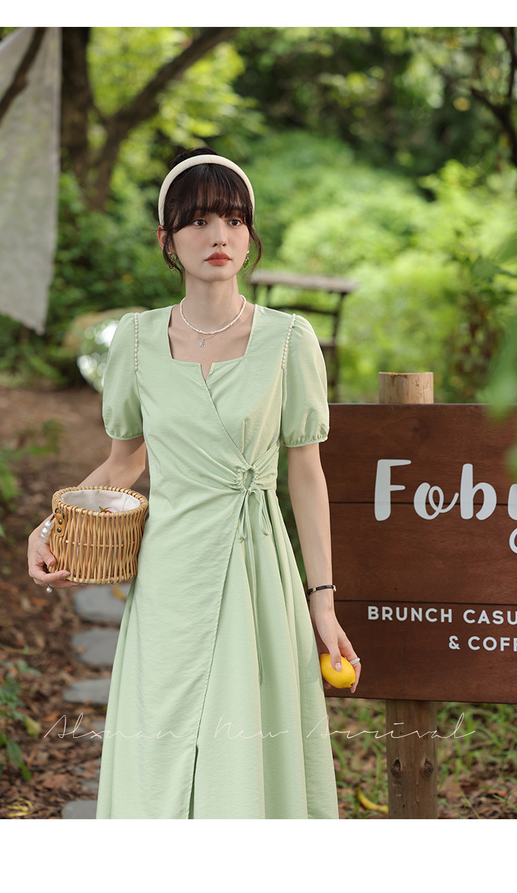 鹿向南 Женское платье "Temperament Guide" в стиле Хепберн с короткими рукавами, маленькая черная юбка с пышными рукавами, лето 2025