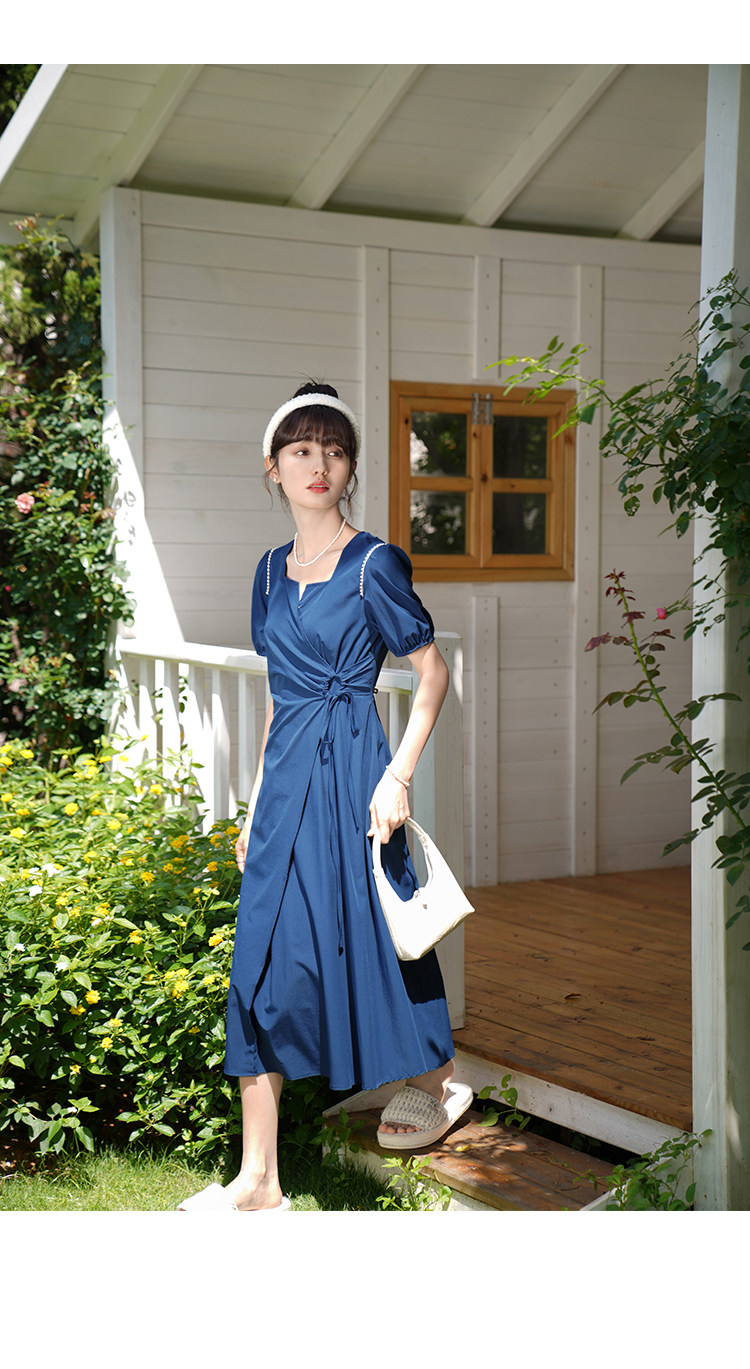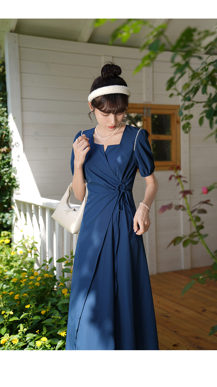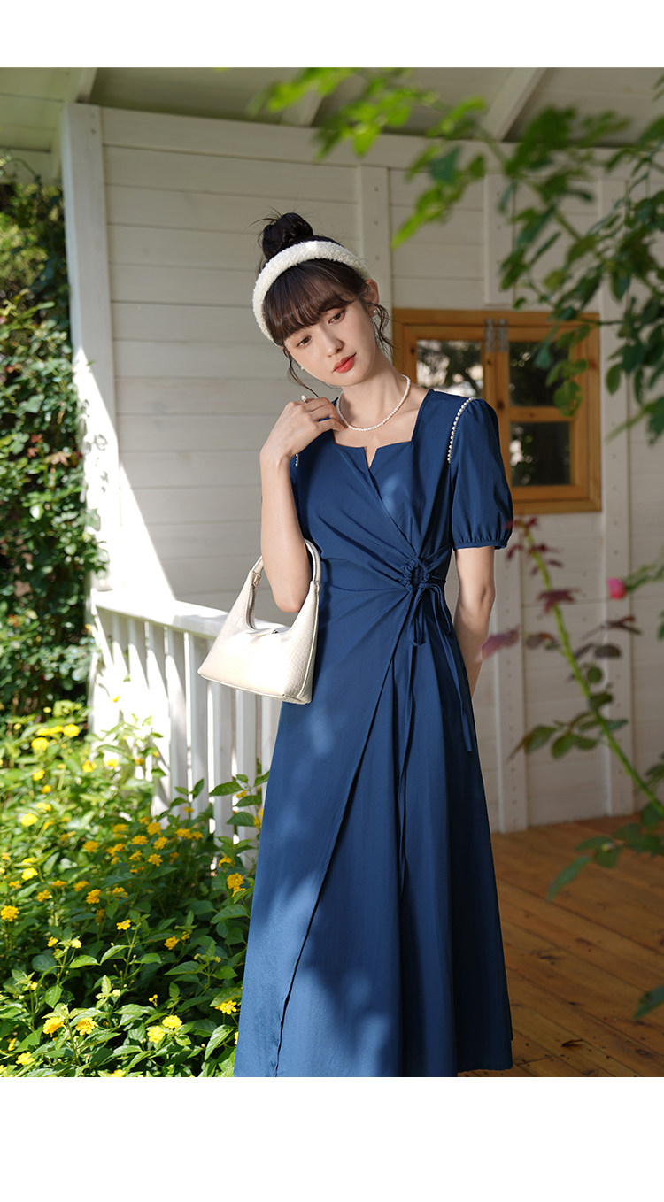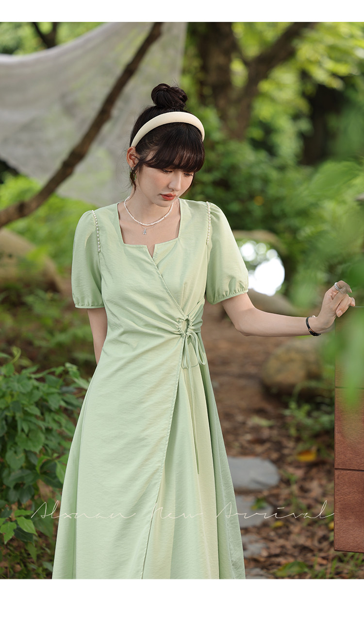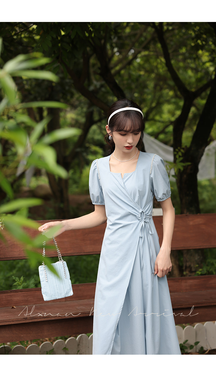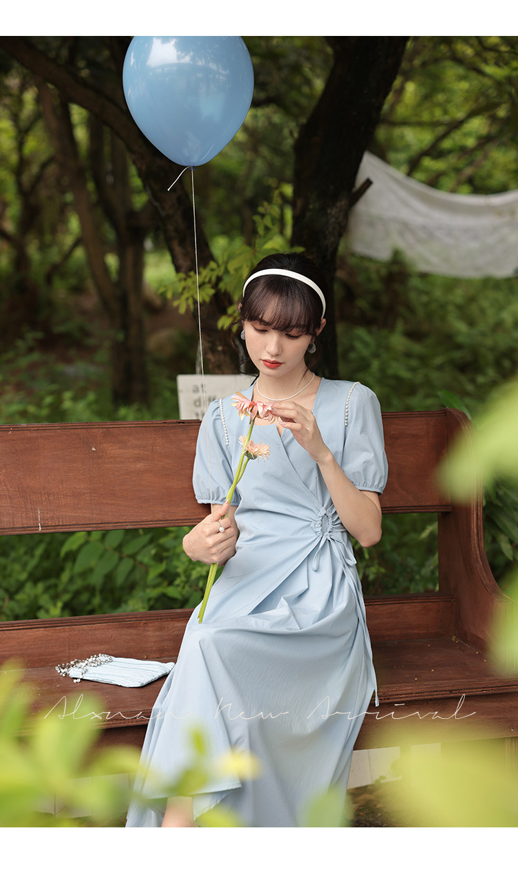 鹿向南 Женское платье "Temperament Guide" в стиле Хепберн с короткими рукавами, маленькая черная юбка с пышными рукавами, лето 2025