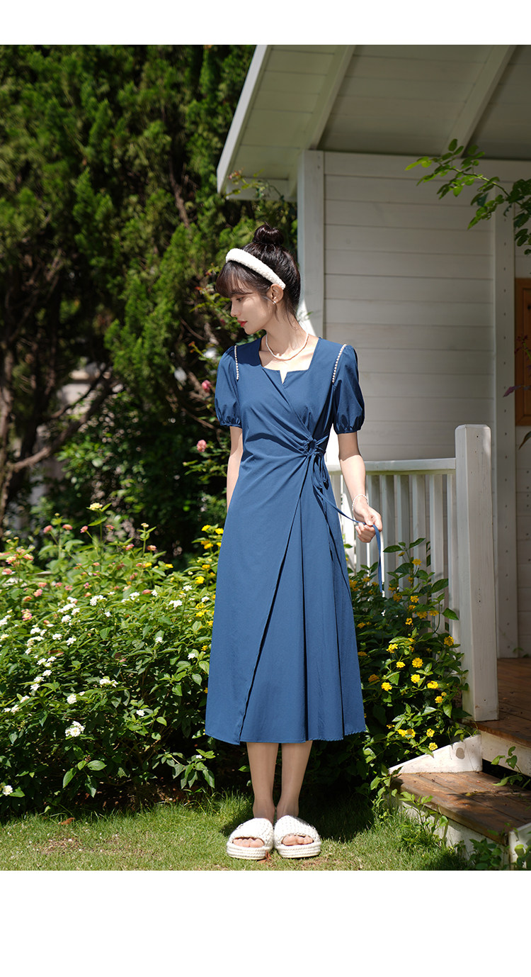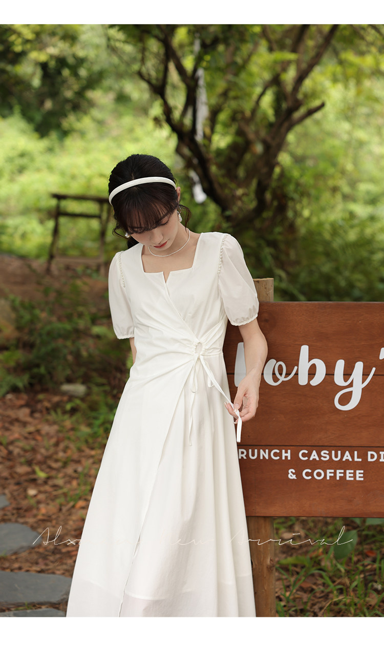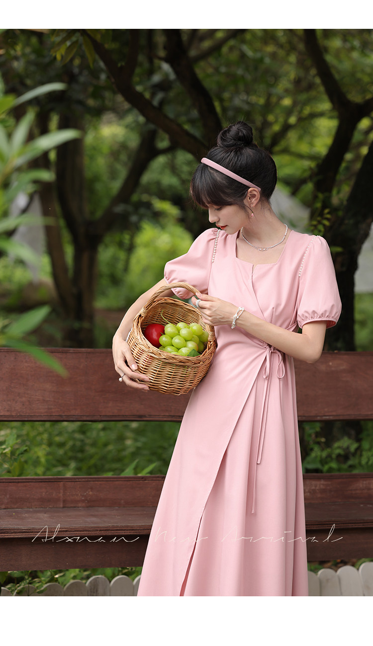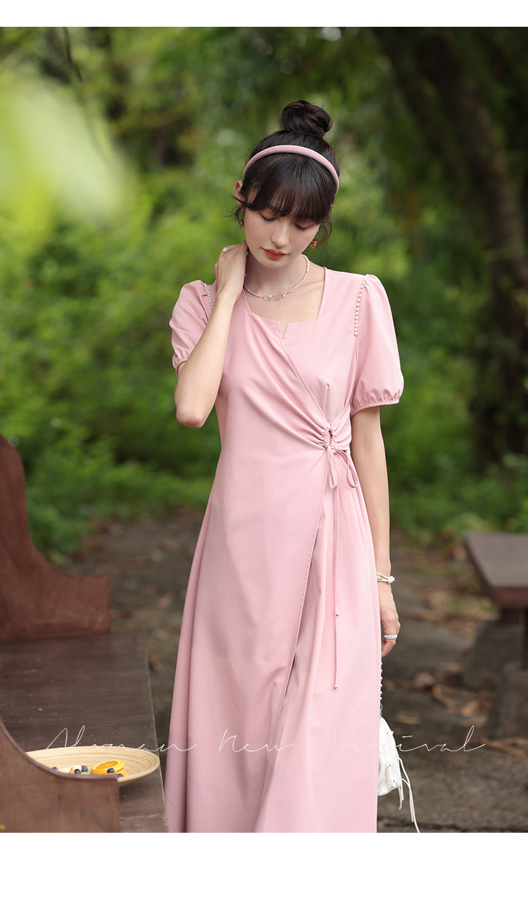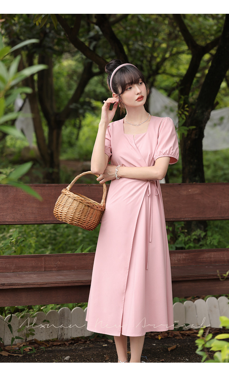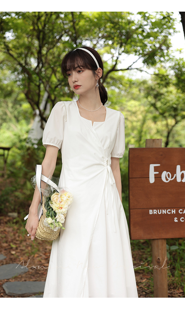 鹿向南 Женское платье "Temperament Guide" в стиле Хепберн с короткими рукавами, маленькая черная юбка с пышными рукавами, лето 2025