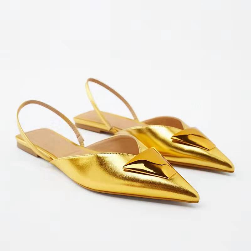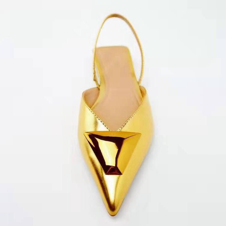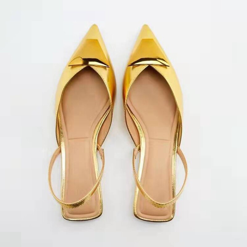 Летние золотые босоножки с низким вырезом, Испания, 2022