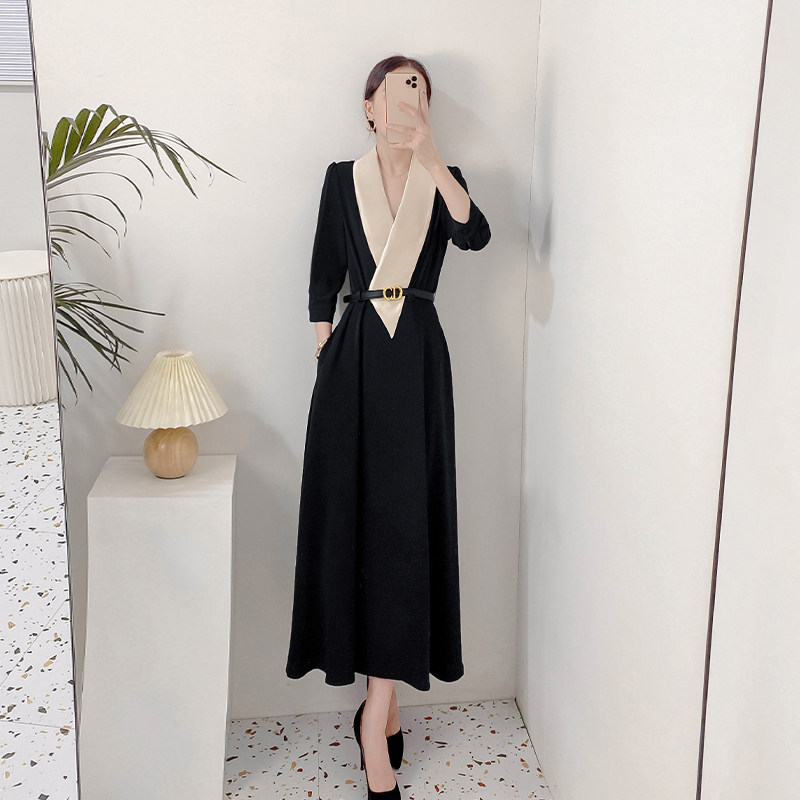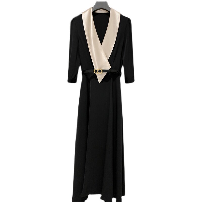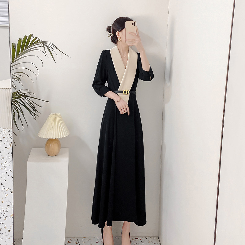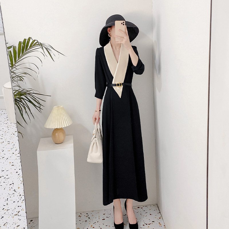 Летнее элегантное черное длинное платье, французский стиль