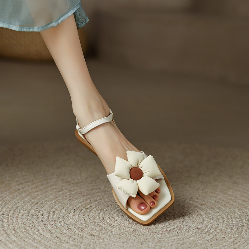 非侈 Оригинальные небольшие дизайнерские босоножки с ремешком, из натуральной кожи, в цветочек, 2023