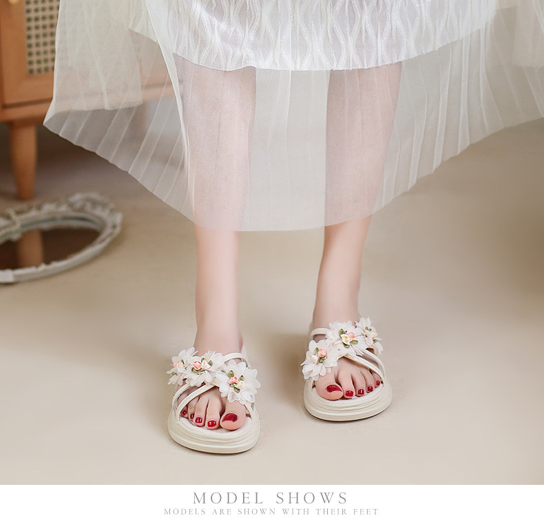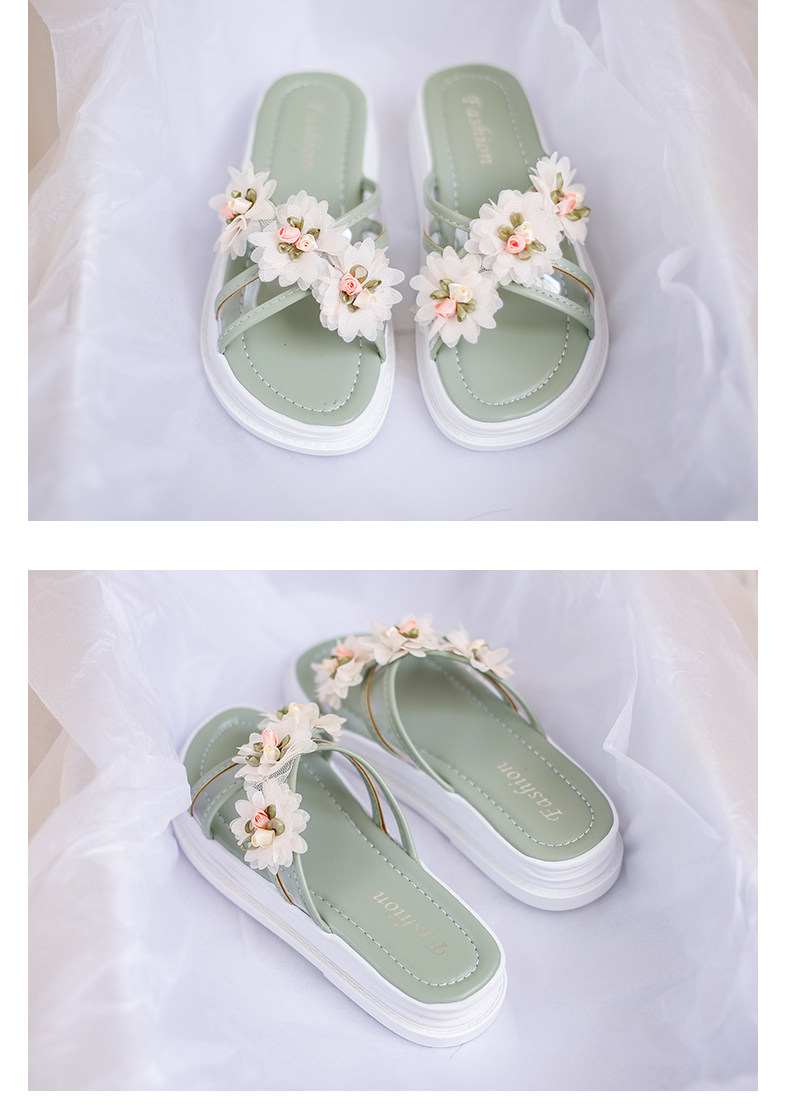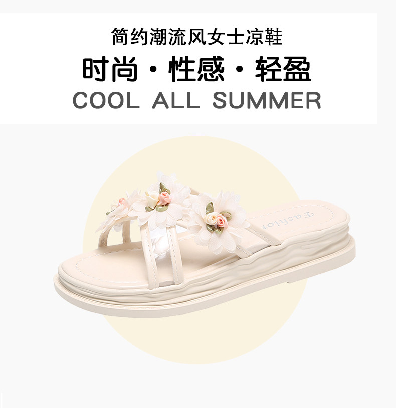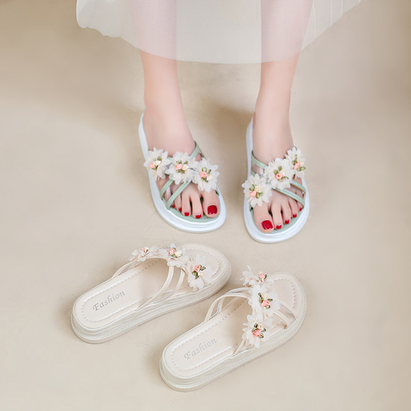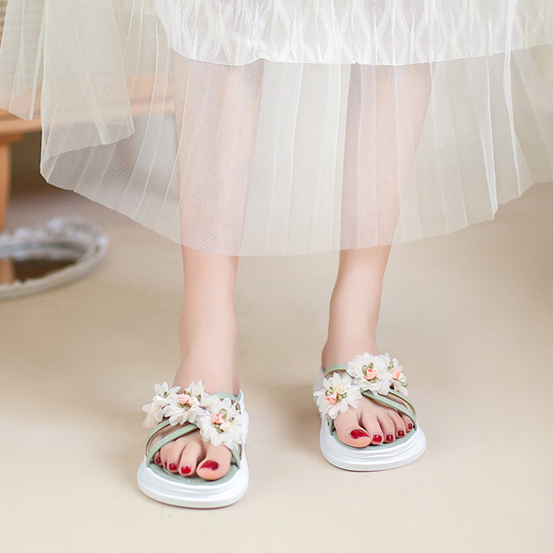 Тапочки, обувь, милая свежая пляжная подходит с юбкой на платформе, слайдеры, коллекция 2022, в цветочек