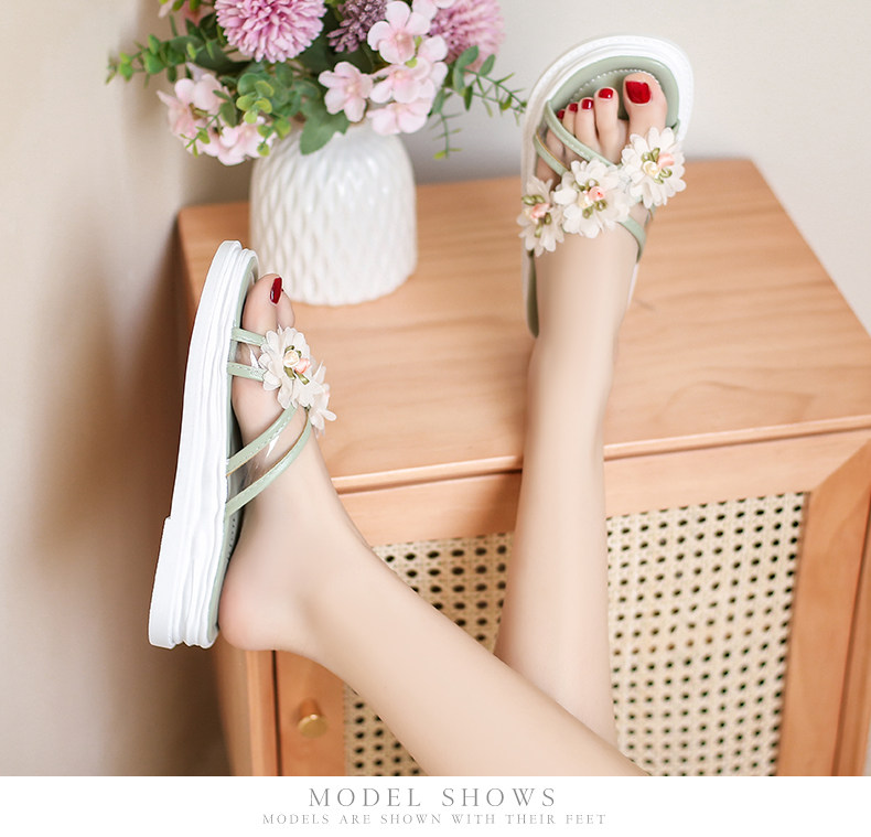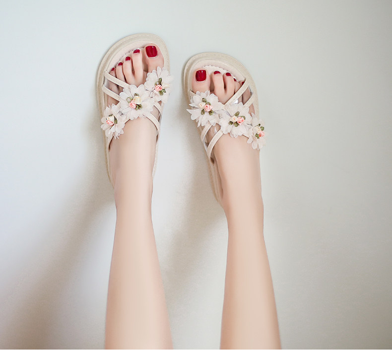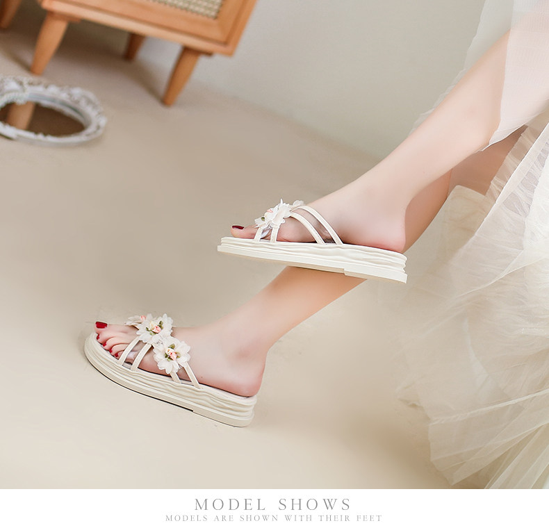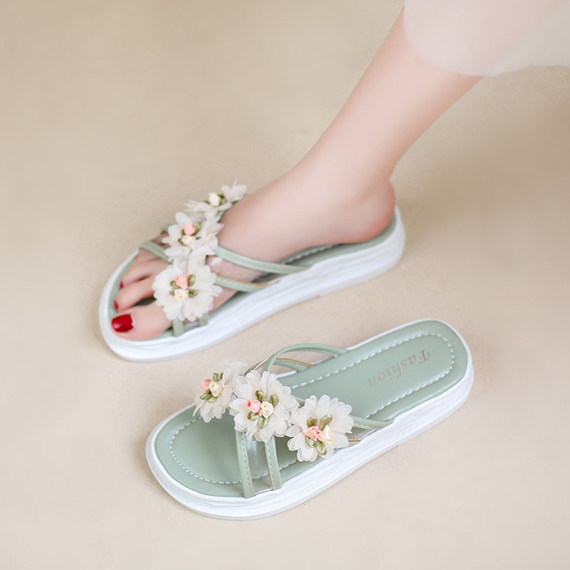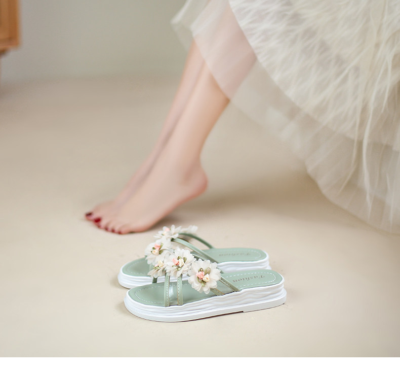 Тапочки, обувь, милая свежая пляжная подходит с юбкой на платформе, слайдеры, коллекция 2022, в цветочек