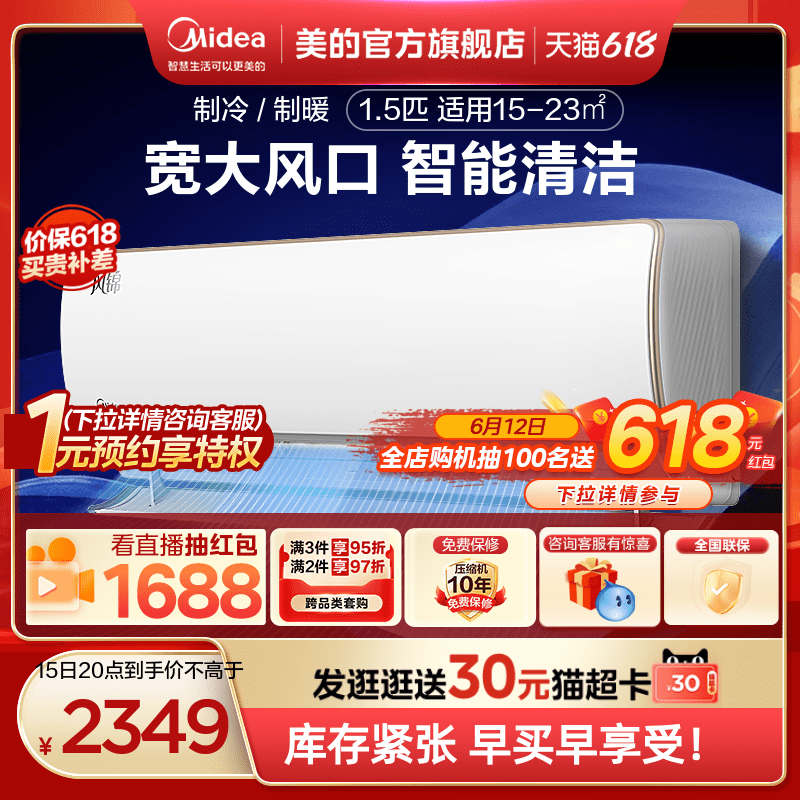 Midea fengjin 1,5 упаковка воздушного кондиционирования трехуровневой частотной частотной частотной частоты осушителя, сырости, охлаждения и тепло