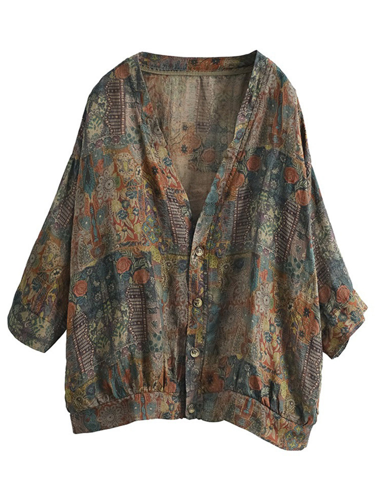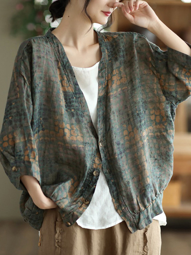 Ретро тонкая куртка, свободный крой, V-образный вырез, защита от солнца