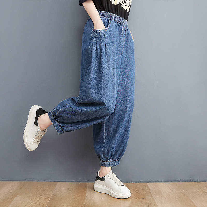 Летние джинсы-шаровары, универсальные штаны, приталенная подсветка пола, фонарь, оверсайз, эластичная талия