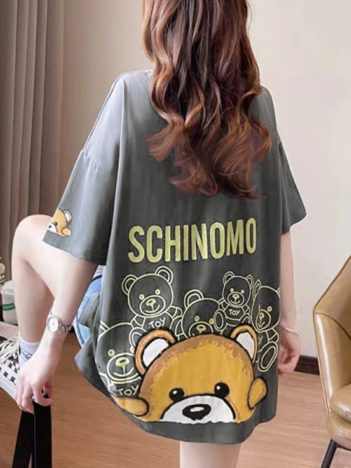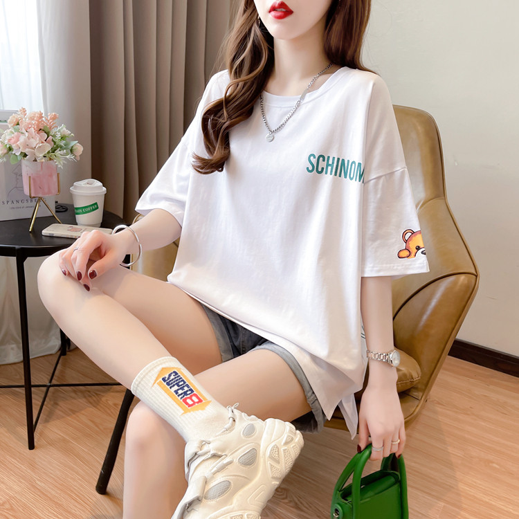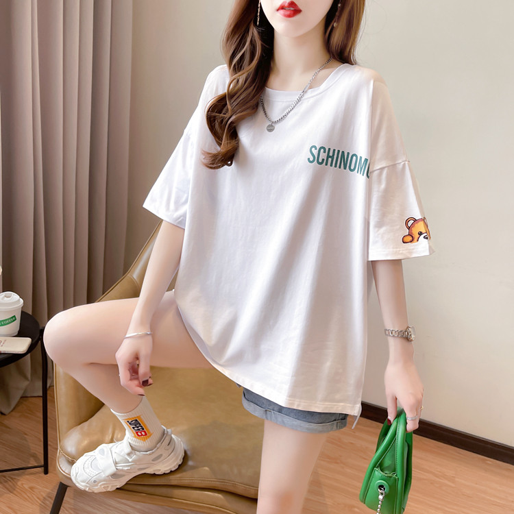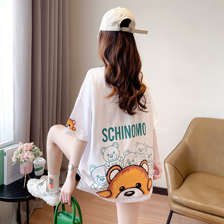 Брендовая женская футболка с коротким рукавом и принтом медведя в торговом центре, модная большая версия, свободный топ в стиле Харадзюку