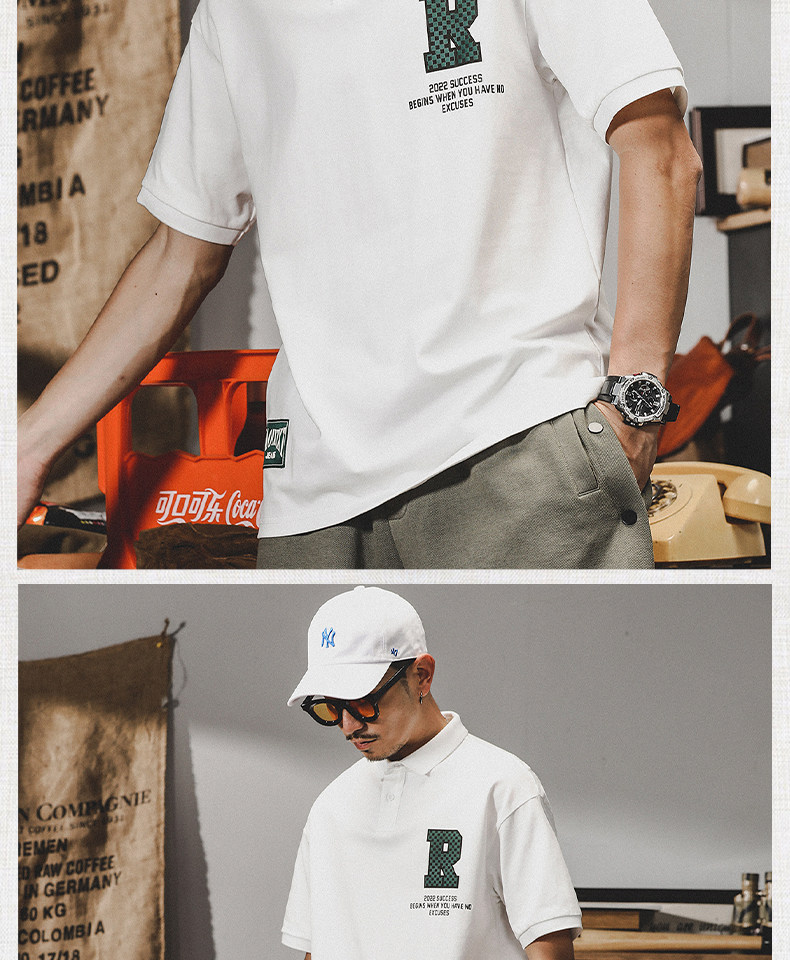 Tide, хлопковая футболка с коротким рукавом, футболка polo для отдыха, рубашка, в американском стиле, оверсайз