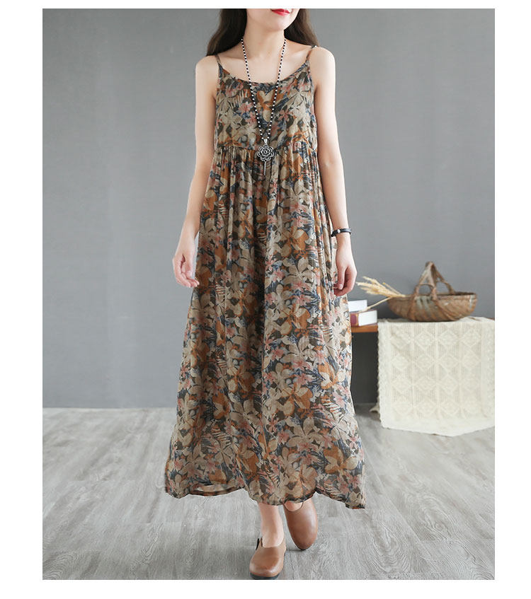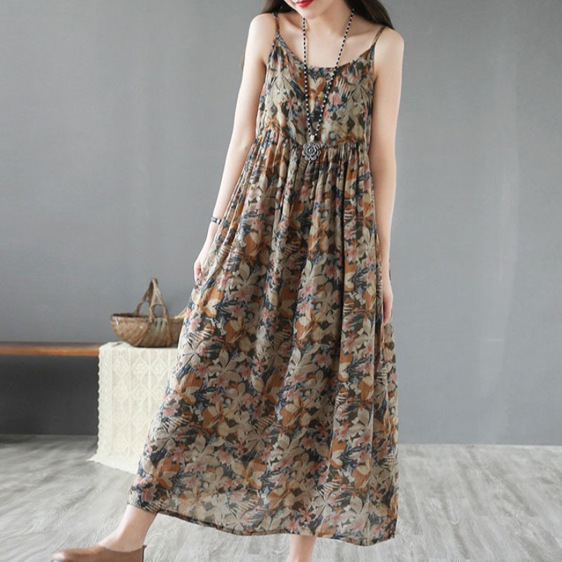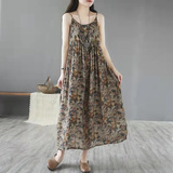 Распродажа ~ внешняя торговля, знаменитый брендовый крой, женский жилет из рами с рисунком в стиле ретро, длинная юбка, хлопково-льняное платье на подтяжках