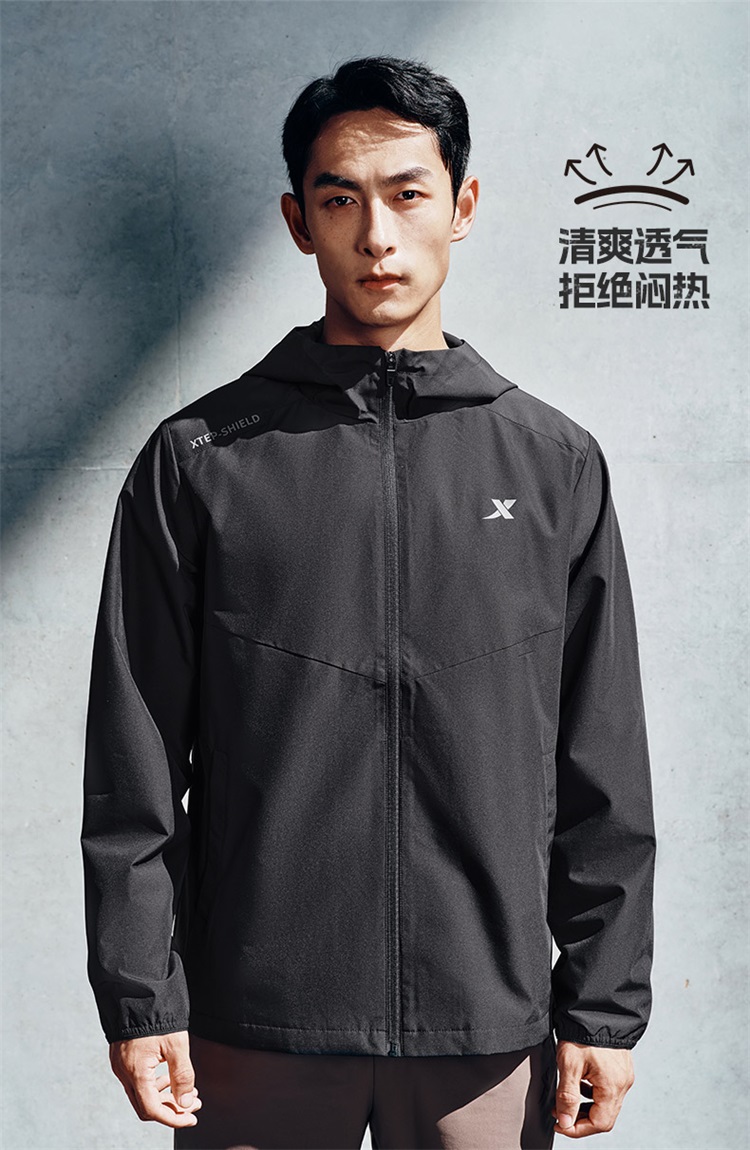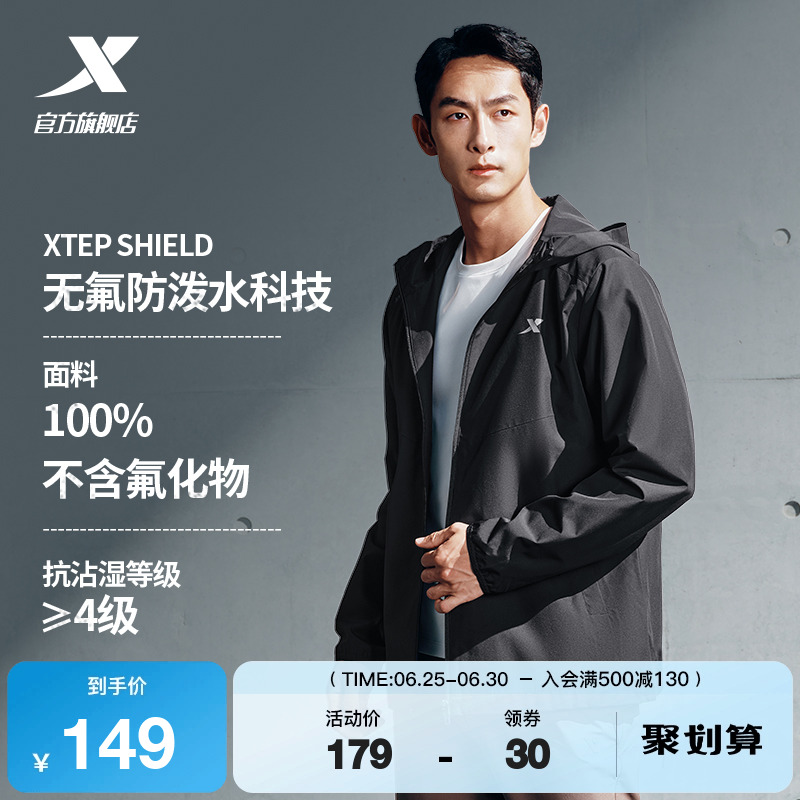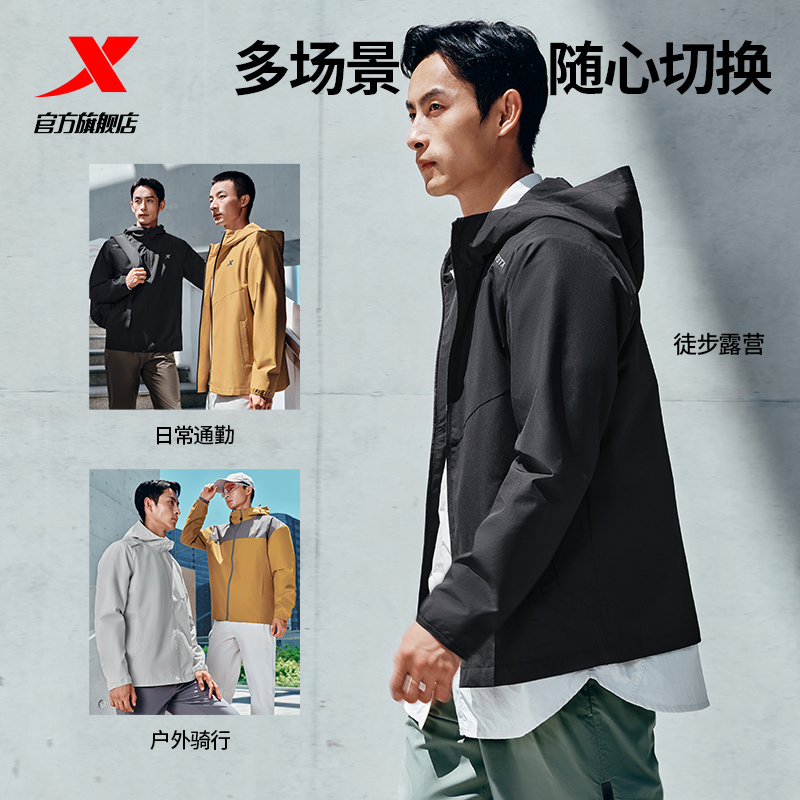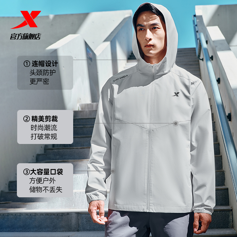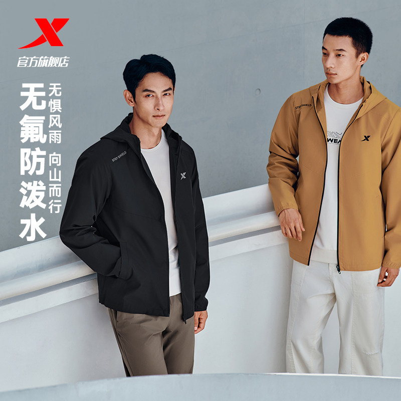 Xtep, водоотталкивающая мужская демисезонная куртка, дорожный плащ, ветрозащитная толстовка с капюшоном с капюшоном для тренировок
