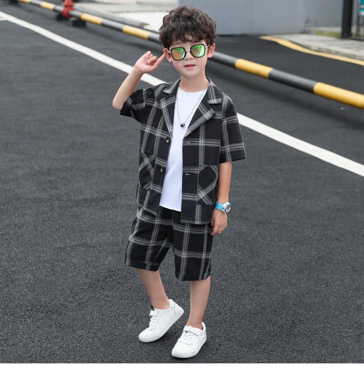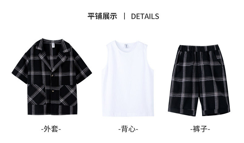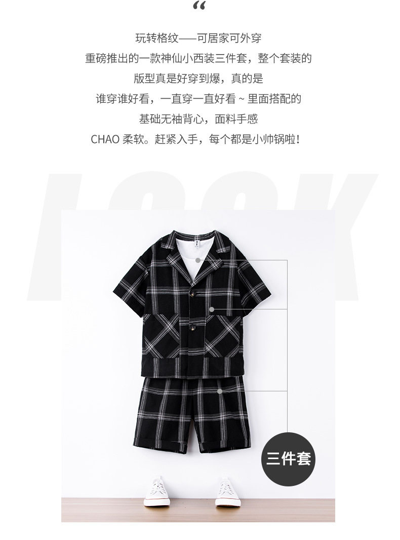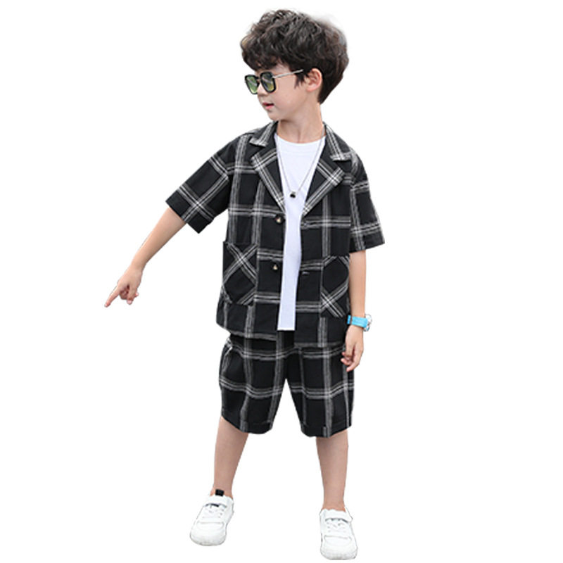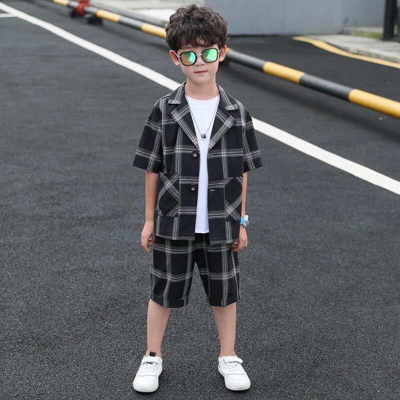Летний классический костюм для отдыха, рубашка, шорты для мальчиков, тонкий комплект, подходит для подростков, 3 предмета