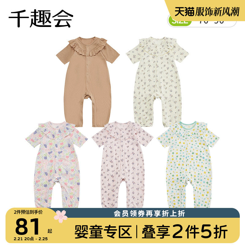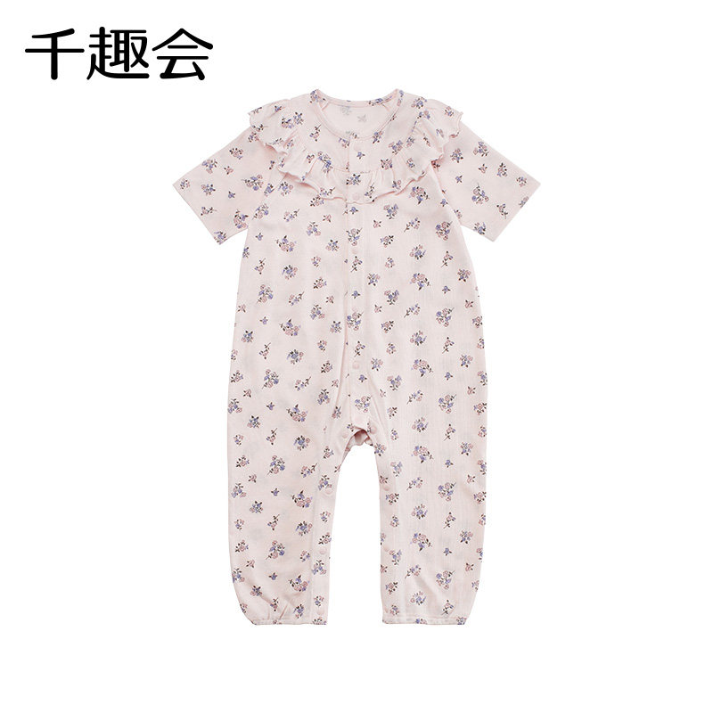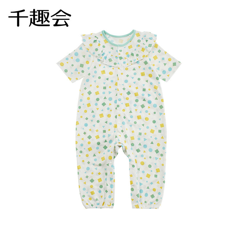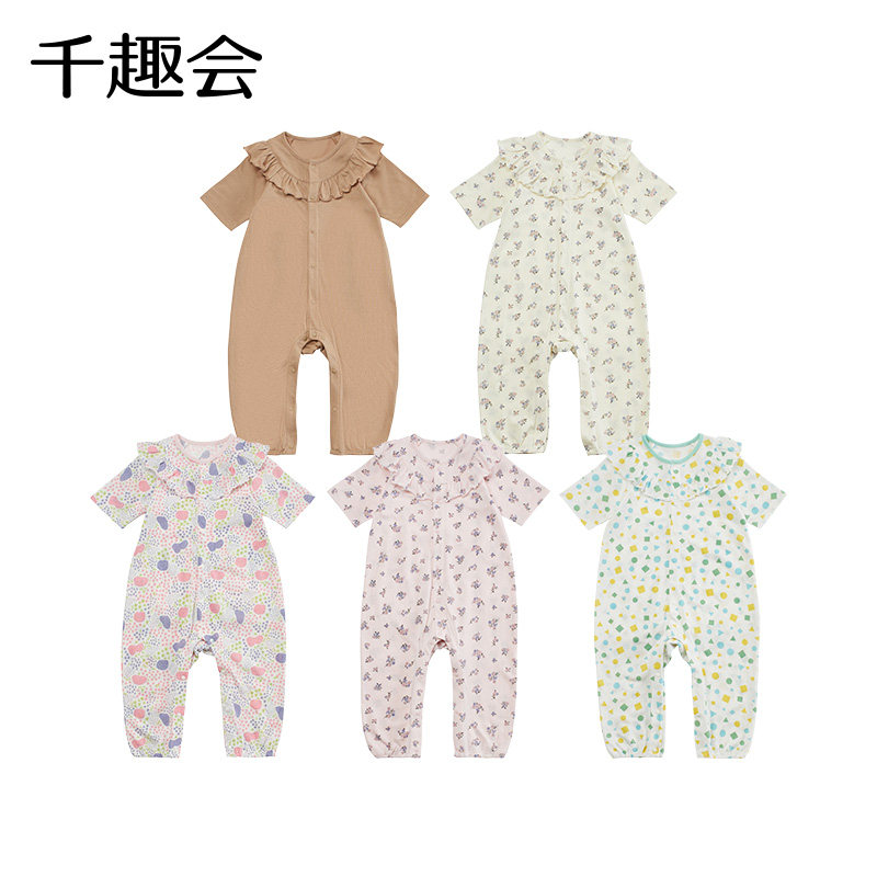 Qianquhui Детская одежда Летняя стиль девочки Детская прохладная припечатка легкая и дышащая вспахающая потная ткань хлопковая комбинезон