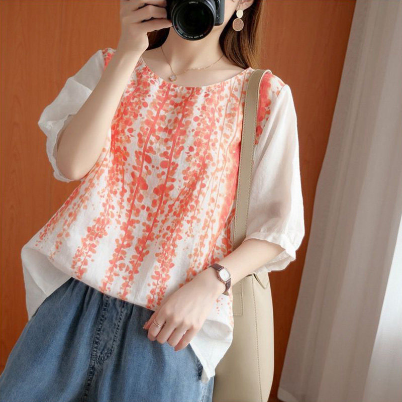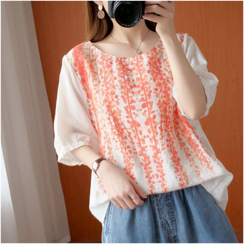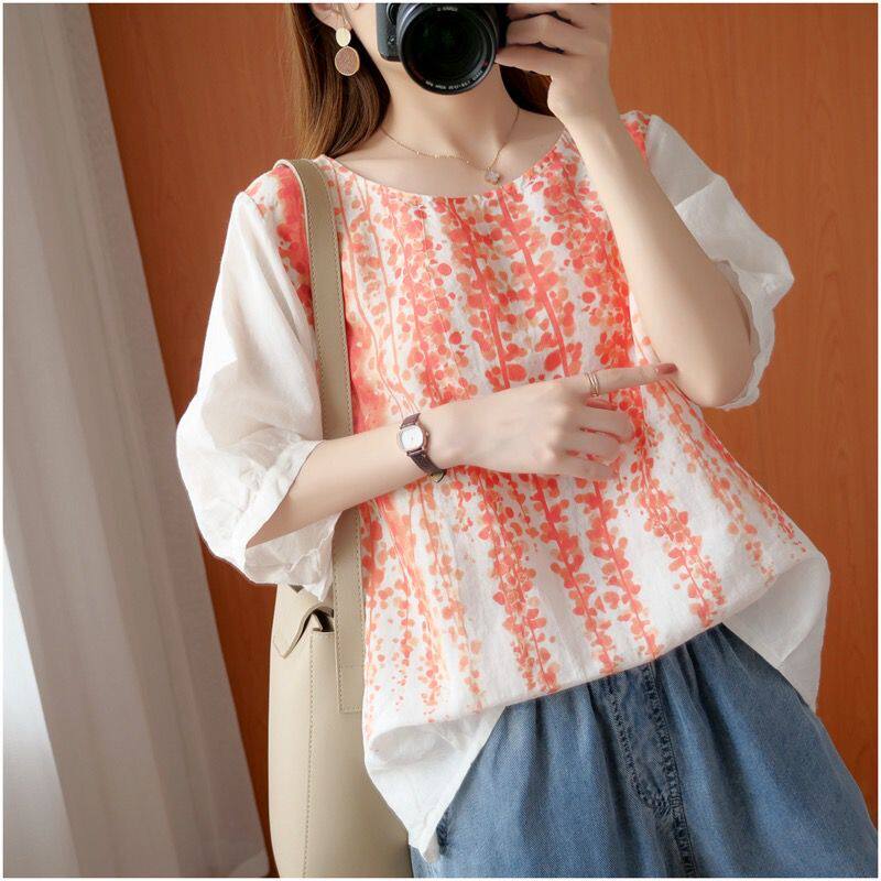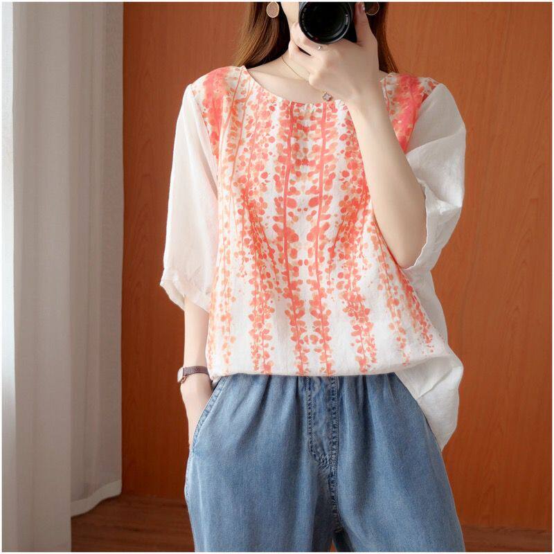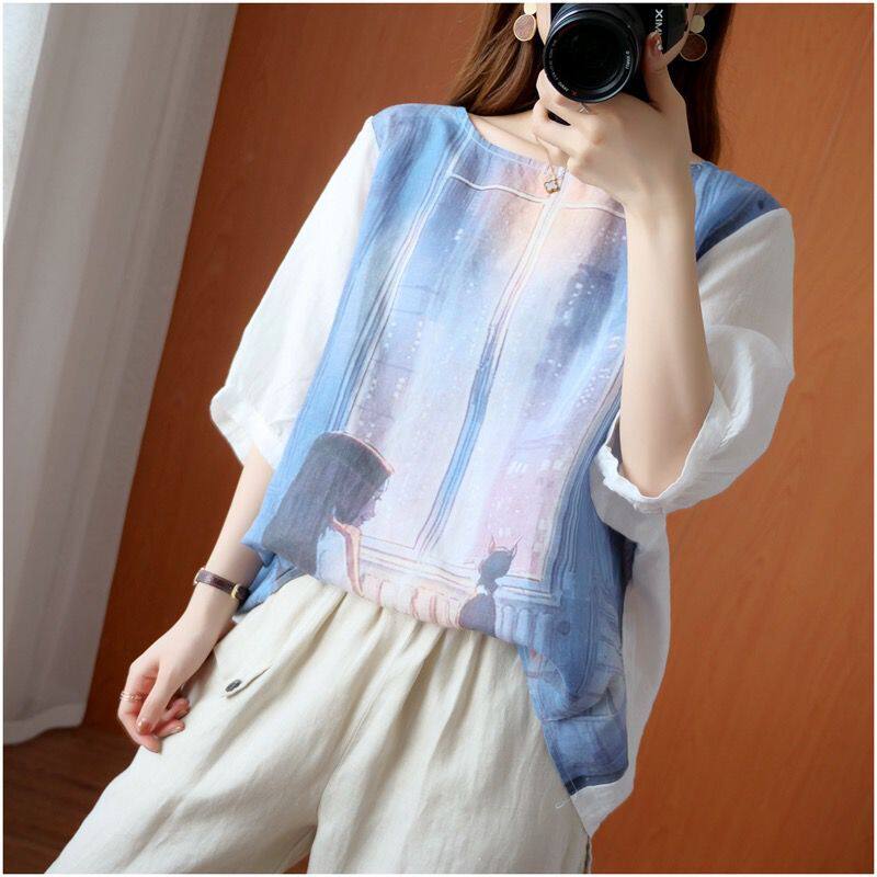 Летняя футболка для отдыха, из хлопка и льна, короткий рукав, свободный крой, большой размер