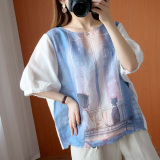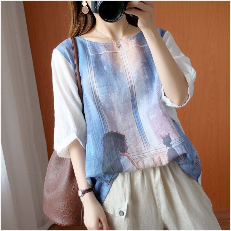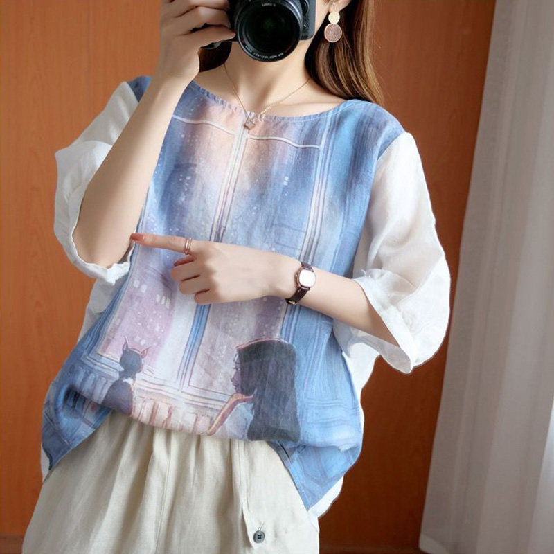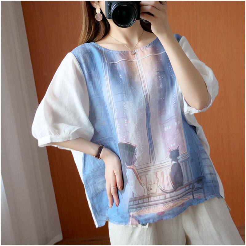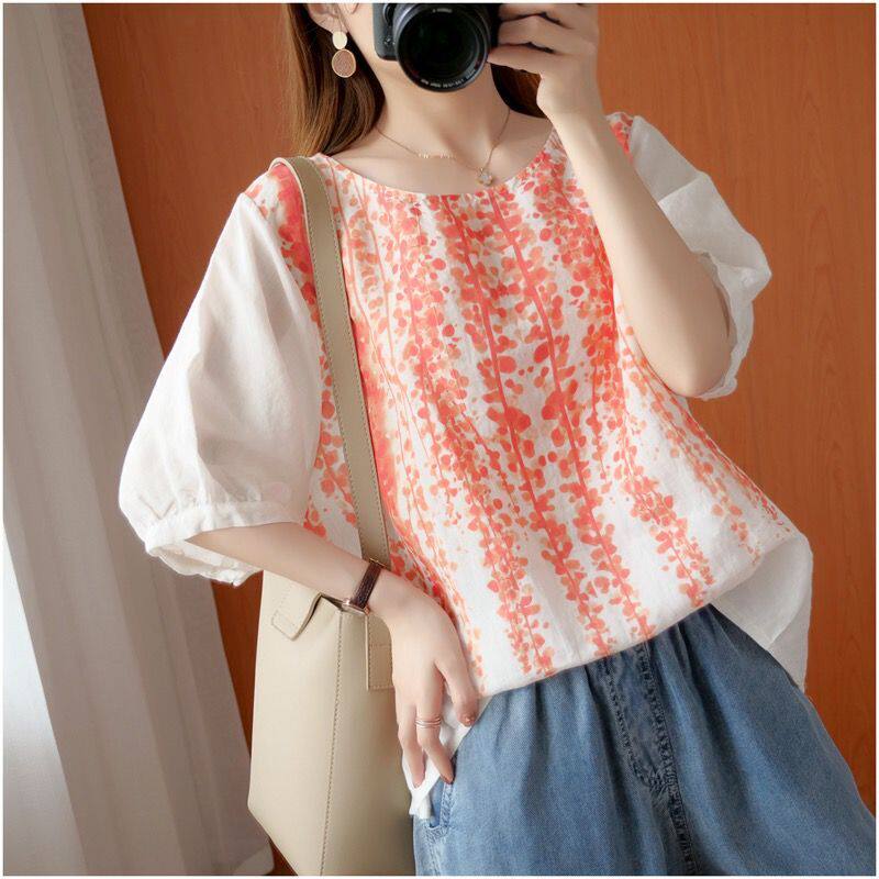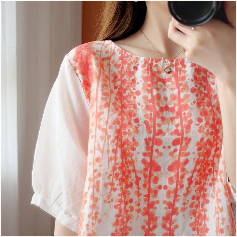 Летняя футболка для отдыха, из хлопка и льна, короткий рукав, свободный крой, большой размер
