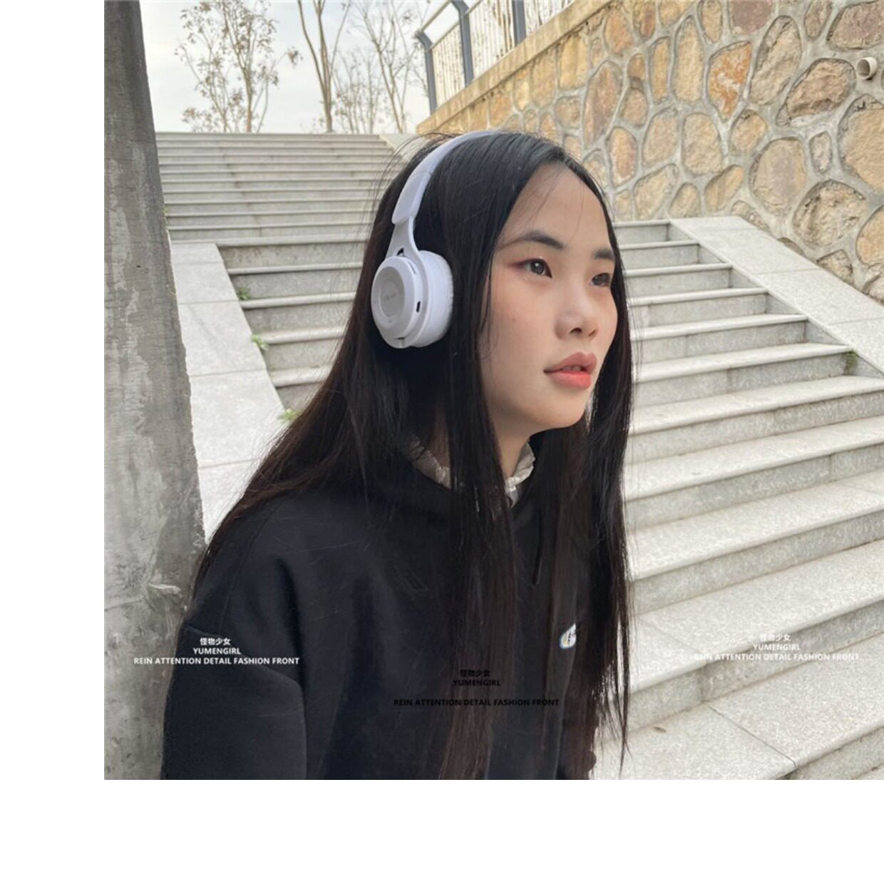 Включить корейский ретро -блогер черно -белый блюэтут беспроводной зарядной головки в складной гарнитуре женского пола