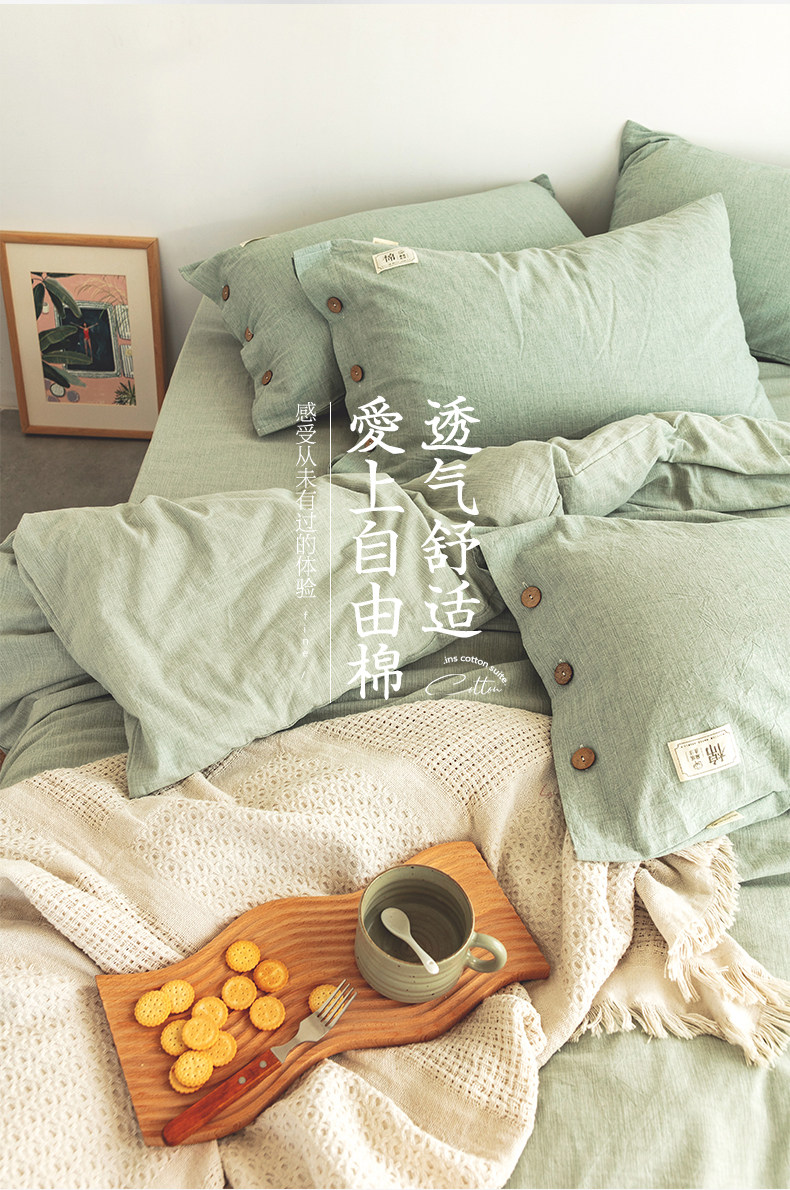 Покрывало, хлопковый комплект, хлопковое одеяло, пододеяльник, брендовая простыня, легкий роскошный стиль, 4 предмета, простой и элегантный дизайн