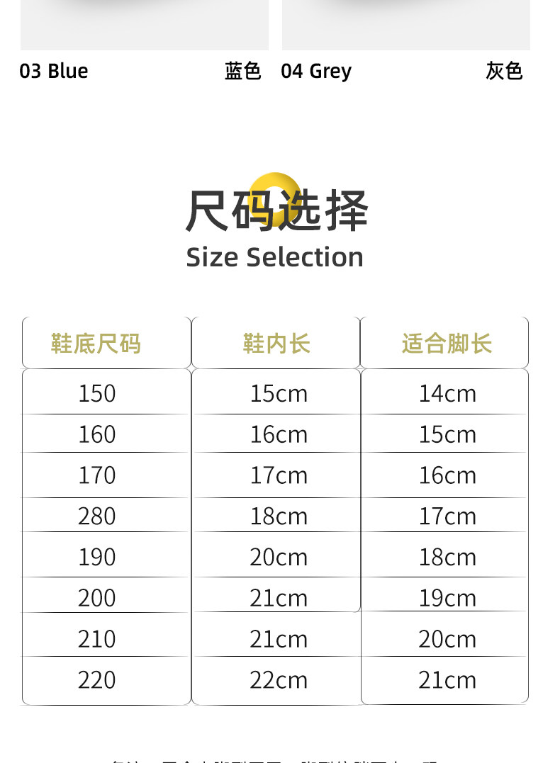 | Размер обуви: | [【150】内长15cm], [【160】内长16cm], [【170】内长17cm], [【180】内长18cm], [【190】内长19cm], [【200】内长20cm], [【210】内长21cm], [【220】内长22cm] |