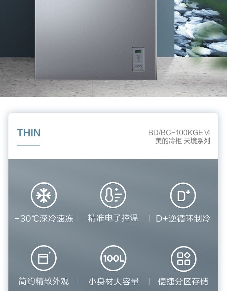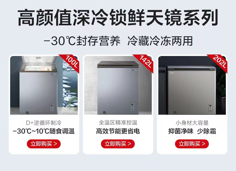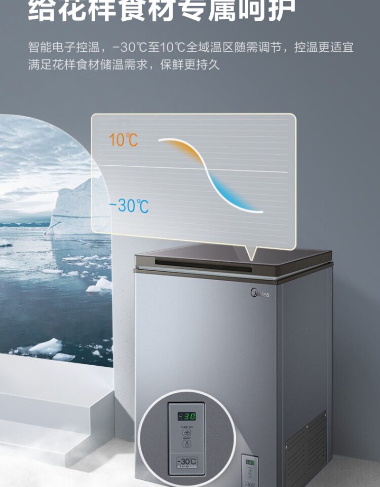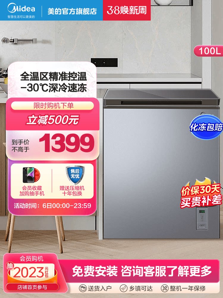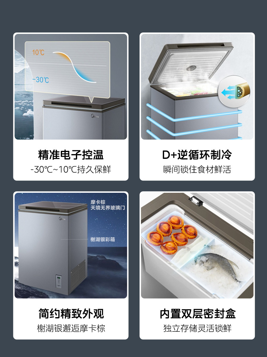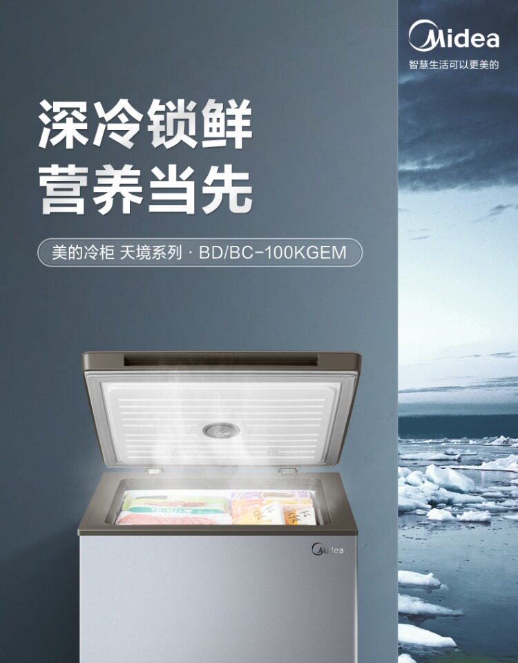 Midea 100L Небольшой морозильник мебель маленький холодный шкаф 40 ℃ глубоко замороженный холодильник с двойным использованием свежего холодильника