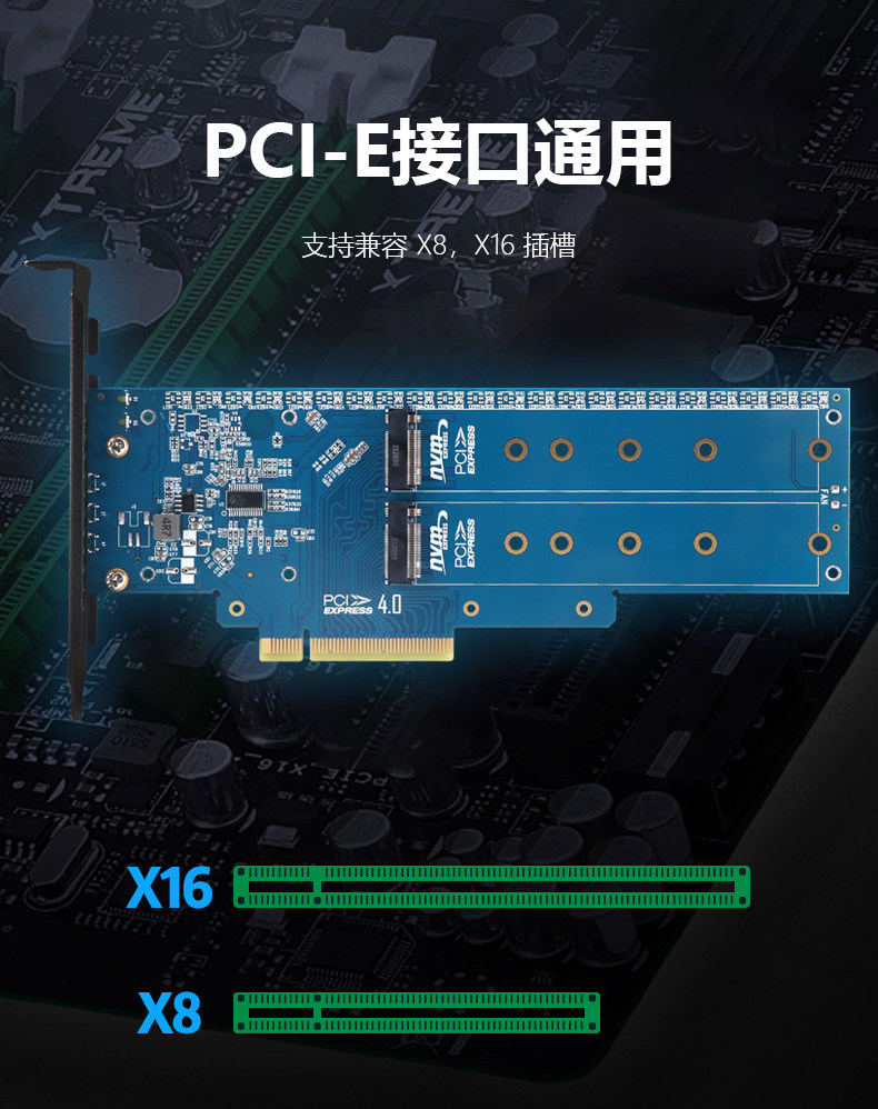 M2X8 Главное вращение диска Jiayi PCIEX8 x16 от 1 до 2 NVME Распансионная карта M2 Двойная карта Двойной диск 2 балла 2