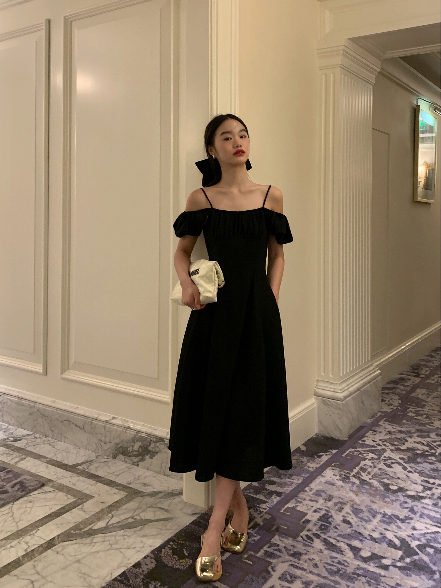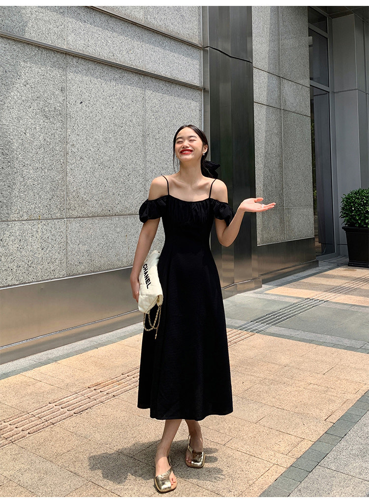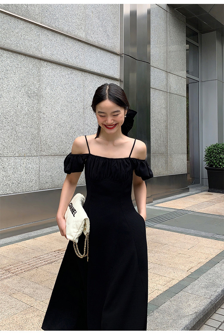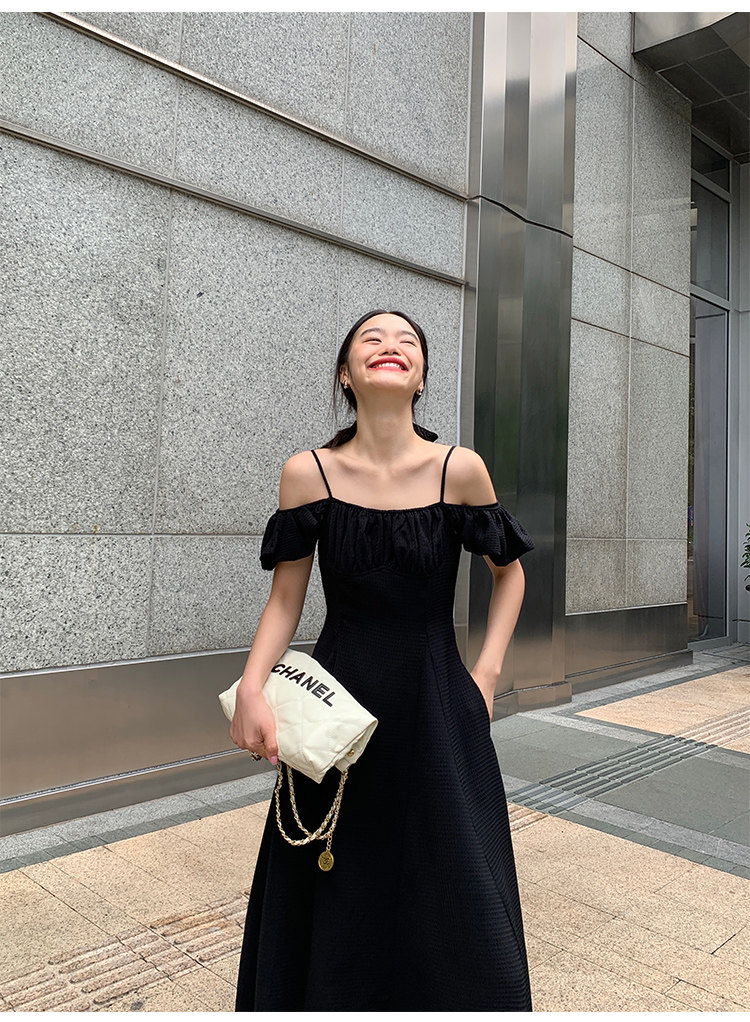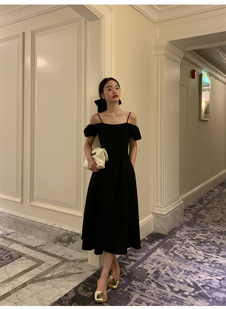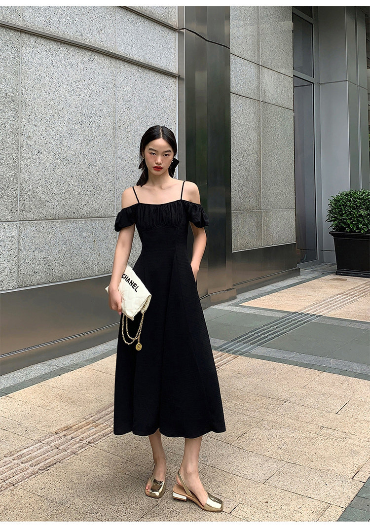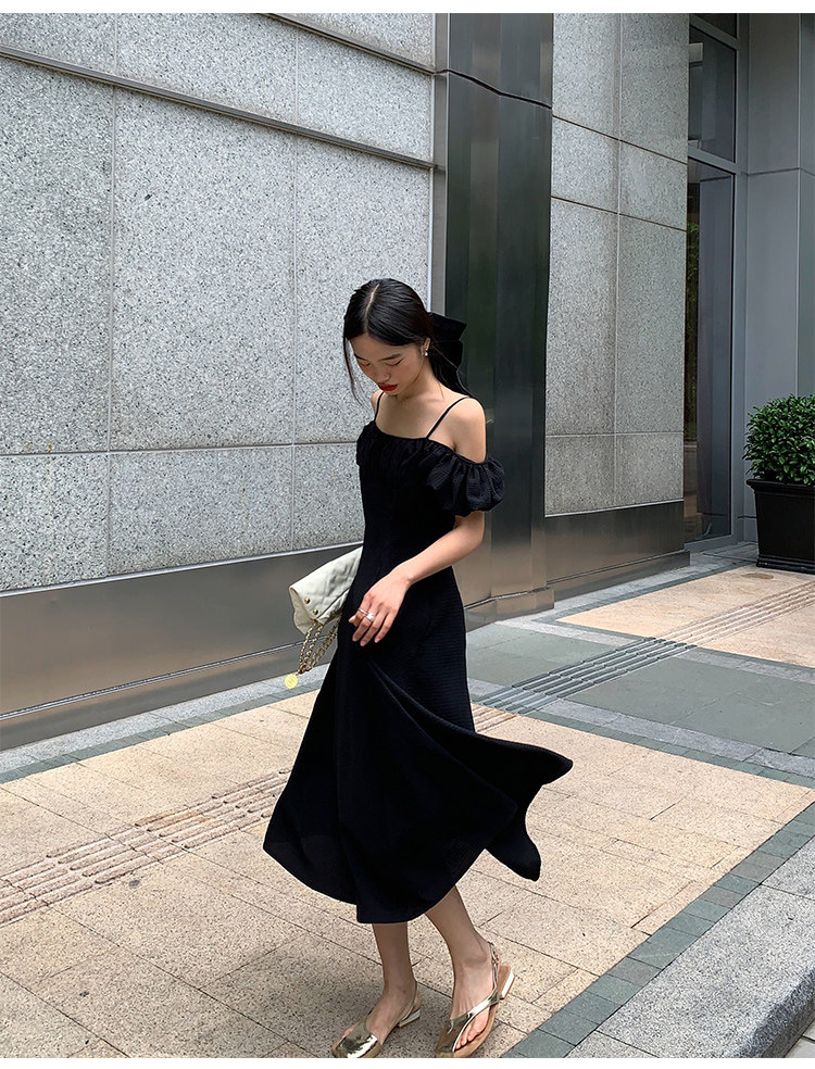 Черное приталенное платье, корсет, длинная юбка, открытые плечи, премиум класс, яркий броский стиль, средней длины