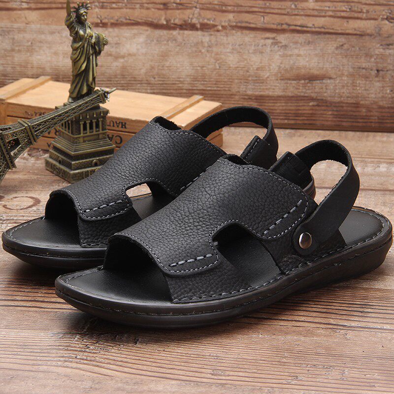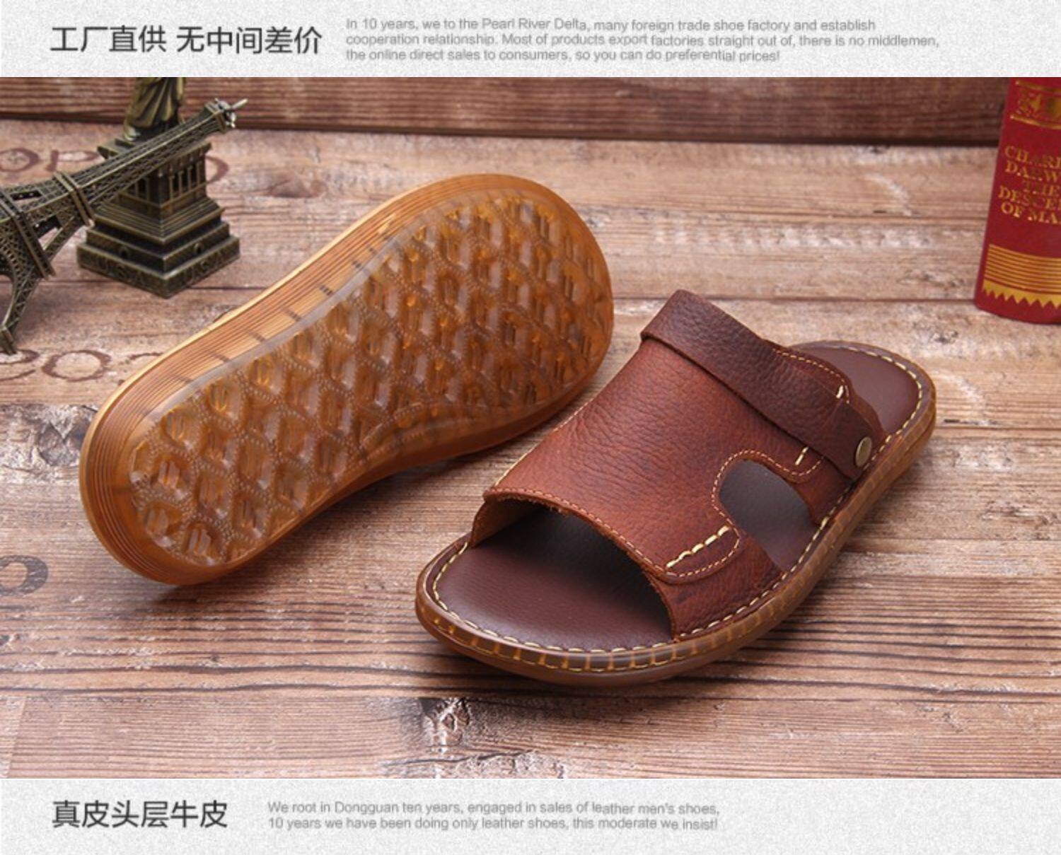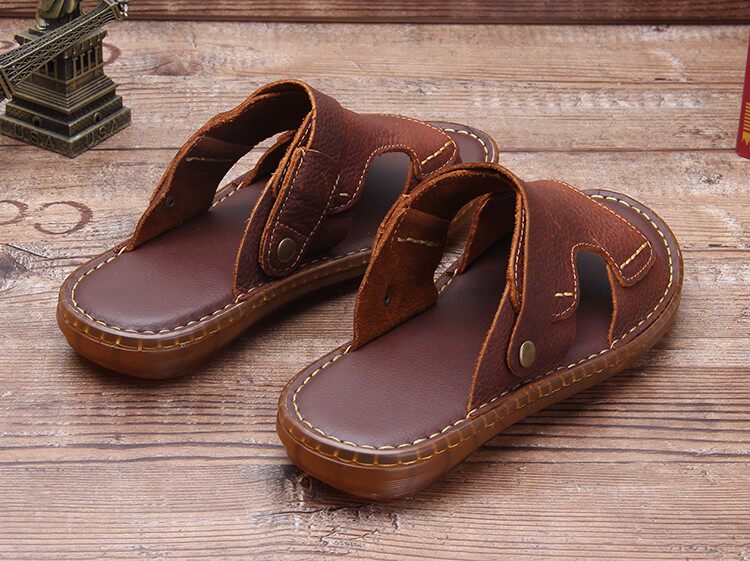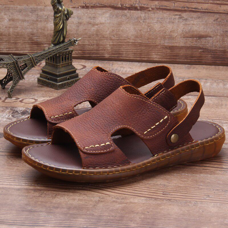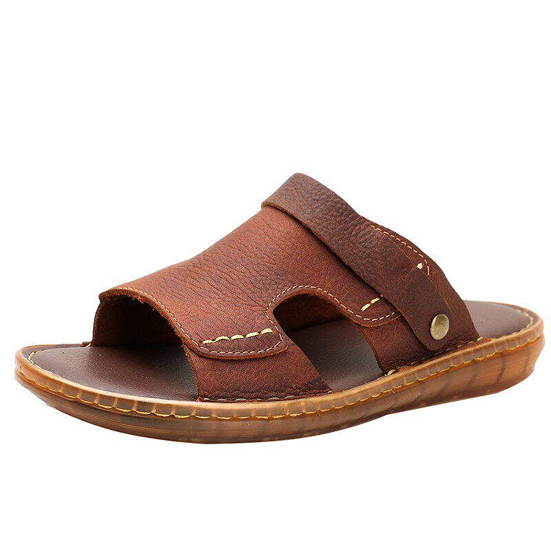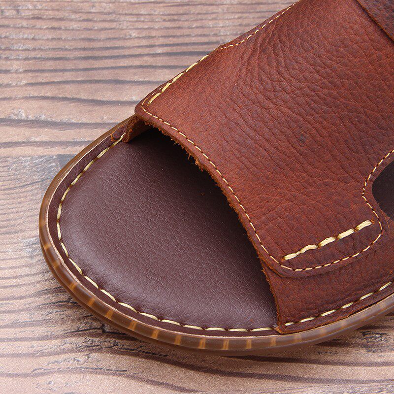 Летние нескользящие износостойкие сандалии, кожаные пляжные трендовые тапочки, из натуральной кожи