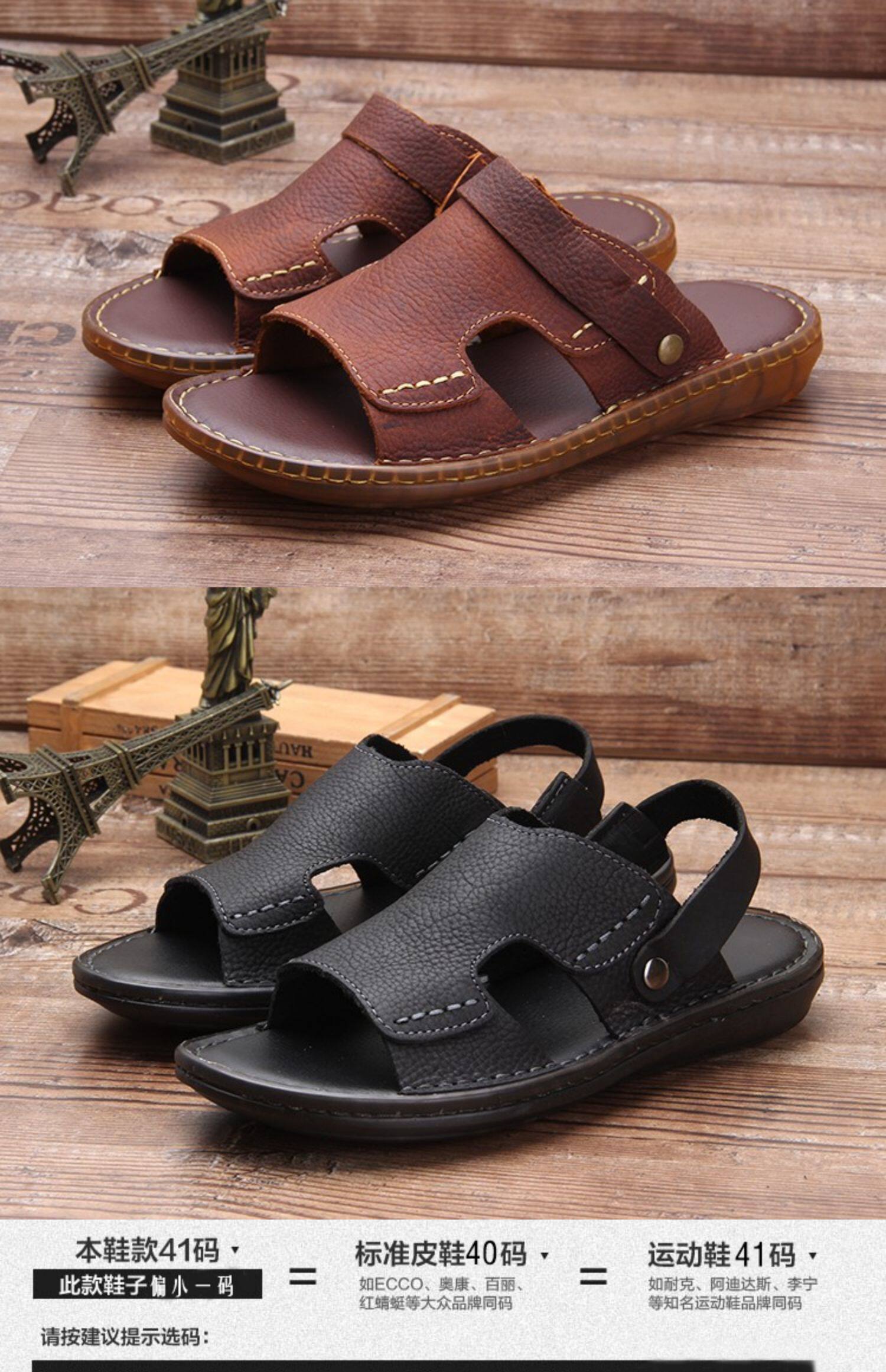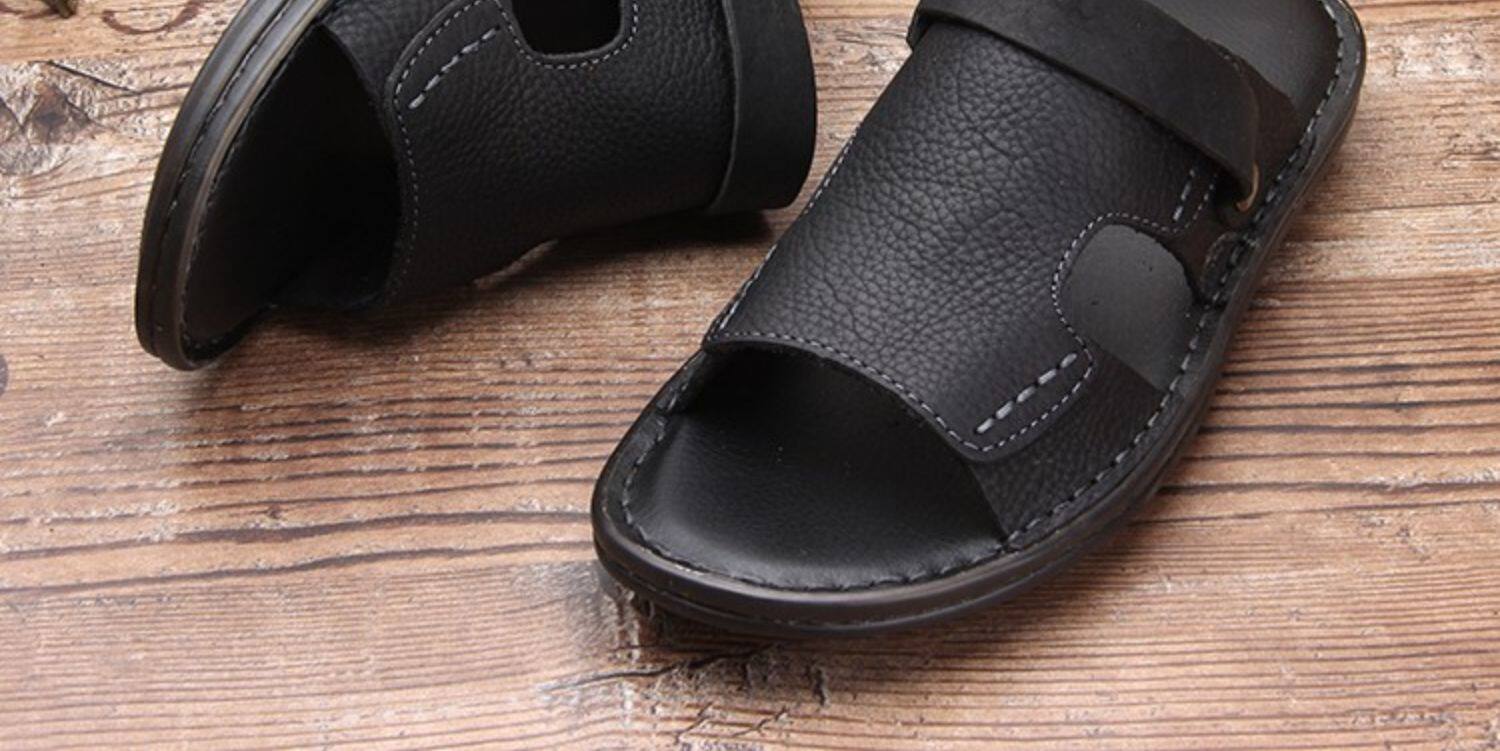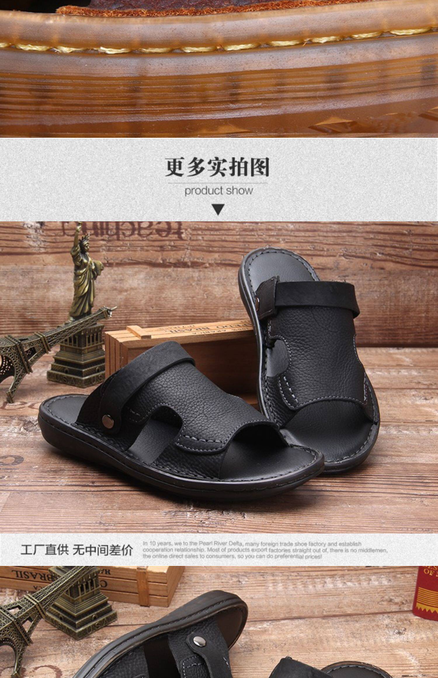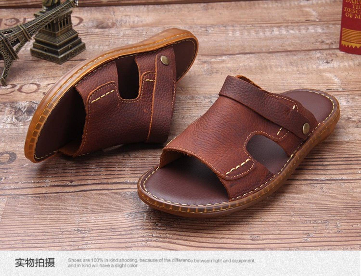 Летние нескользящие износостойкие сандалии, кожаные пляжные трендовые тапочки, из натуральной кожи