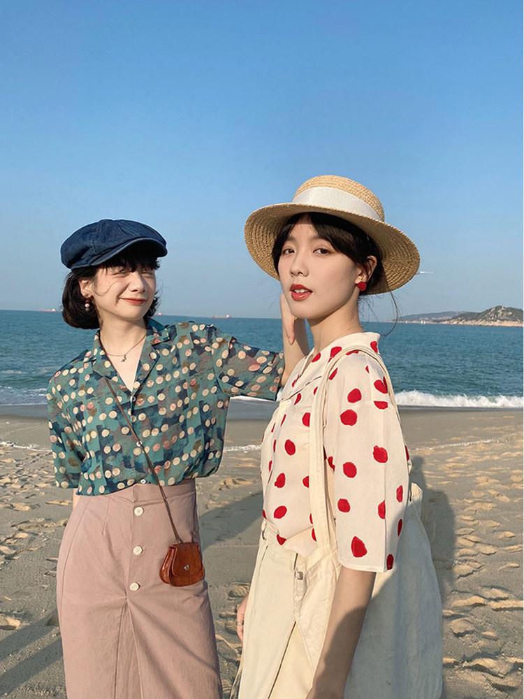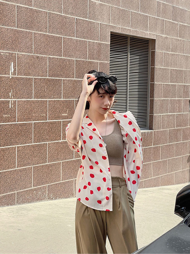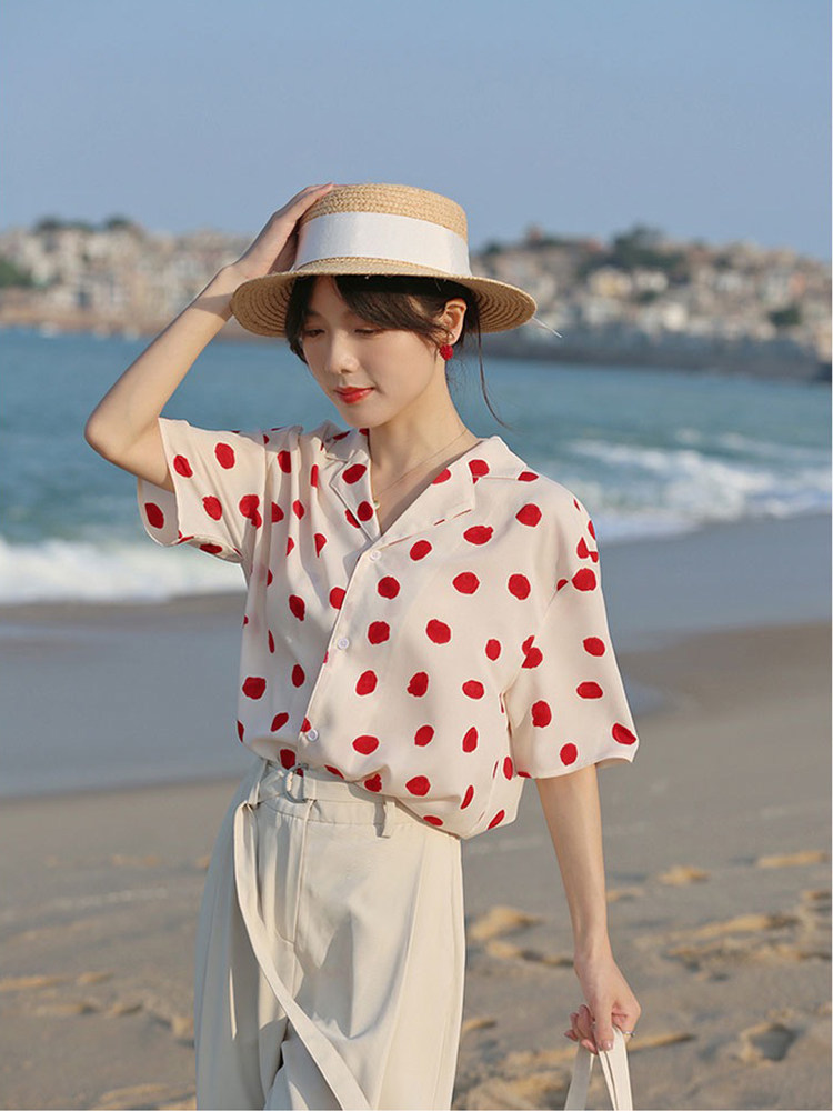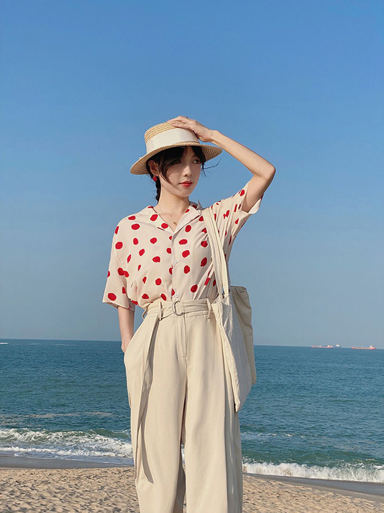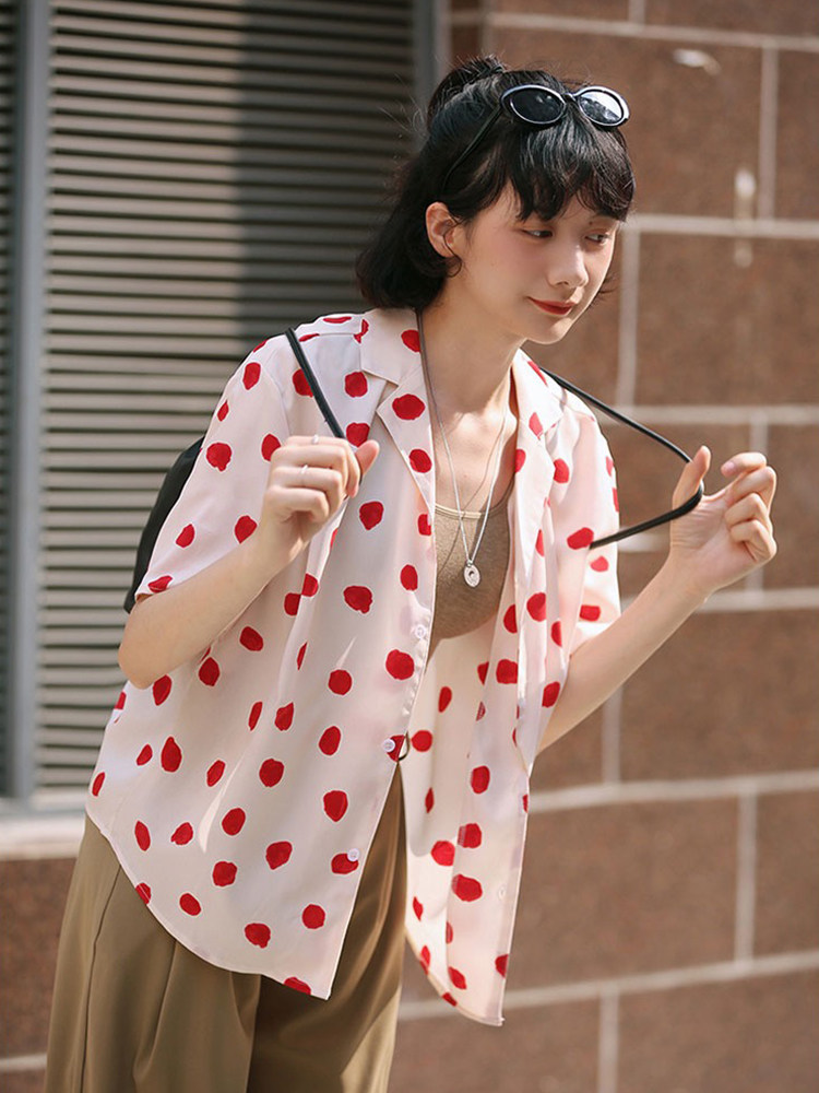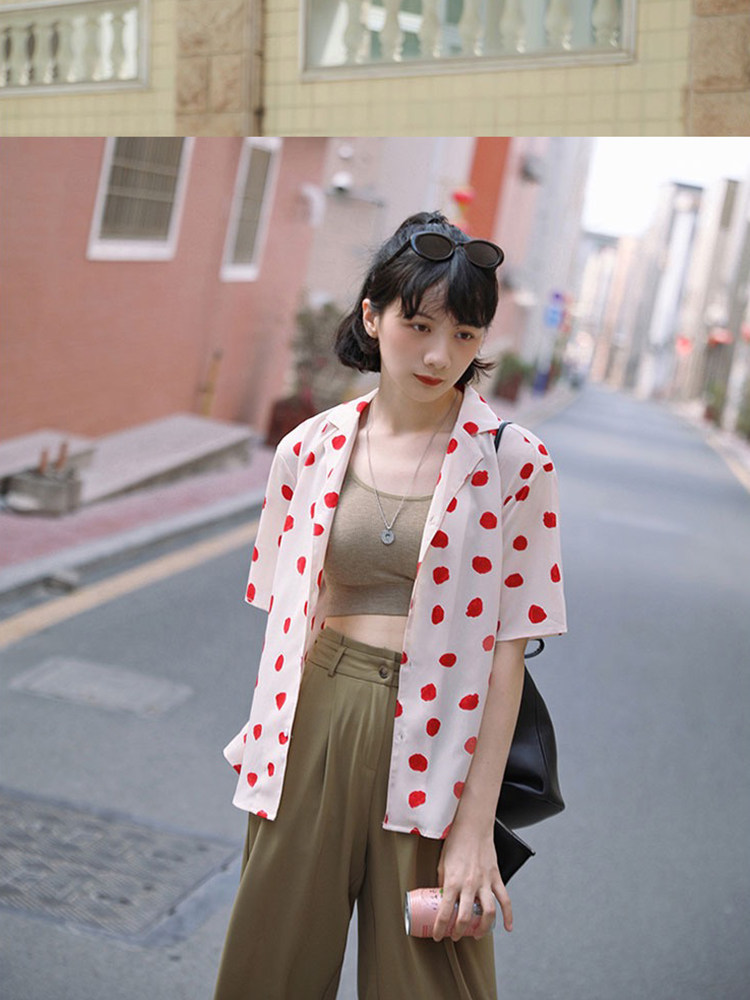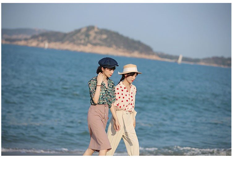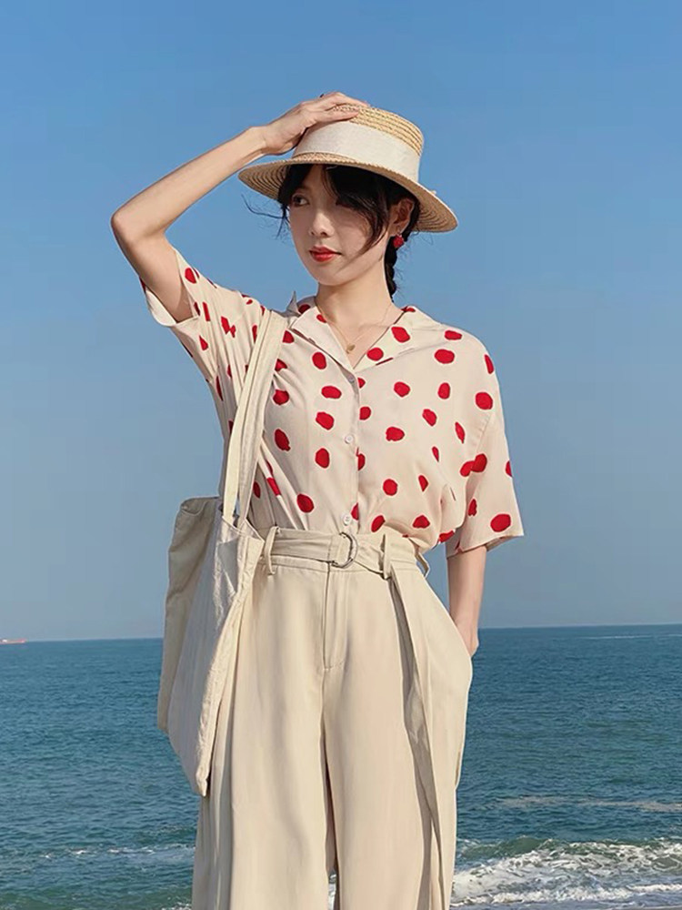 Милая летняя ретро рубашка, футболка, костюм, короткий рукав, 2022
